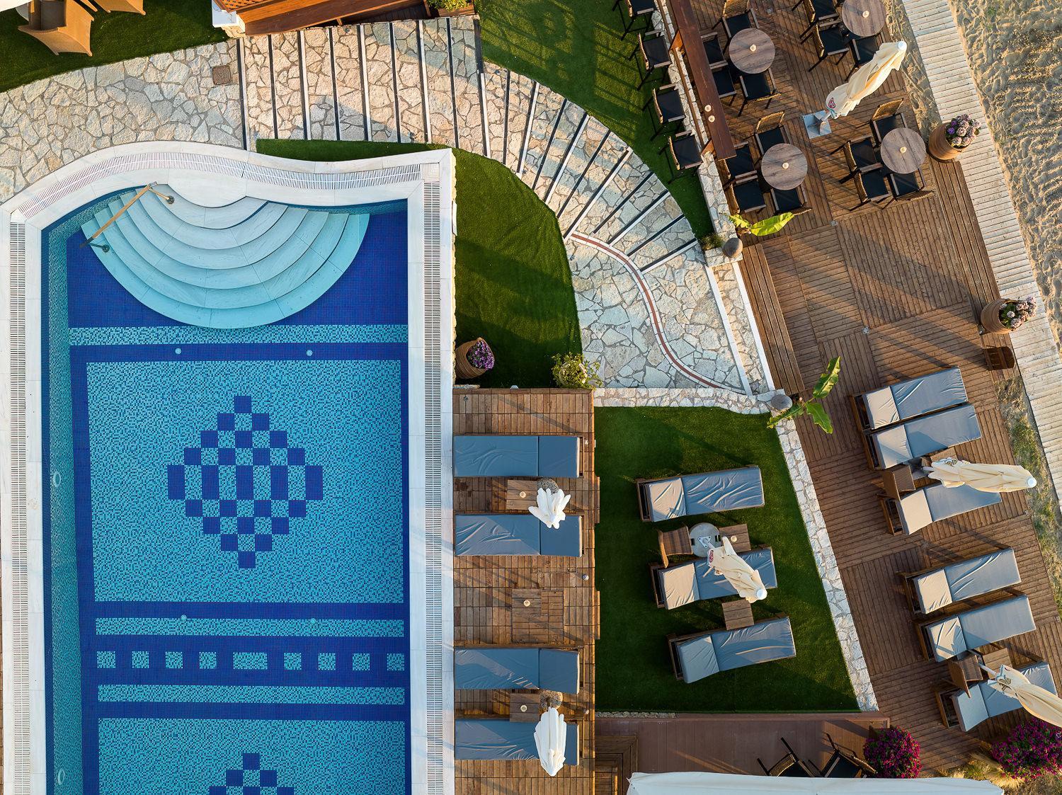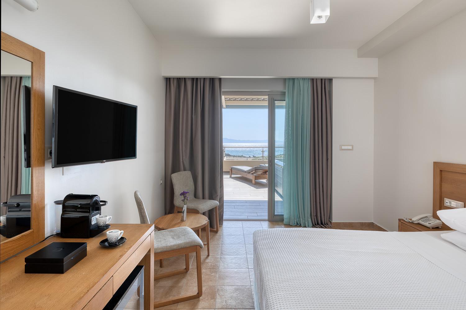 Savor exotic cocktails, refreshing beverages, and international cuisine at the beach bar-restaurant. Start your day with a delicious buffet breakfast on the rooftop terrace with stunning views of the Ionian Sea.