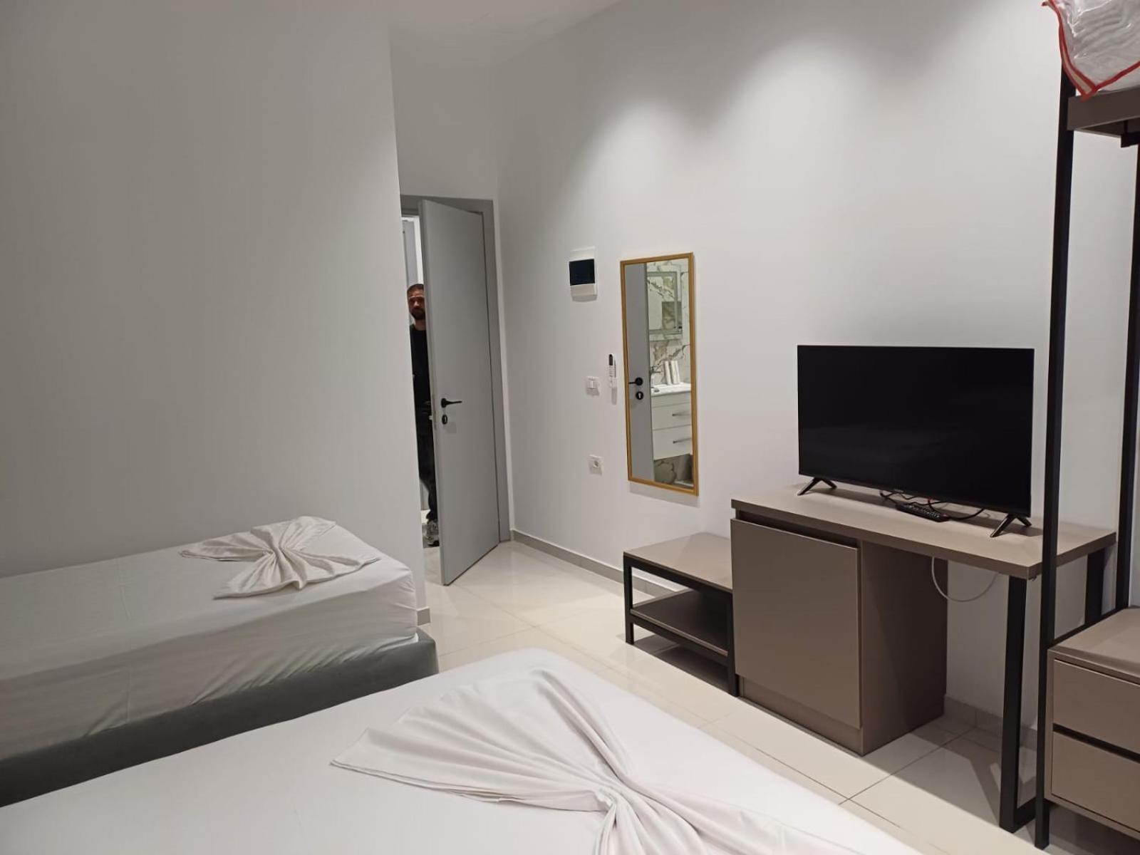 Camera molto spaziosa e tutto nuovo. La gentilezza del gestore che ci ha anche aiutato a sistemare l'auto nel parcheggio dell'auto incluso (fondamentale a Valona!!) che ha anche il ristorante Summer dove una sera abbiamo anche cenato.