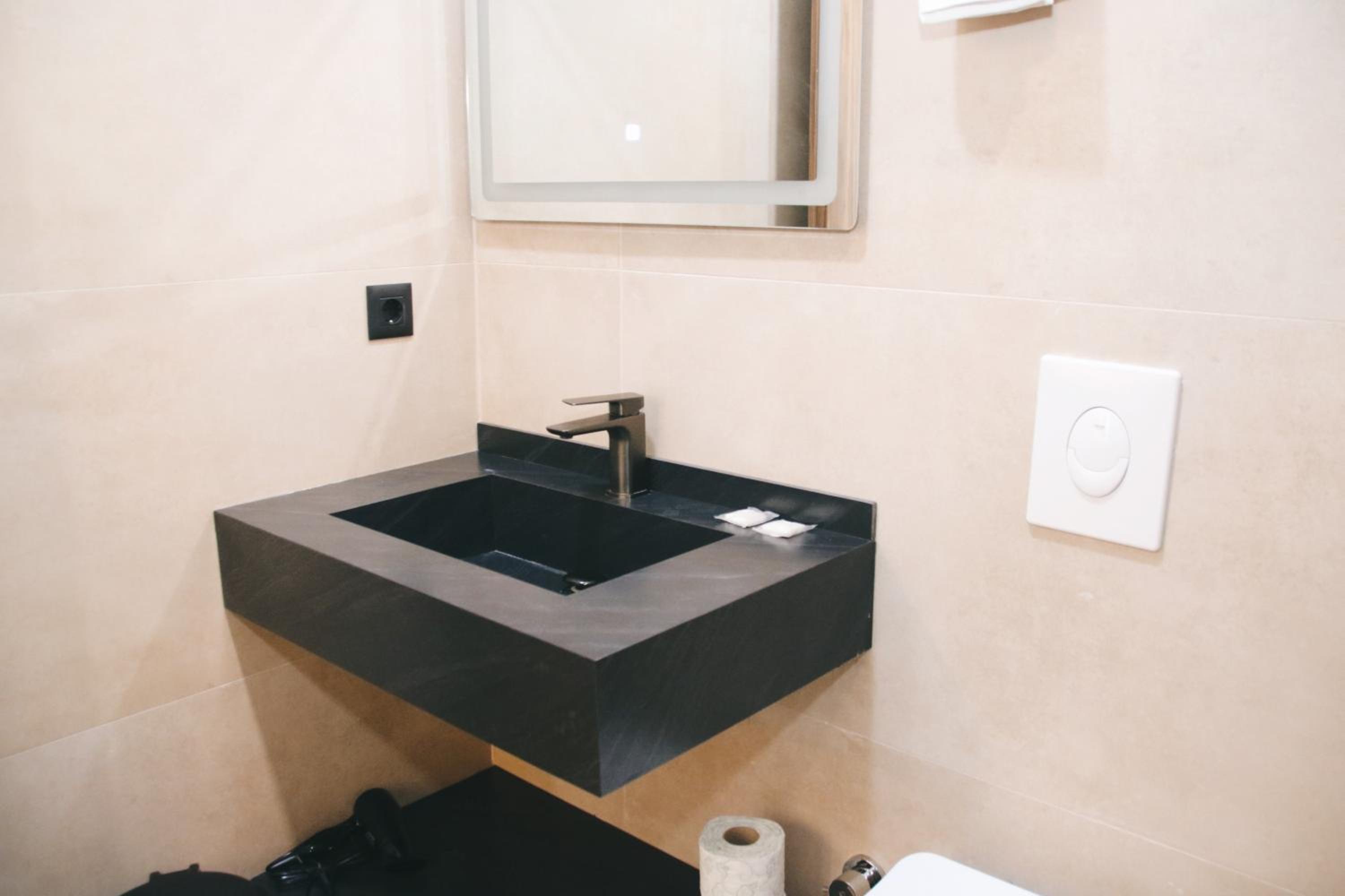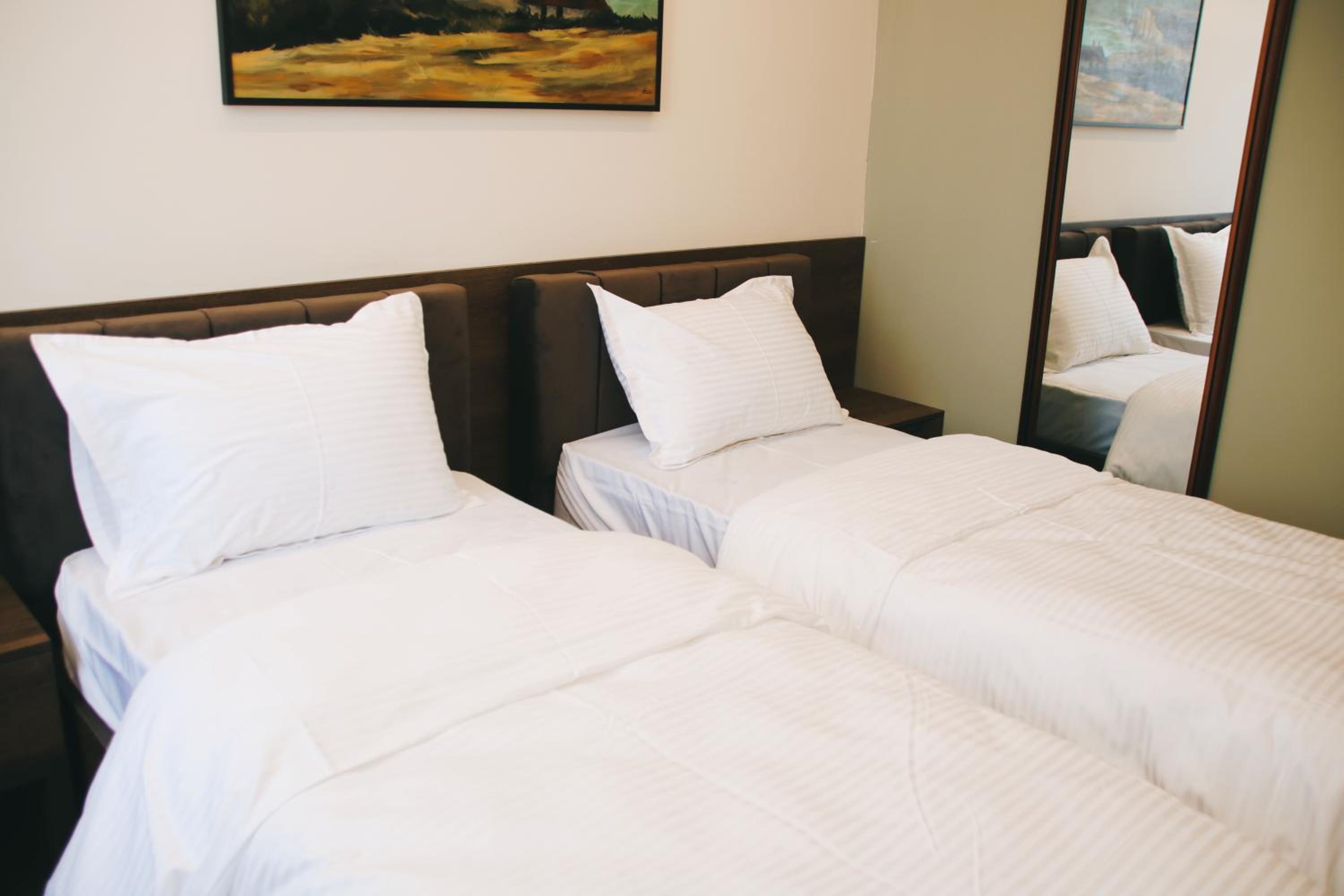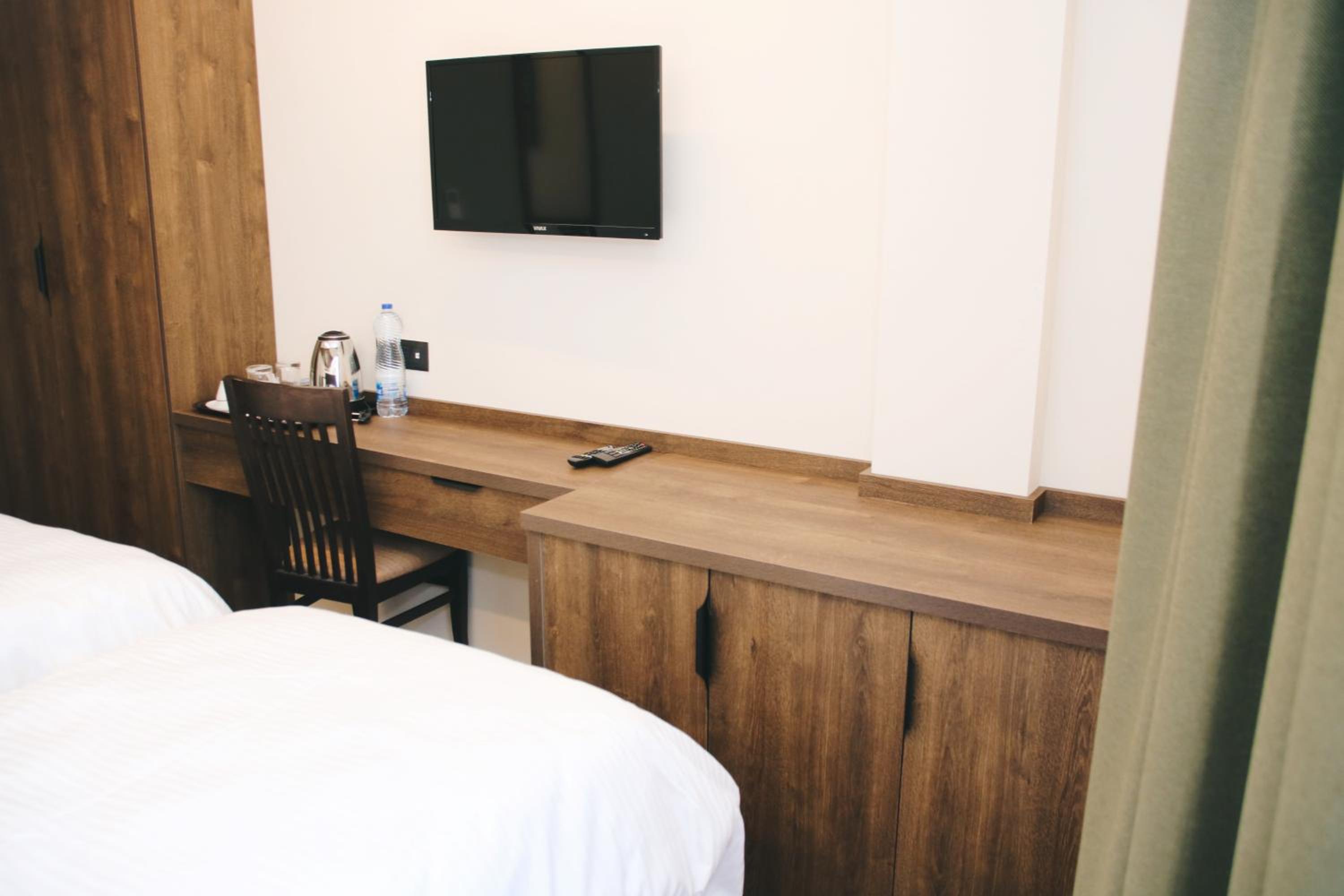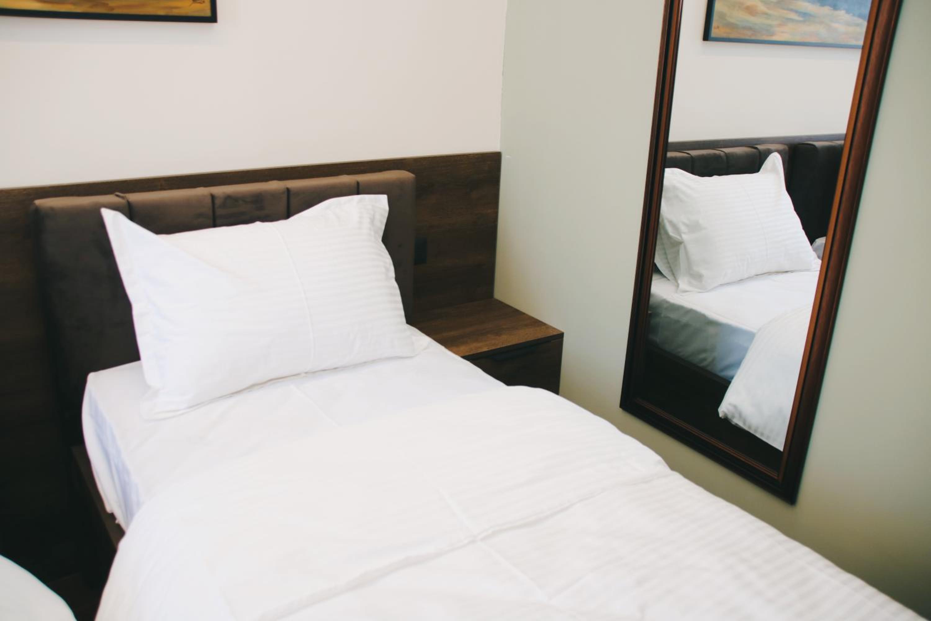 The hotel is pure valu for money. Stylish, seems brand new. Spacious room with possibiliy to accomodate 3 guests. Comfotrable bed. Water, tea and cattle in the room.