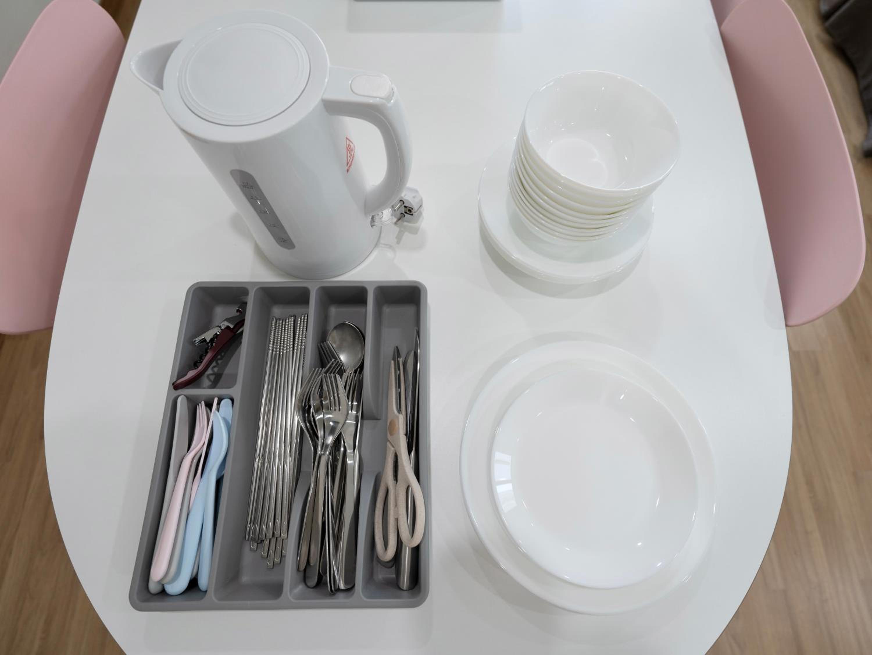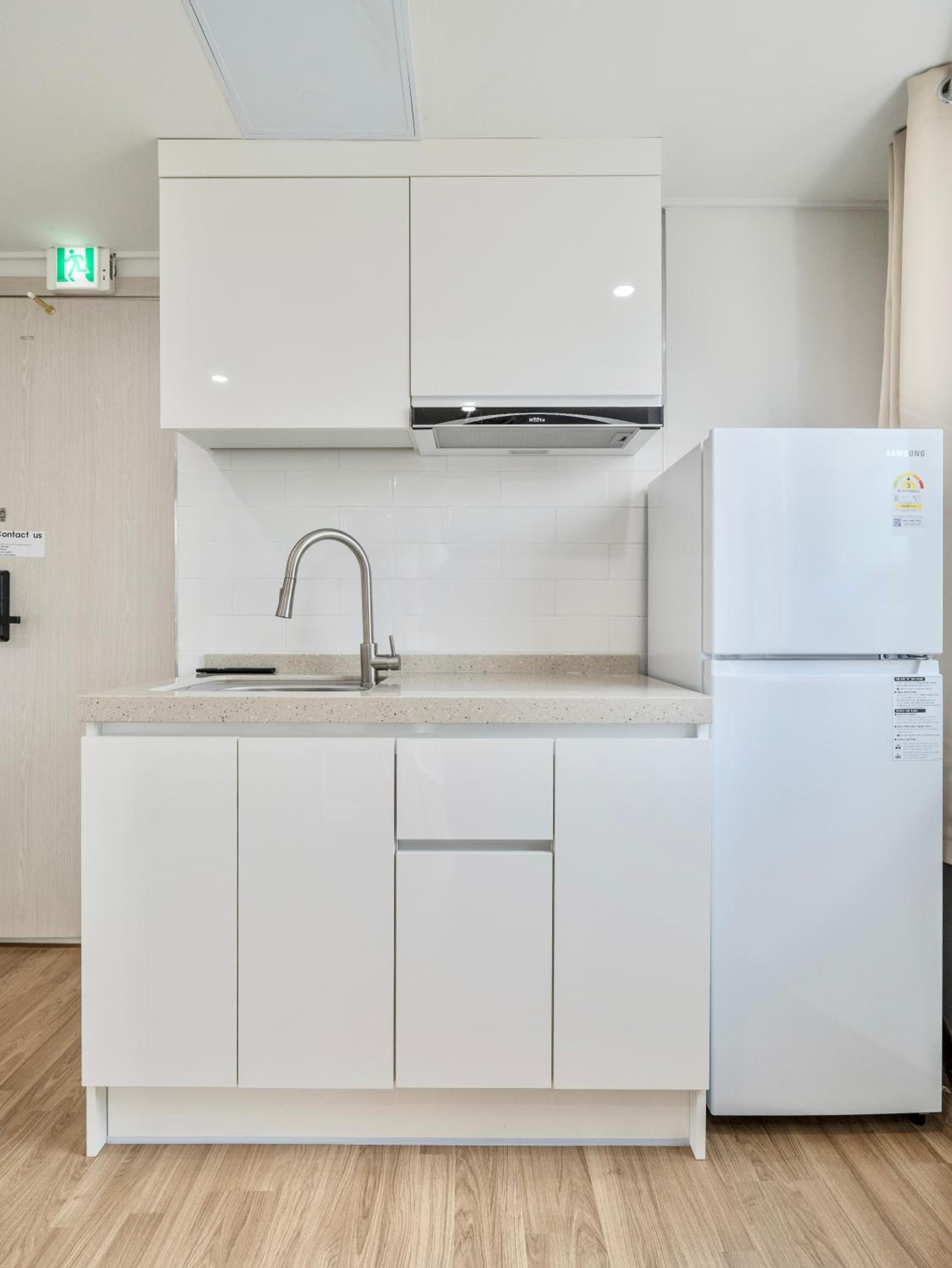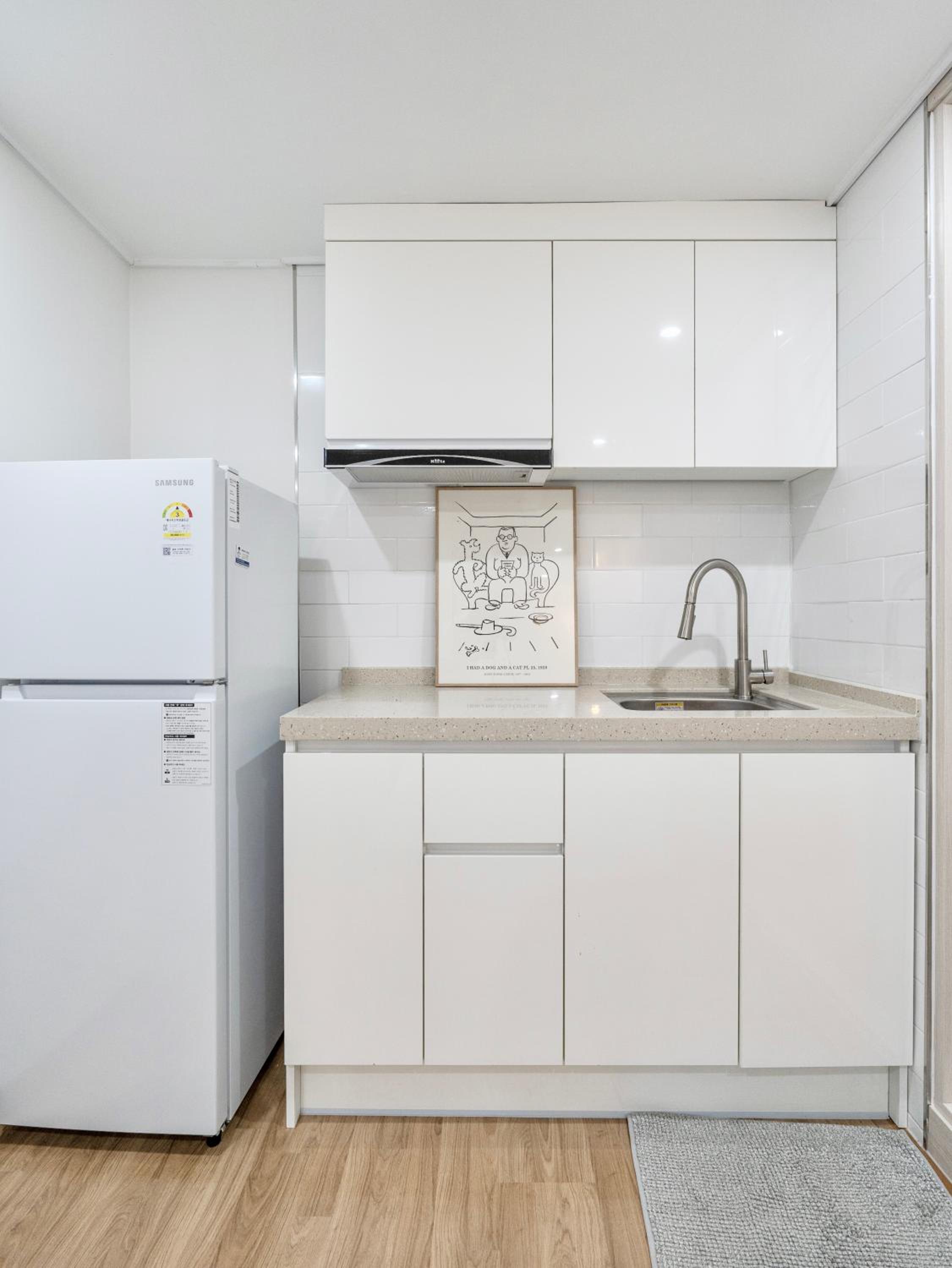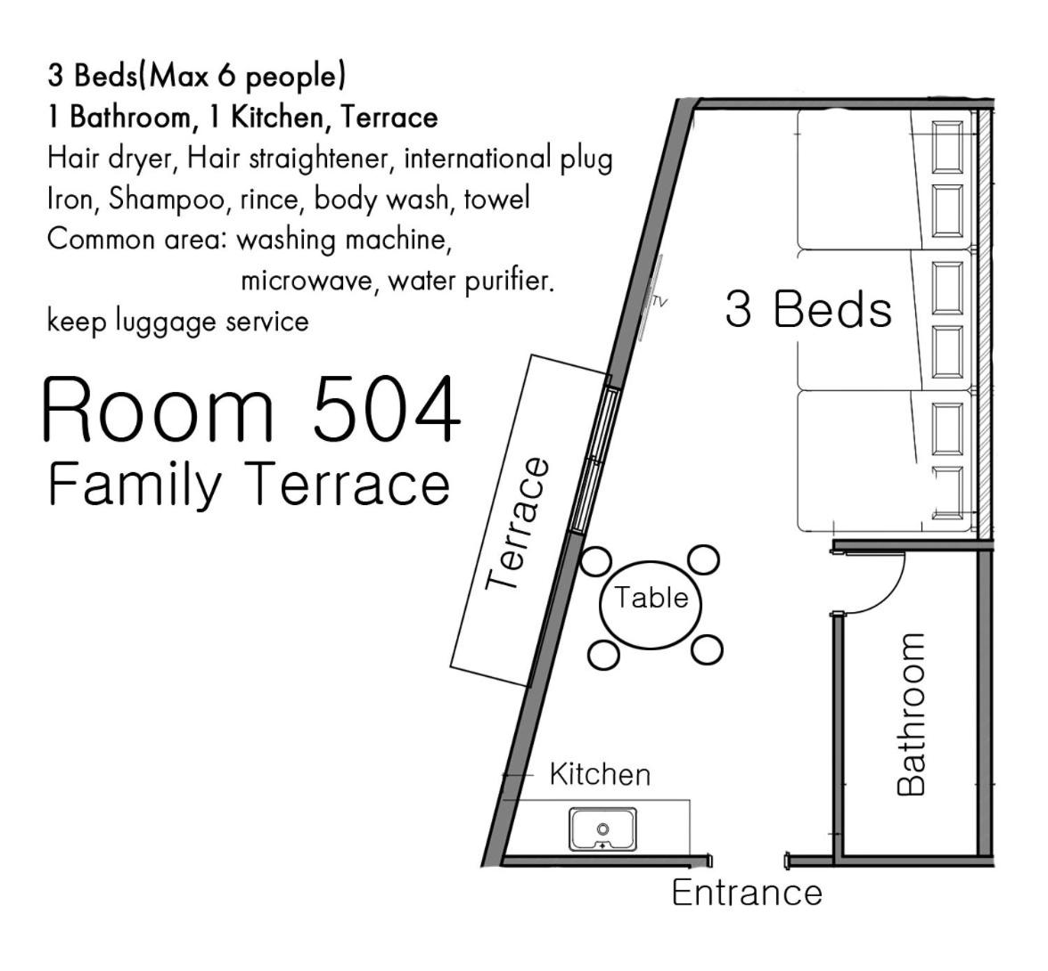 住宿日前2天房東就會發訊息提醒及告知房卡及相關事項,不用擔心如何check in,最後一晚前也會通知如何退房還房卡。重要重要的是這裡的住宿地點實在太便利了,我帶小孩真的不擔心走到腳酸,因為樓下有超市可免稅直接扣抵,也有便利店、人蔘雞湯、橋村炸雞..等,一樓另一邊有好幾家烤肉店,其中最有名是肉夢,在過去一點有亂打秀劇場,也可接入弘大主街。 離弘大9號出口不遠,不論是吃東西買東西都超級方便的,住宿在5樓,最重要有電梯上下樓超方便,房間乾淨,配有許多插頭、轉接頭、連接線,若忘了帶的人可直接使用,小廚房有餐盤、刀具..等,樓下買完東西就可以上樓一起享用。這裡真的是弘大住宿的第一首選哦~