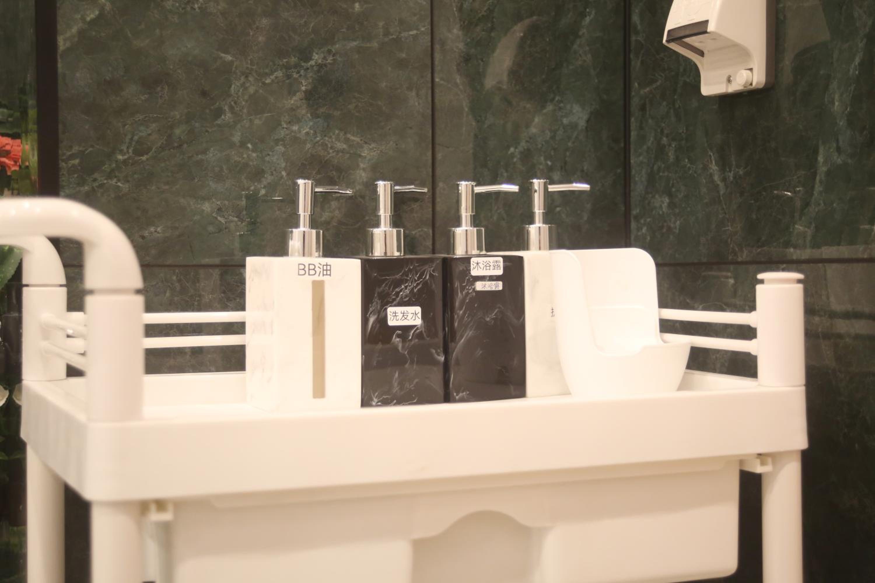 1. 浴室很大,但地面鋪滿塑膠地墊,上面溝滿了毛髮,加上又無窗,造成整間浴室都是霉味