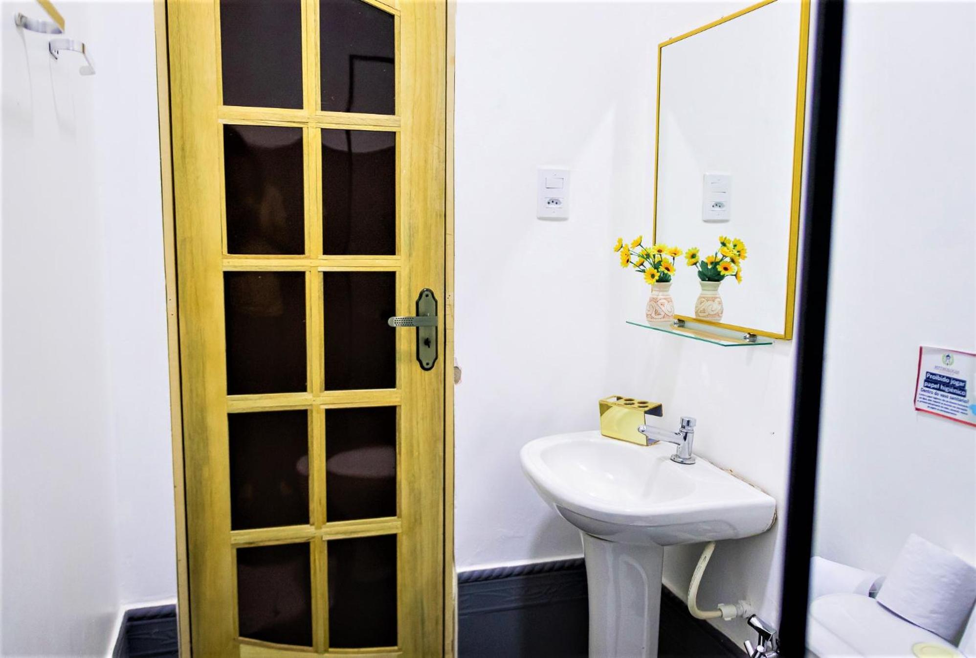 Ausência de algum suporte ou cadeira no quarto para colocar itens pessoais. Quarto para 5 pessoas, mas só tinha um pequeno armário no quarto isolado para casal. No outro espaço não havia nenhum equipamento ou cadeira para colocar itens. Ausência de sabonete na pia do banheiro.