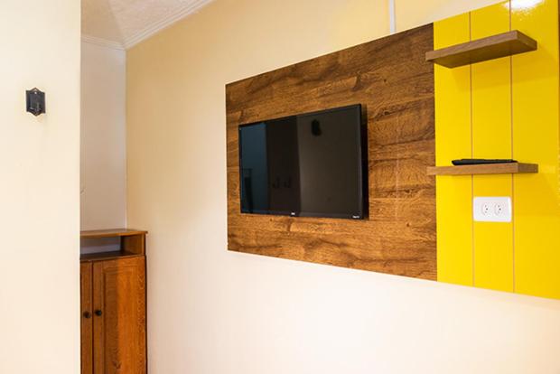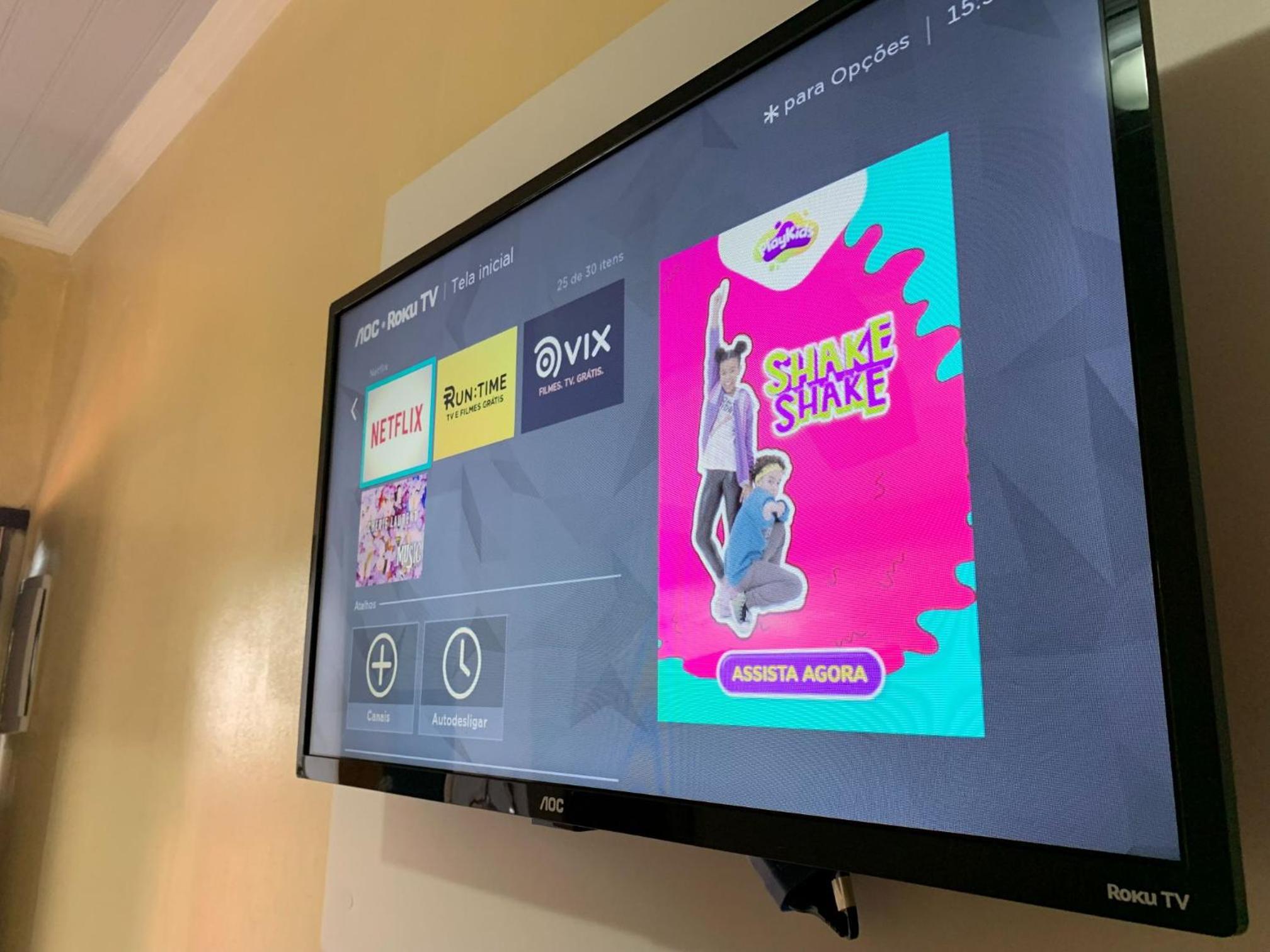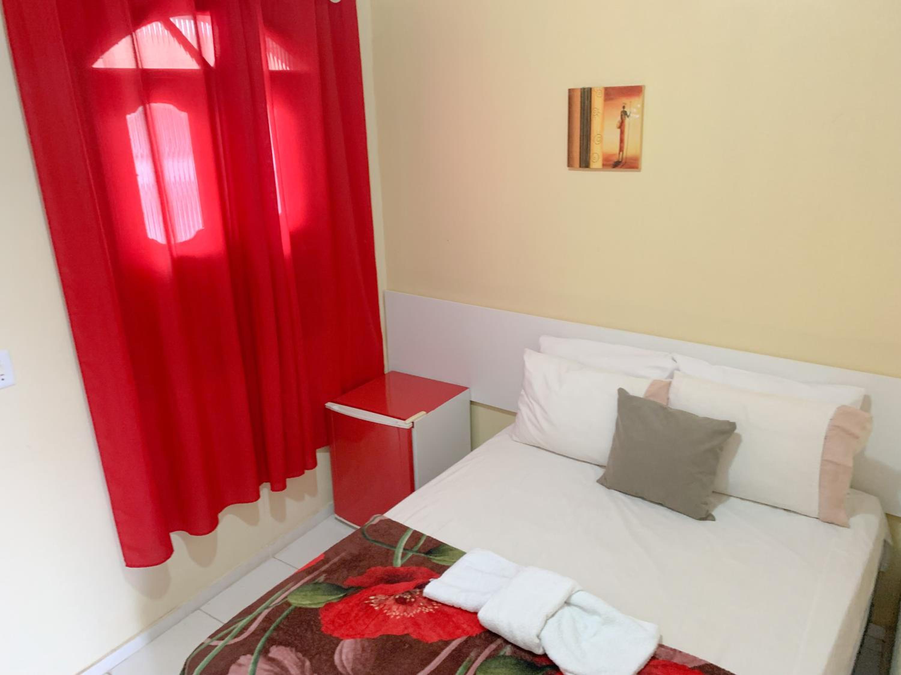 Lençol com mancha, quarto sem tomada (somente da TV e do frigobar)..