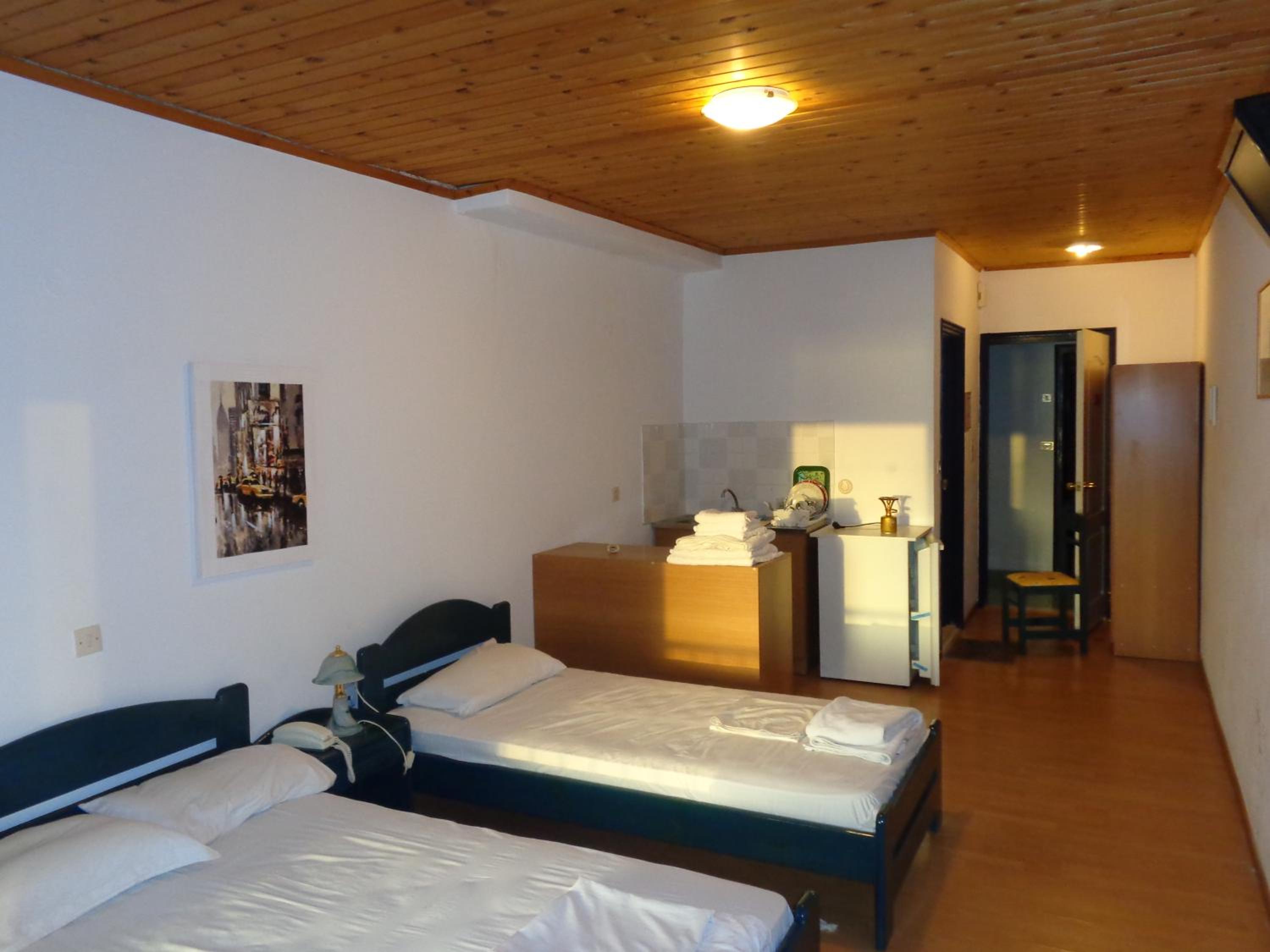 Βρώμικη ντουζιέρα και κουζινάκι. Βρώμικα σεντόνια, με λεκέδες. Παμπάλαια και άβολα κρεβάτια και στρώματα. Αγενέστατος και απαράδεκτος ο ιδιοκτήτης όταν δικαίως παραπονεθήκαμε. Πισίνα που δε λειτουργεί. Αδικαιολόγητα τα 75€ για το τρίκλινο τους.