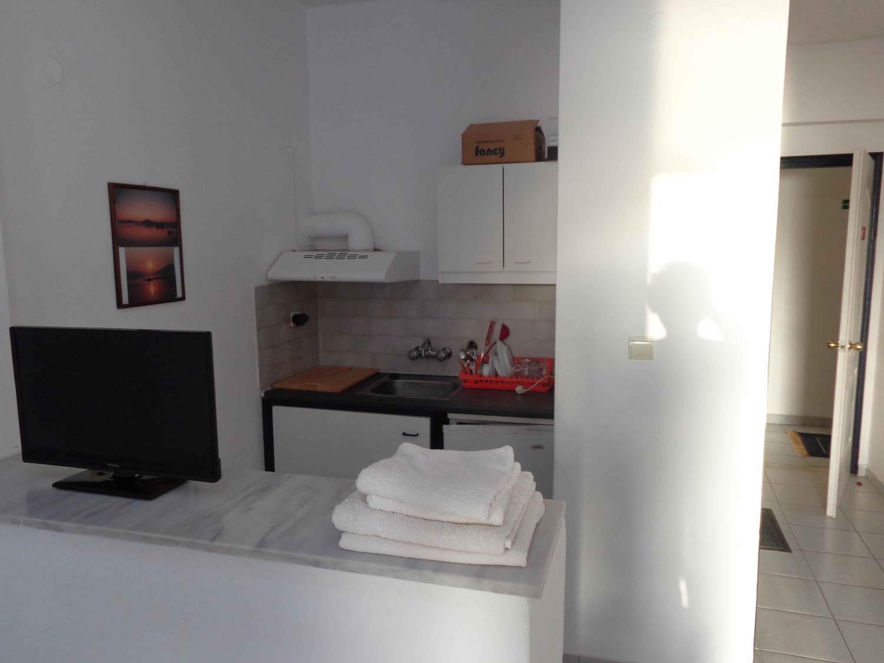 A short walk into town and tavernas. Friendly staff.