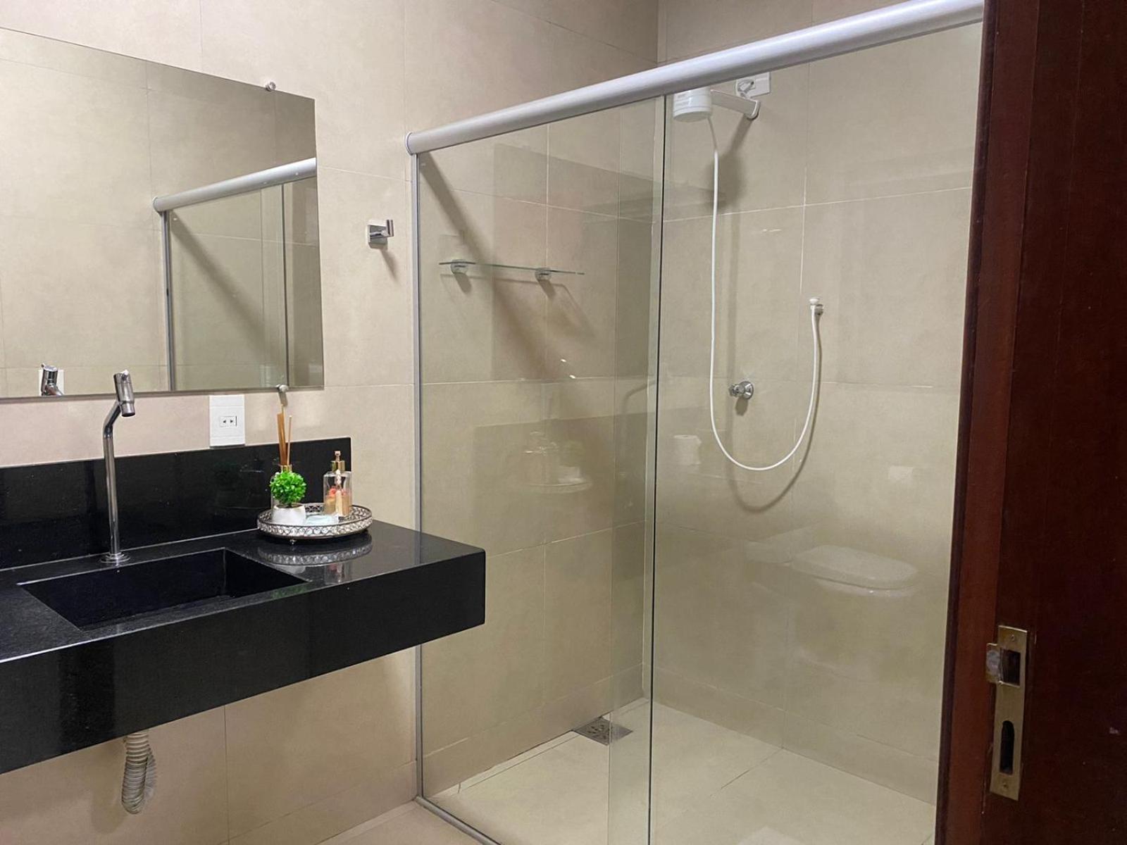 Precisa ter vidro do box no banheiro pra impedir da água invadir tanto o vaso sanitário quanto entrando água pelo quarto