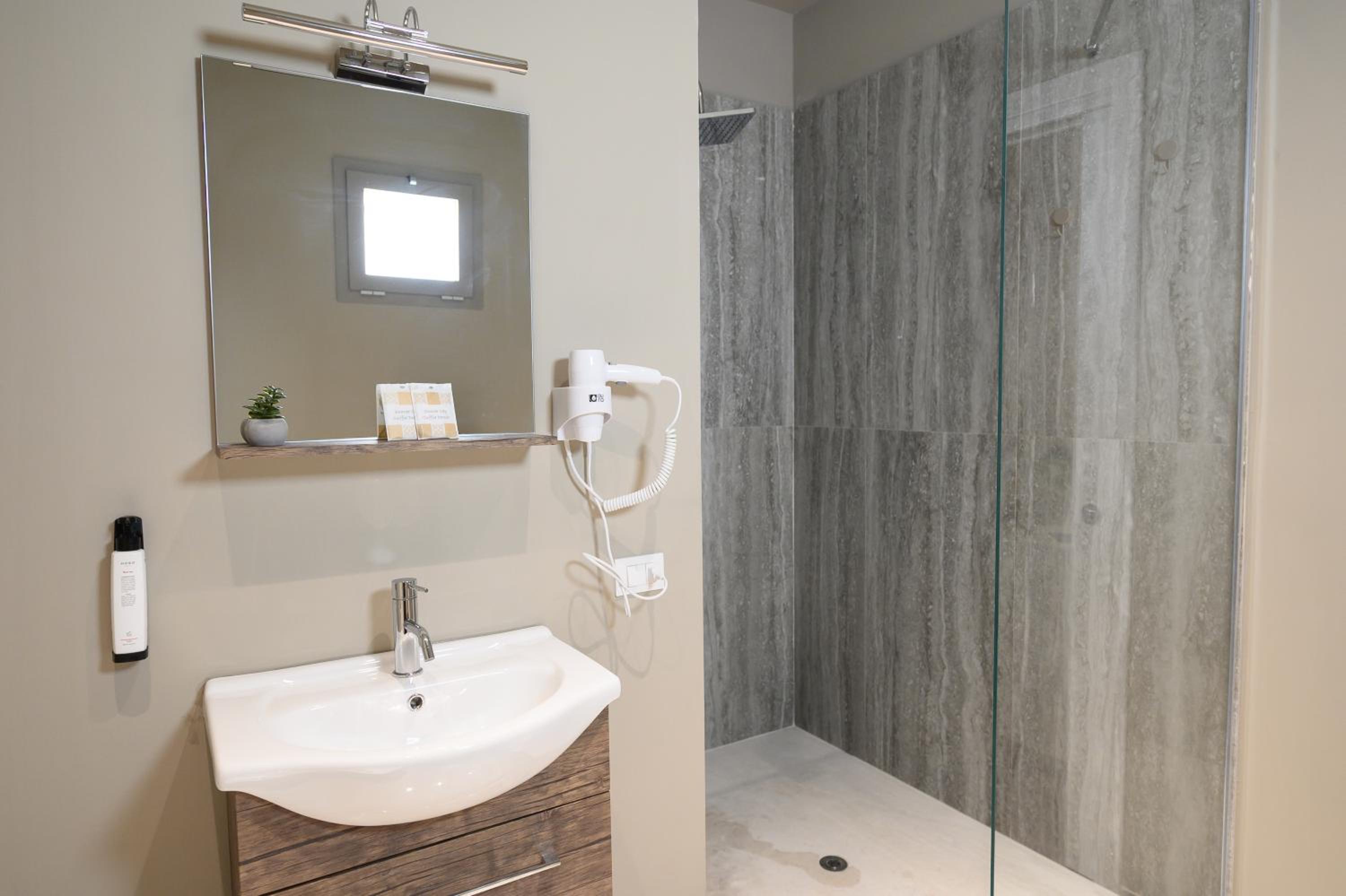 La struttura è nuova e molto pulita, in un'ottima posizione. Offre il parcheggio, un'ottima e abbondante colazione. La camera e il bagno erano pulitissimi e dotati di ogni comfort. Assolutamente consigliato!
