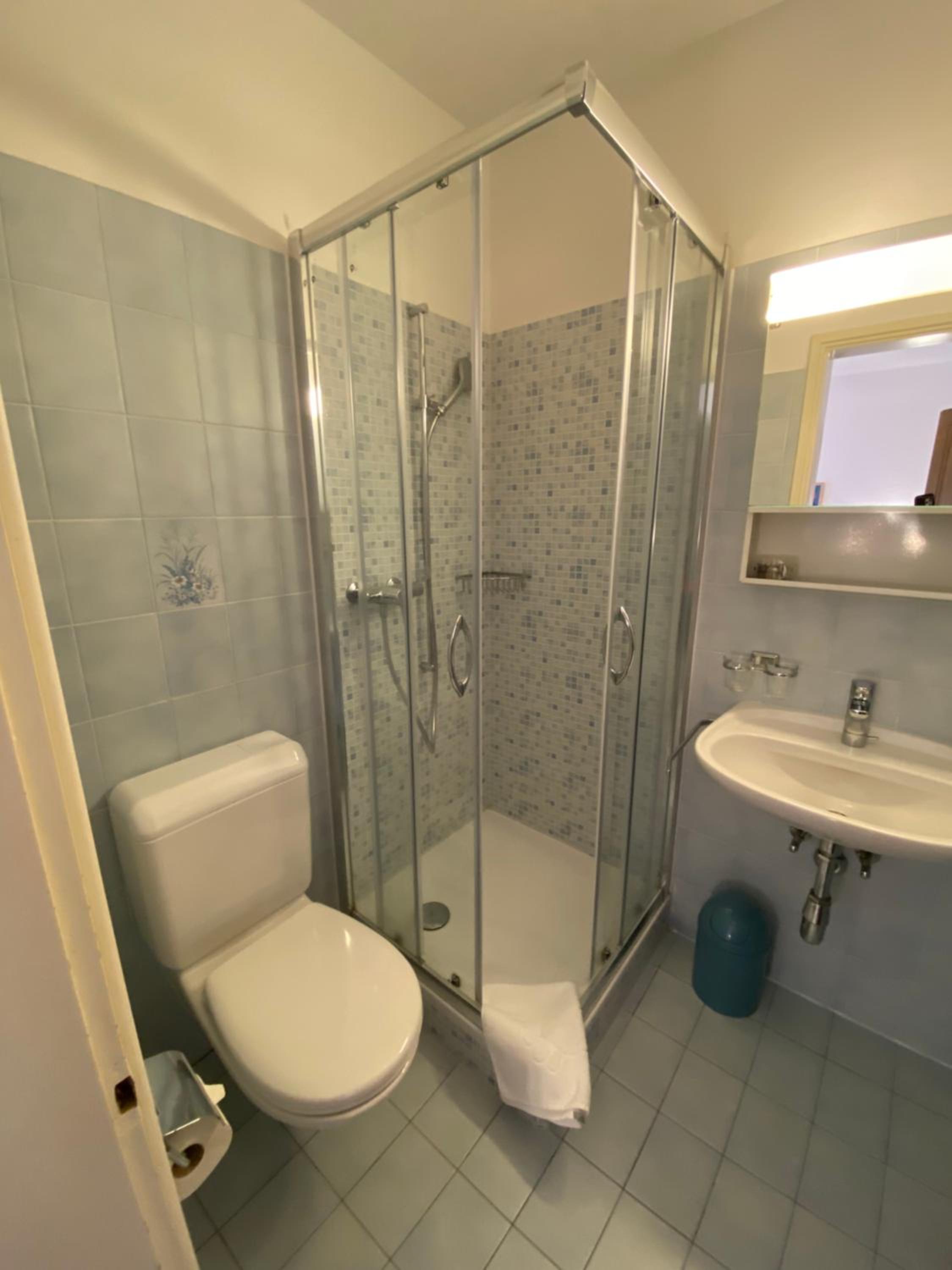 Für Personen mit Koffern ist der Weg vom Bahnhof zum Hotel anstrengend, da dieser aufwärts geht. Es hatte keine ganzen Verdunklungs-Vorhänge. Man hörte die Dusche von nebenan und die Lüftung im Badezimmer. Ein Bild an der Seite würde genügen.