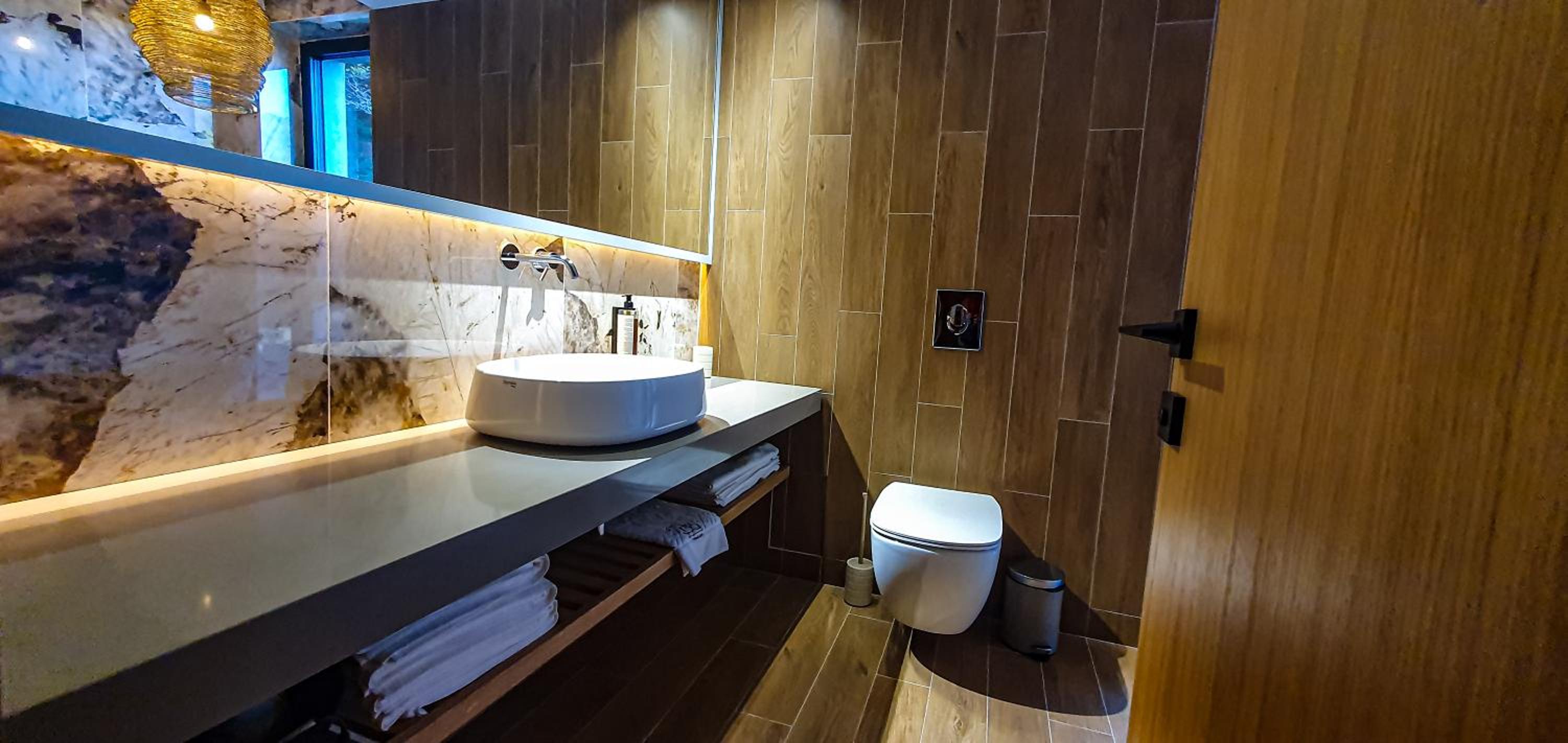 The pillows were very hard. The bathroom fan only worked for 10 seconds after you turned the light on and then it stopped completely. We had to keep the terrace door open so the steam could get out. The SPA area is too small and crowded for the size of this hotel. Overall the price doesn’t seem justified for the experience.