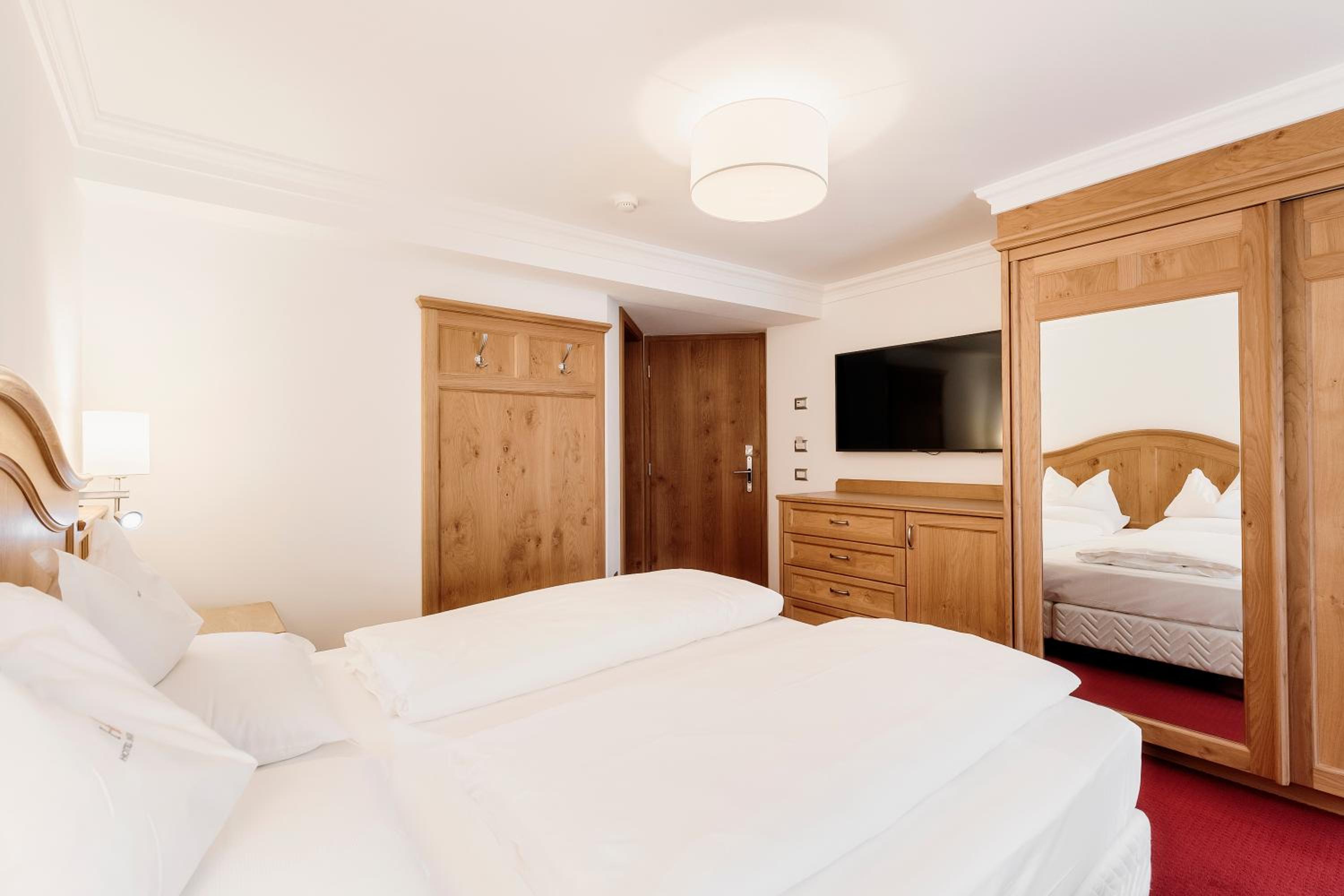 Warm rustic feeling, family run hotel with charming decor. We arrived on our bikes and were able to store them in the ski store which was secure. The room was large and had a table with useful bench seats.