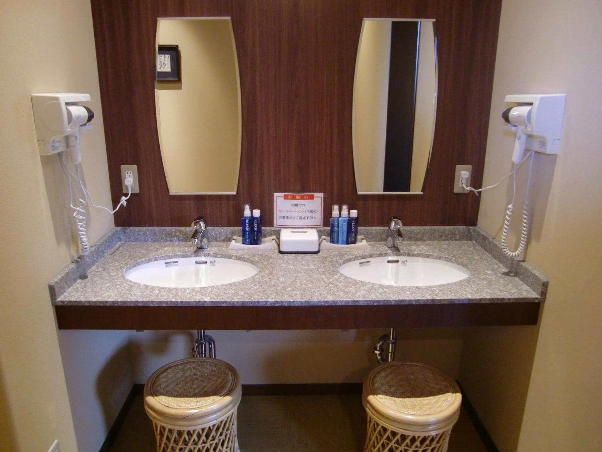 The air-conditioned rooms are thoughtfully furnished with carpeted floors, a safety deposit box, and a flat-screen satellite TV. Guests are provided with Japanese Yukata robes for a touch of tradition, and the en suite bathrooms are equipped with a hairdryer for added convenience.