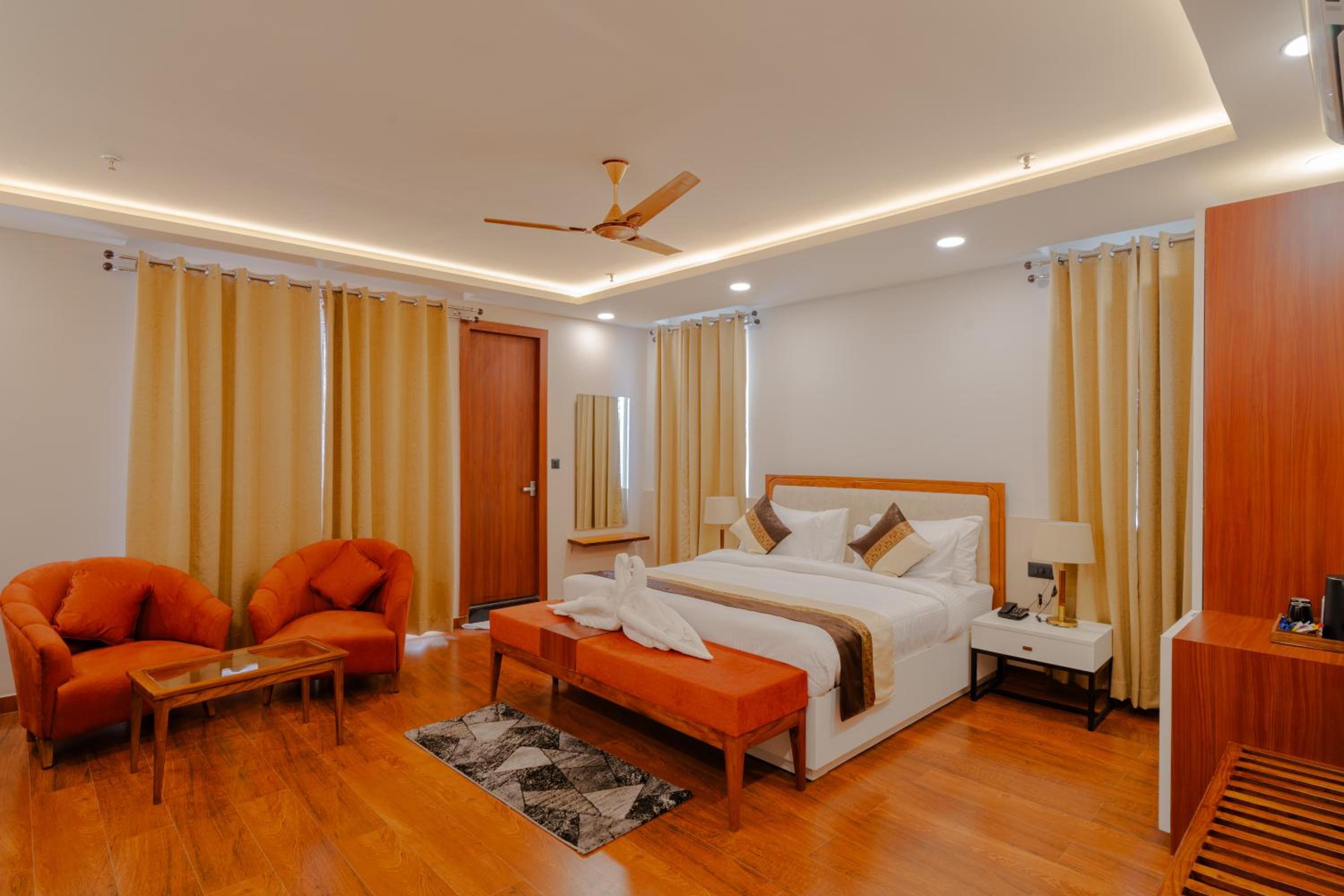 The service was nice , food was good , the staff was very warm . The rooms were cleaned properly, size of the room was good. The hotel has impressive interiors.