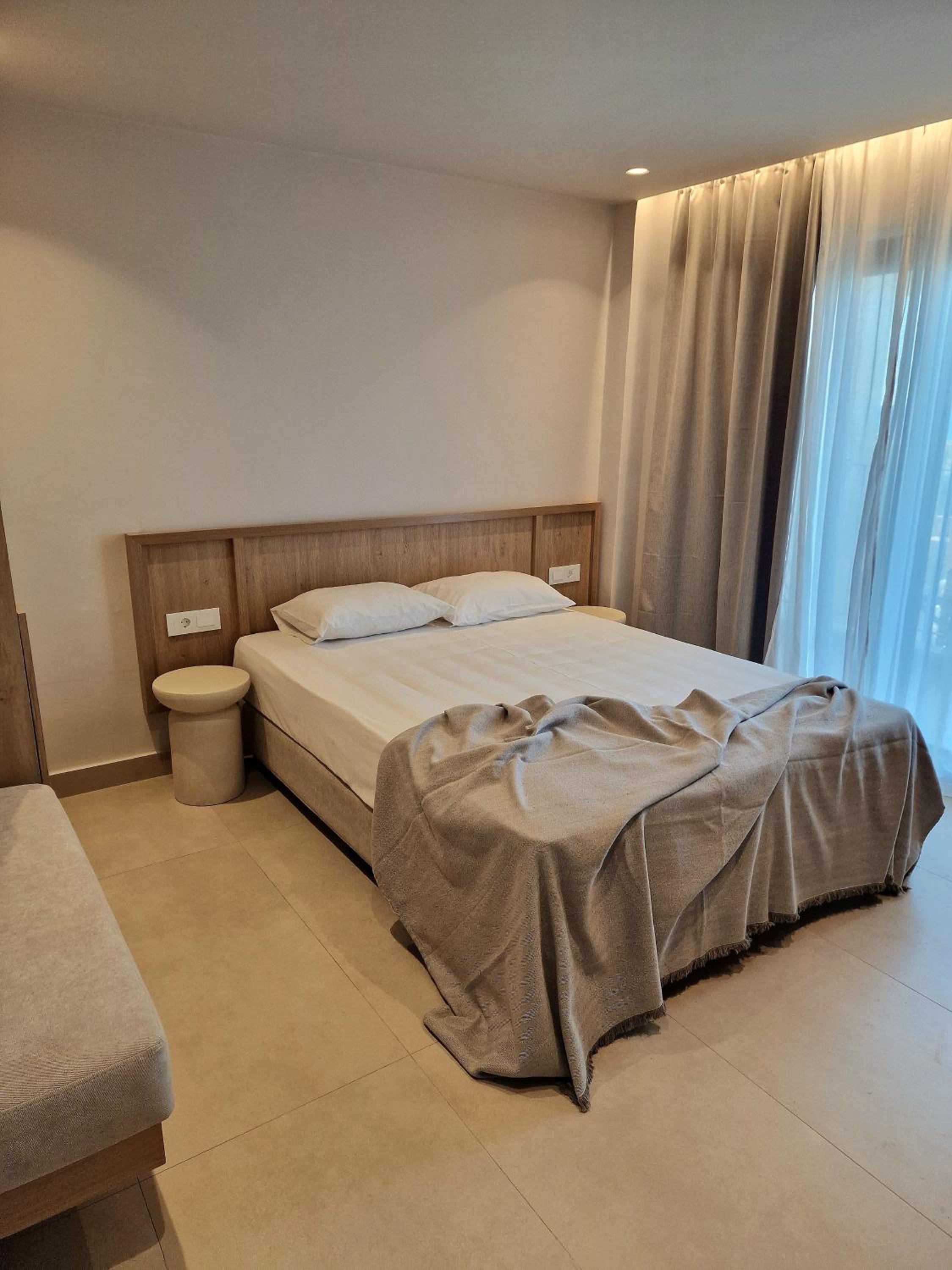 розташування безподобне! Хвилина і ти на пляжі. Для того, щоб скористатися шизлонгом хватає замовити сік, або з ранку поснідати в ресторані прям під Вашим балконом. Номер маленький, але зручний. В номері є холодильник та кавоварка. Я попросила чайник, бо онук з ранку їв каші, що ми привезли з собою. від помешкання до зупинки автобуса 7 хв. можно замовити таксі (35Є до аеропорту)ю В 15-20 хвилинах по узбережжю можно відвідати велиуий акваріум, цікавий як для дітей, так і для дорослих. Рядом з приміщенням є супермаркет.