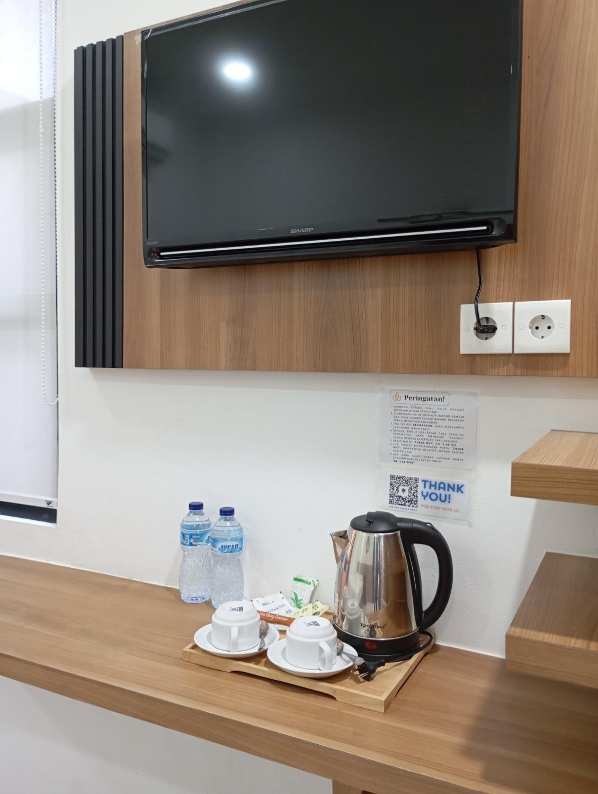 Very nice hotel staff, nice size room, window in the room, comfortable bed, no electric kettle in the room but a dispenser with hot and cold water available.