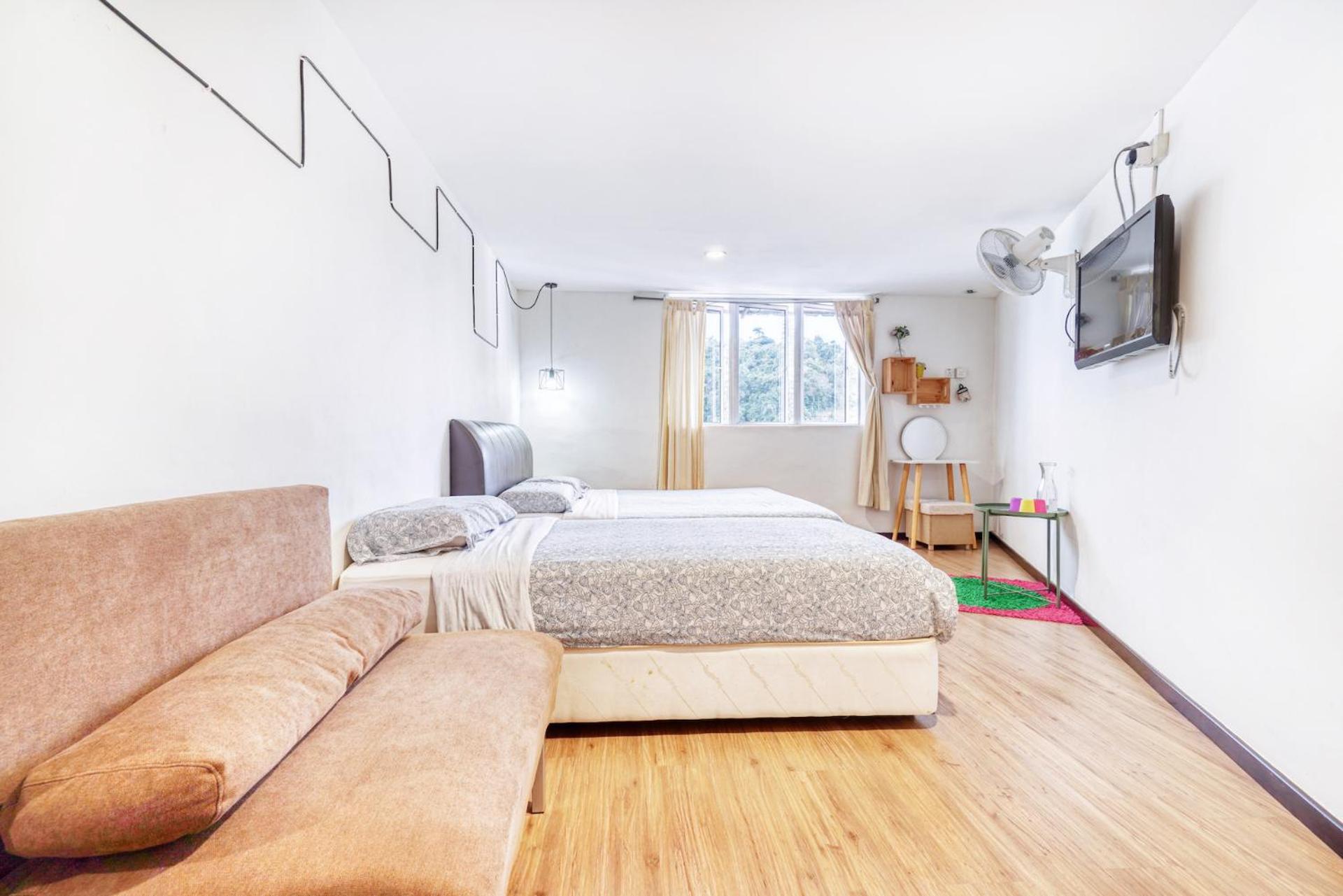 Bilik bersih, lengkap fasiliti, water heater, coway, hairdryer, iron..self check in sahaja sgt mudah, saya 4 beranak book bilik double bed, tp dpt free upgrade bilik quadraple, tak tau sbb ape, tp terima kasih sgt2 lah, selesa sgt dpt 2 katil queen..cuaca di cameron sejuk bukak tingkap umpama buka aircond sampai 16°, kipas dlm bilik pon x pakai lgsung..overall sgt2 berpuas hati, akan repeat lg mgkin dekat hotel yg lg 1, snooze too sbb sne katenye ade lif, yg ini xde, tangga pon agk tinggi mgkin x sesuai untuk org2 tua..untuk org2 muda xde masalah sbb bilik sgt cantik dan bersih,rasa mcm dekat rumah sendiri..terima kasih sgt2 kpd pihak hotel, kami sekeluarga happy sgt duduk hotel ni..
