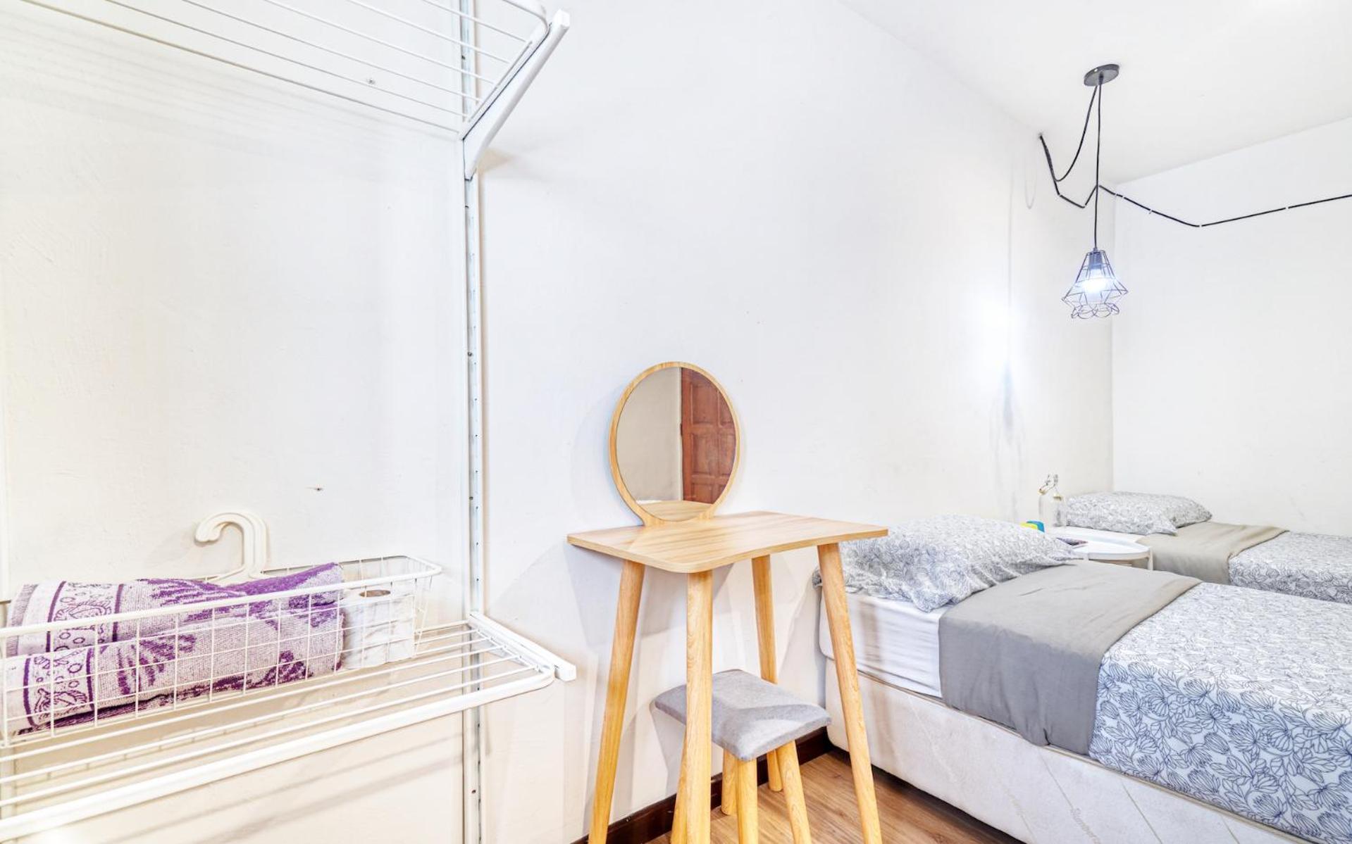 Hotel ni hotel bajet jadi tak ada lif cuma ada tangga saja, tak disarakan untuk orang yang tidak berkemampuan nak naik tangga. Bilik selasa ja untuk dua orang duduk, tak rasa sempit pun. Ada iron dan peti ais dia luar bilik, cuma yang duduk bilik atas kena turun bawah kalau nak guna iron atau peti sejuk. Hotel ni rasa macam vibe vibe dekat rumah sebab masuk kena buka kasut, dekat luar bilik ada tempat untuk melepak ada kerusi meja disediakan, sinki dan penapis air pun ada