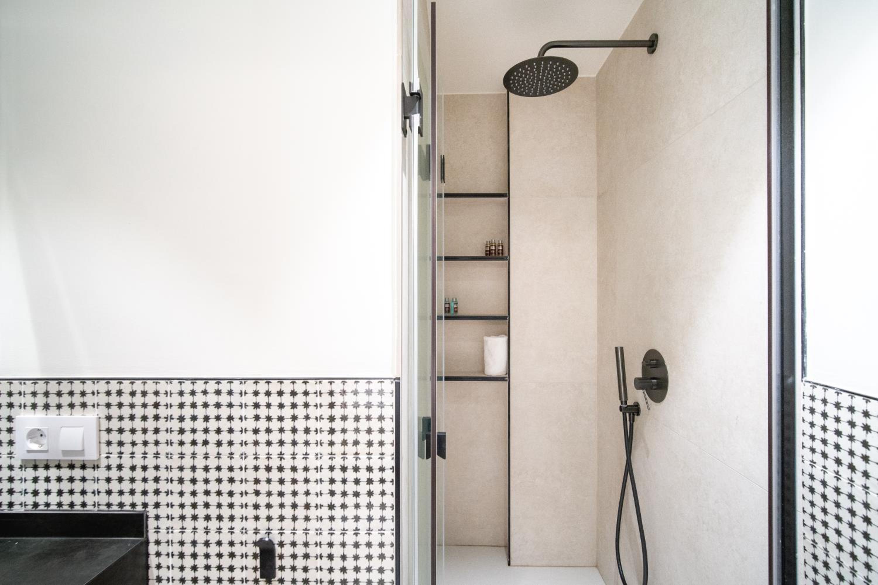 La ubicación era excelente. Ducha grande y espacio moderno.