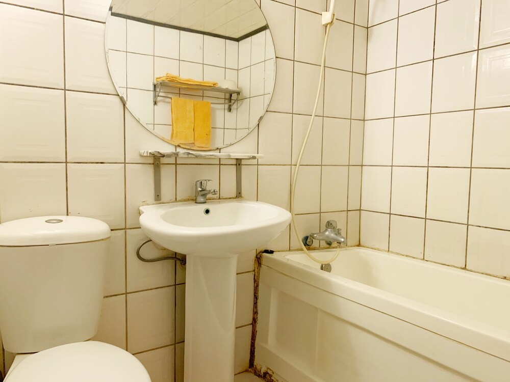 枕頭都是霉色的,床上也感覺有層灰,洗澡也是開了五分鐘一樣沒半點熱水,要不是真的累到不行,真的完全睡不下去。訂房前請三思,可以直接上google地圖全景模式查看,真的很像住在廢墟裡。基本都是給外勞住的。
