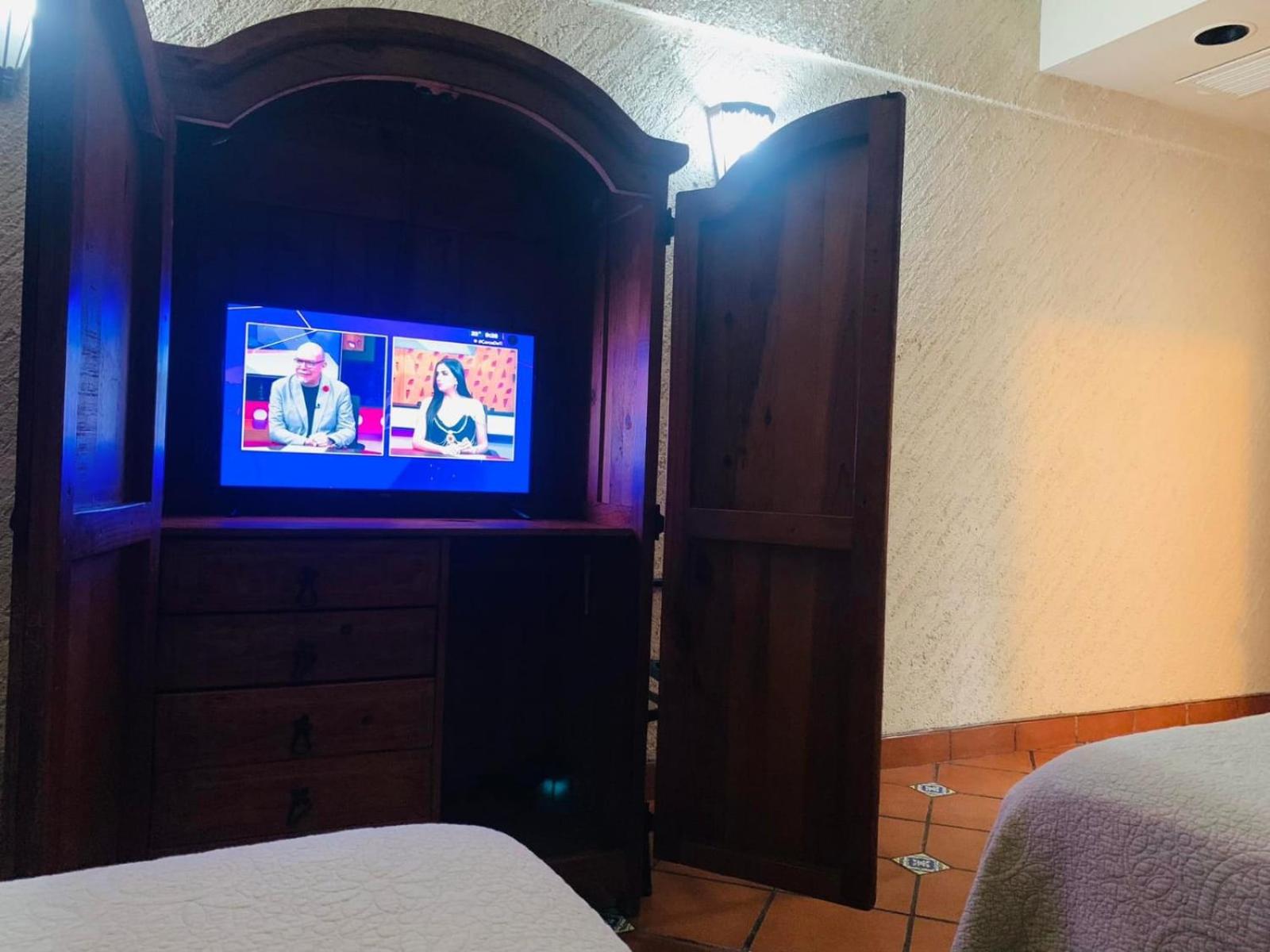 Había smart tv, nos sieron habitación amplia esta vez, la estancia anterior era una habitación pequeña y sin smart tv.