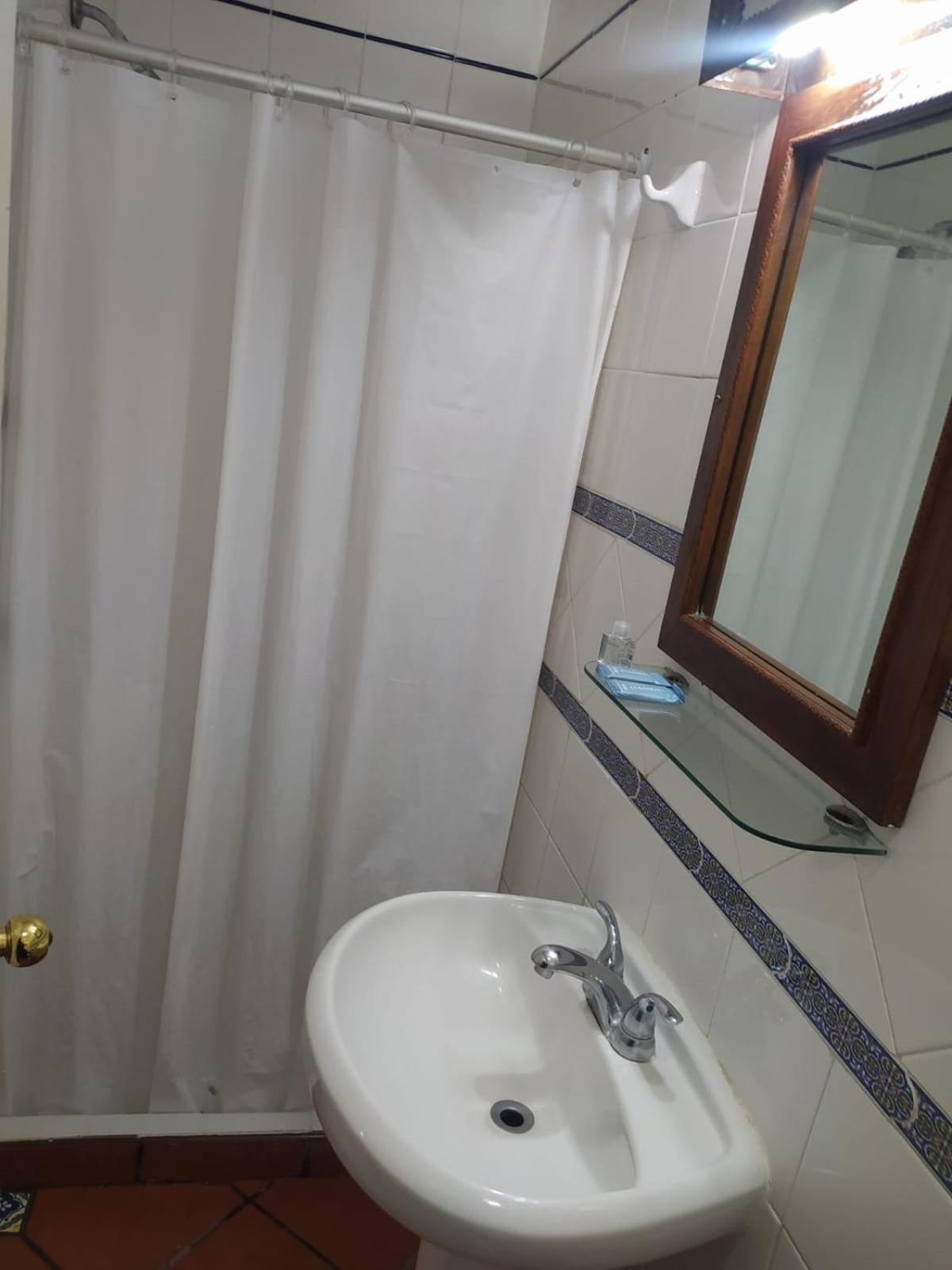 En la habitación amplia, el baño está amplio pero la regadera no es cerrada, tiene cortina y esta no cubre toda la regadera entonces el agua se sale por los lados y todo el piso del baño se moja, deberían ponerle paredes de acrílico o cortinas más largas.