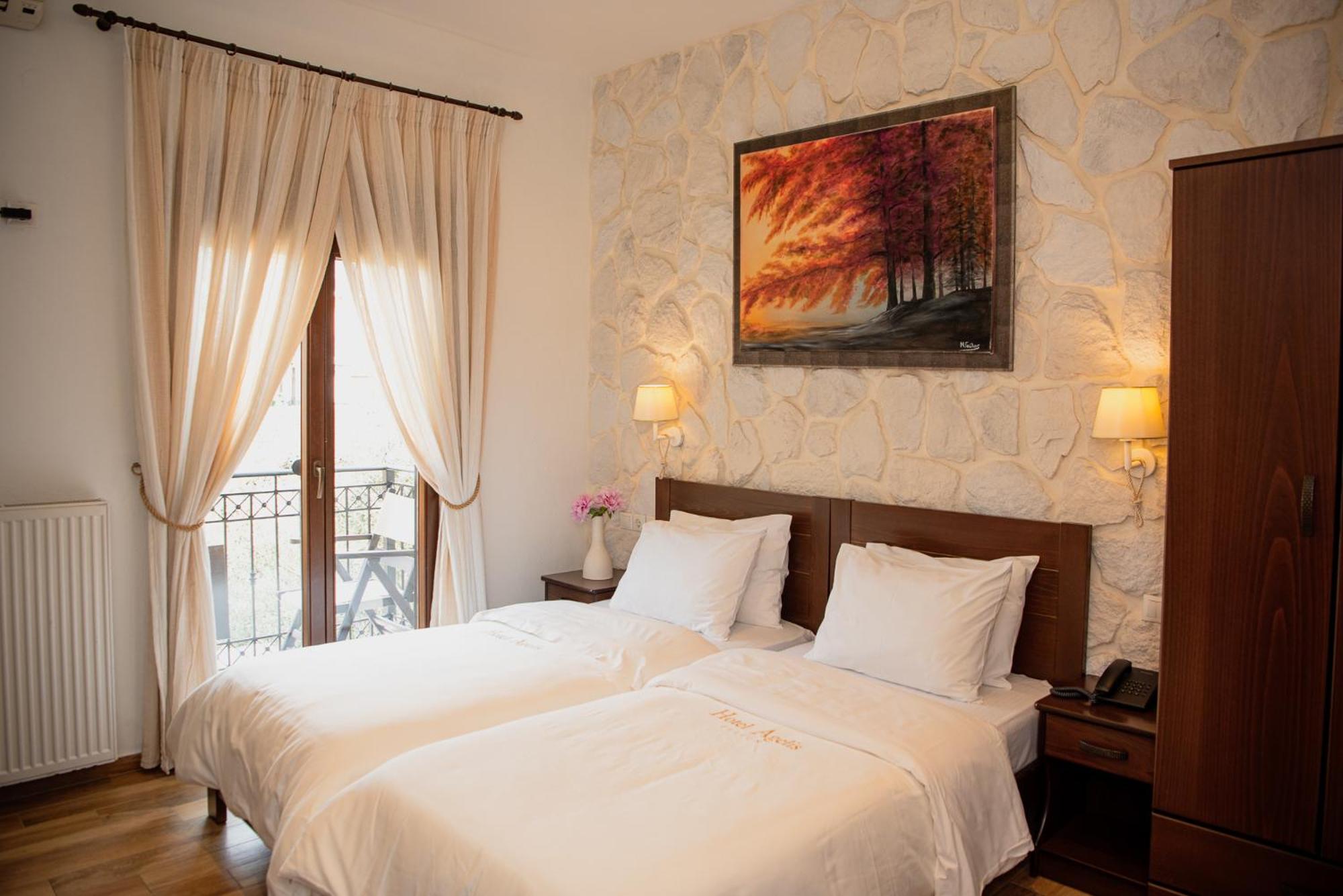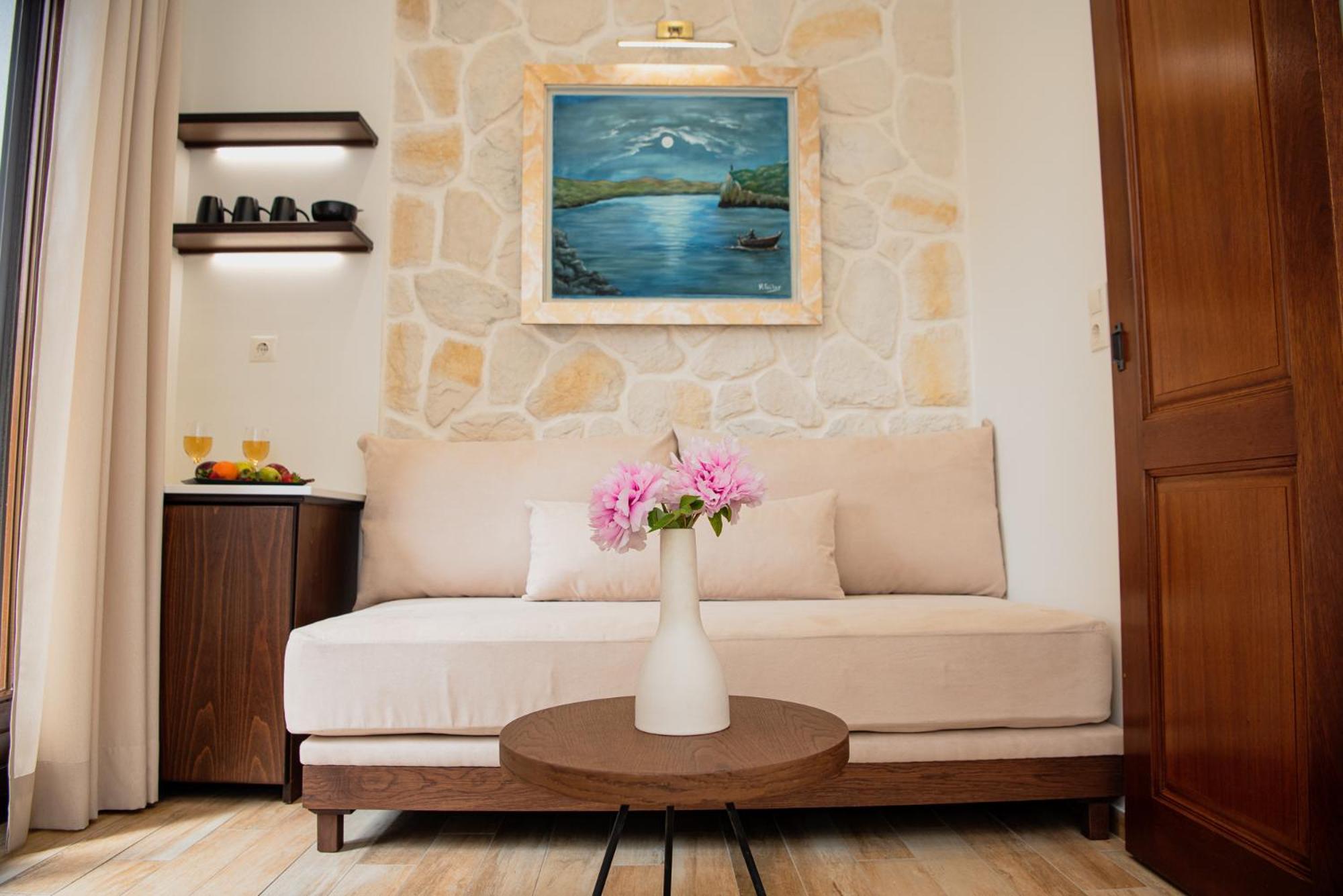 Elegant Rooms and Amenities: Hotel Agelis offers beautifully decorated rooms with wooden floors, dark wood furnishings, and warm-colored fabrics. Each room is equipped with a TV, minibar, sofa, and dining area, ensuring a comfortable stay.