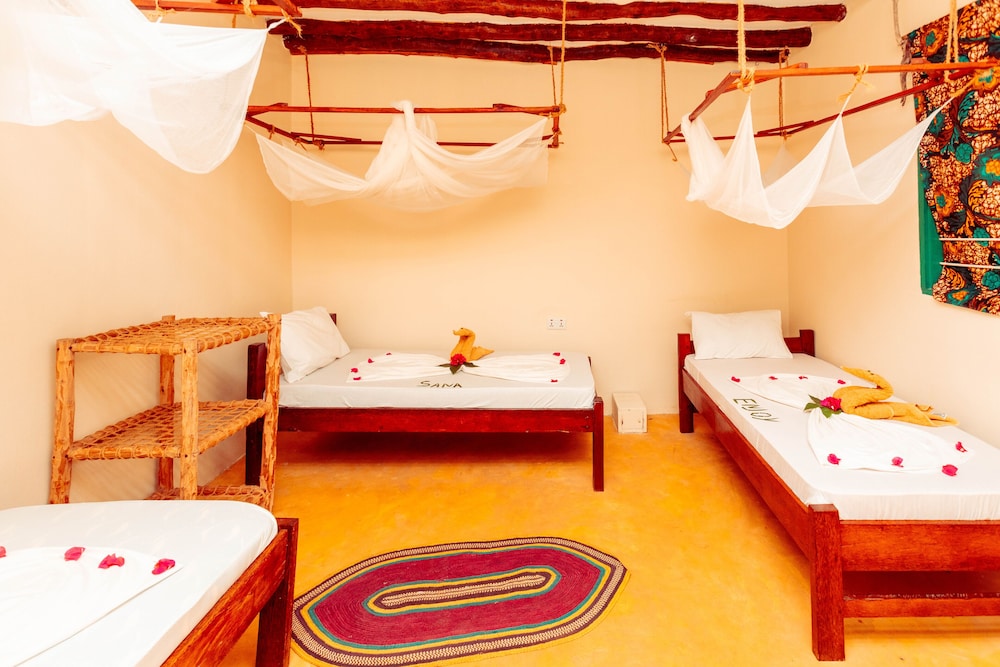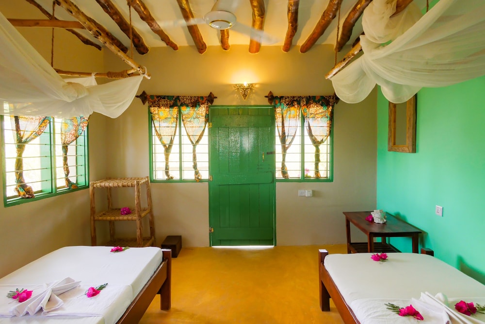 Wir hatten einen wunderschönen Aufenthalt. Das gesamte Hotel-Team ist uns ans Herz gewachsen. Das Essen war sehr gut. Die Bungalows und das ganze Areal sehr sauber gehalten. Man kommt dort ohne Klima-Anlage und Fernseher in den Zimmern aus (alles ist ökologisch und natürlich). Das Restaurant ist im freien, einfach überdacht, der Pool ist perfekt. Die Party am Donnerstag geht jeweils bis gegen Morgen. Sonst ist es immer angenehm ruhig. Zum Strand geht man in 10 Minuten zu Fuss, weitere 10 Minuten dem Strand entlang bis man mitten im Strandleben von Paje ist. Paje ist ein Kitesurf Paradies.