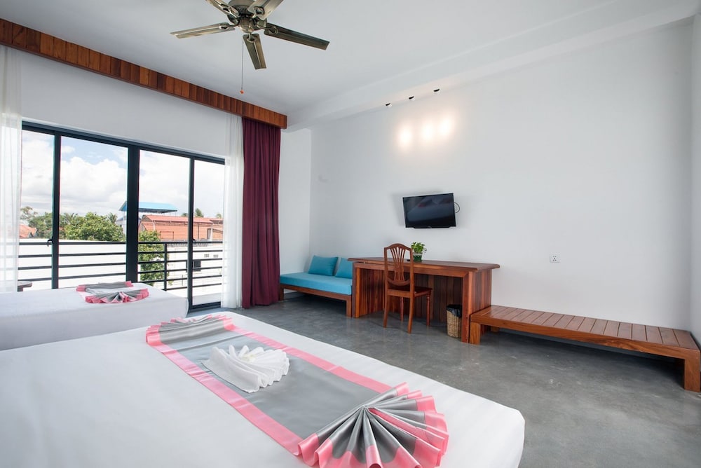 Relax in one of the 19 air-conditioned rooms with kitchens, private balconies, and separate sitting areas.