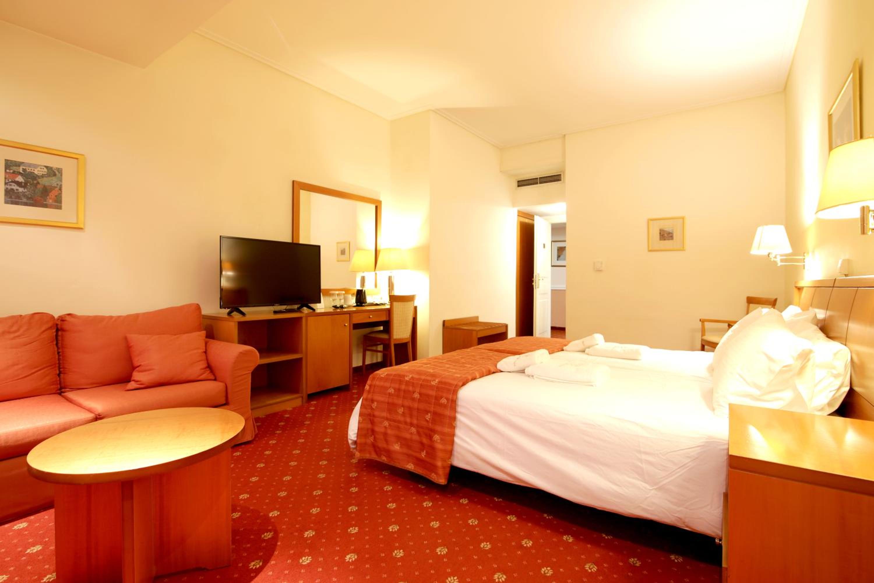 Großzügige Zimmer, freundliches Personal, wir hatten ein Zimmer mit Terrasse mit Blick auf die Gegend . Im Badezimmer sehr gute Pflegeprodukte von Korres. Reichhaltiges Frühstück.