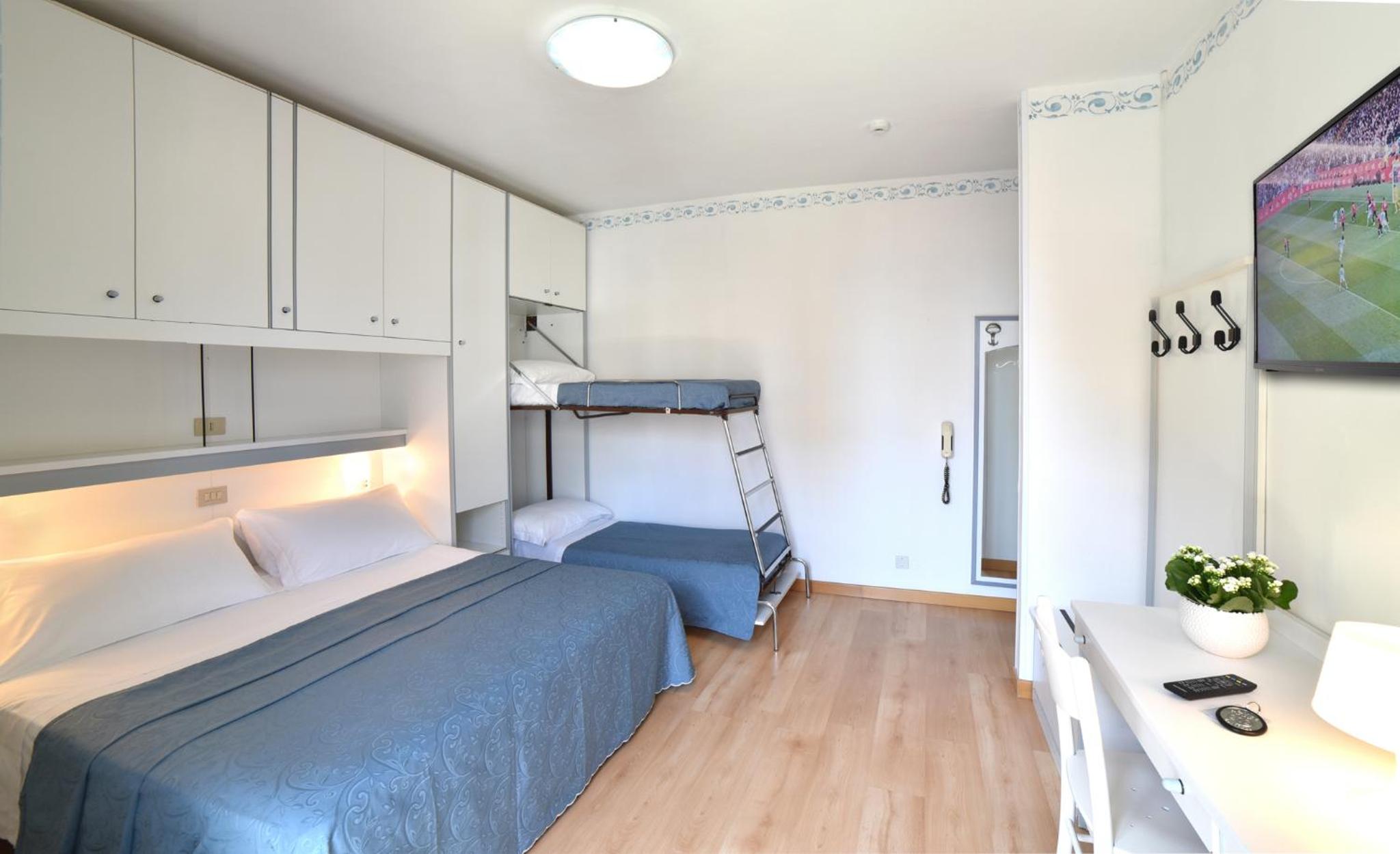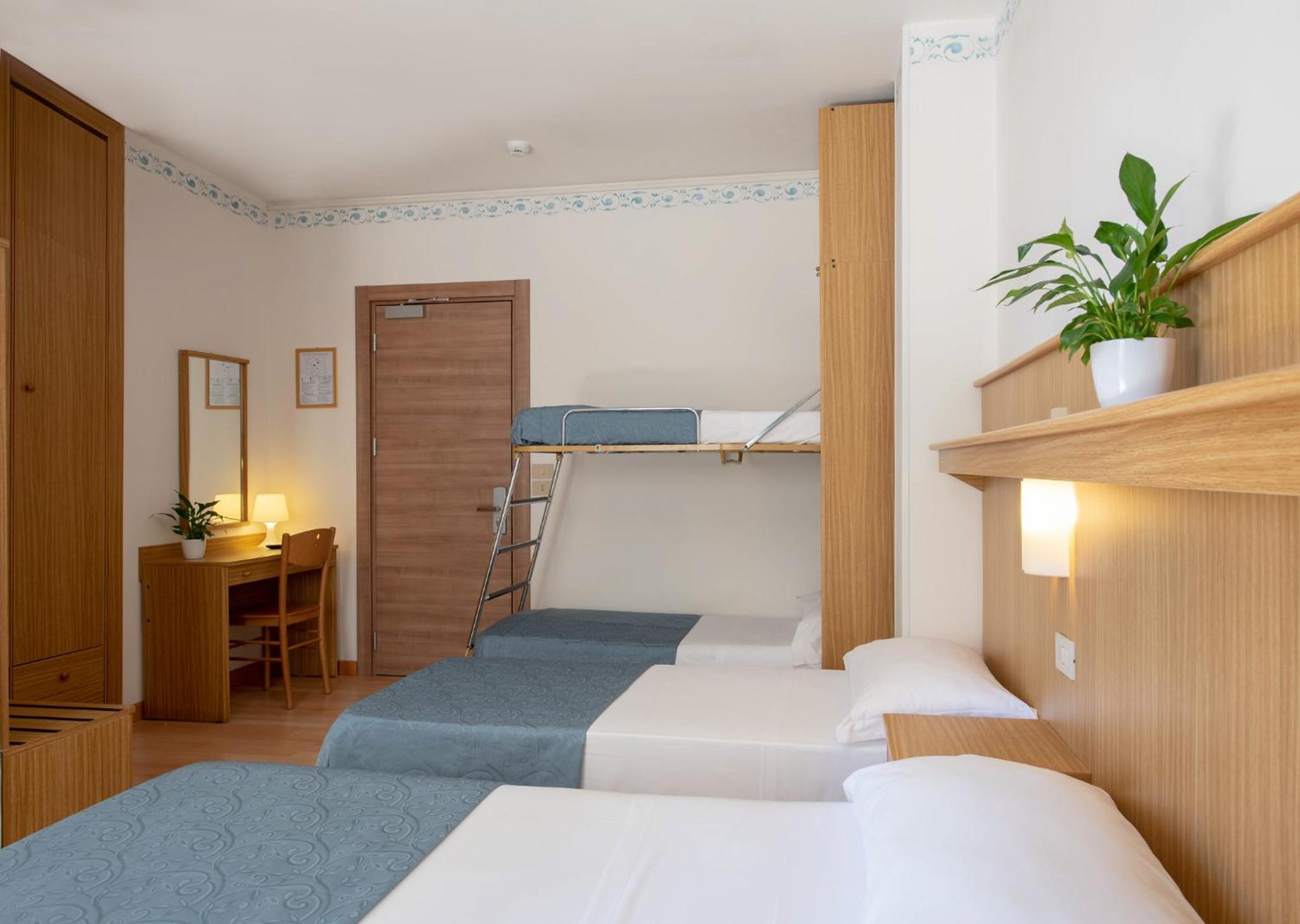 La camera per quattro persone è piuttosto piccola, avrei preferito un po' di spazio in più
