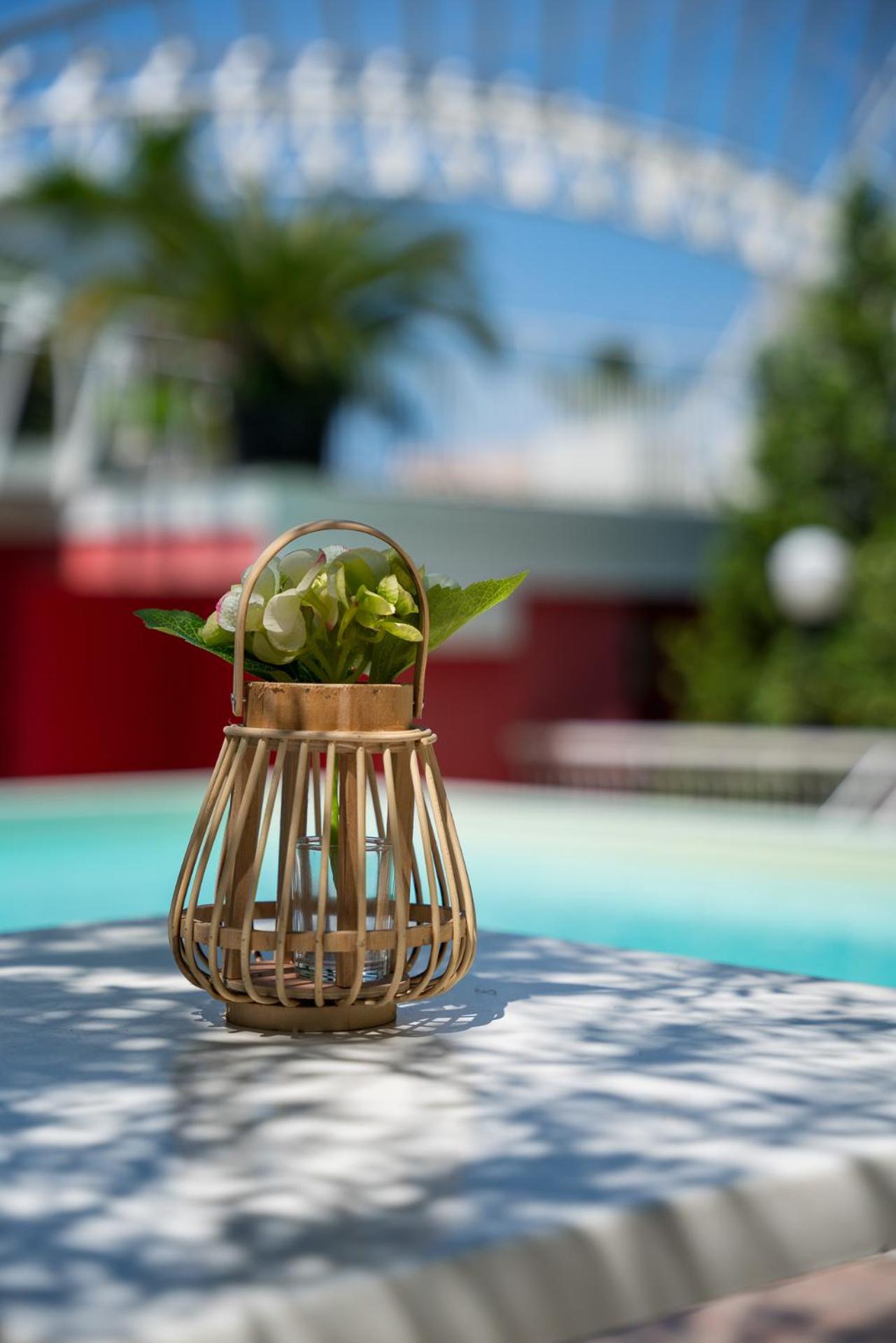 Relax in our outdoor swimming pool surrounded by a lush garden, equipped with sun loungers and parasols for the ultimate comfort.