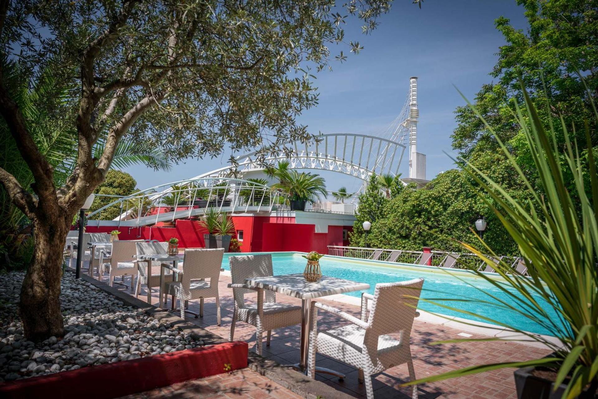 I cuscini erano molto scomodi, la stanza per averla pulita sono dovuta andare a lamentarmi... peccato che abbiano pulito solo 'dove si vede', sotto il letto era uno schifo. La piscina esterna era piena di zanzare e cespugli incolti, i lettini tutti rotti. Quella interna aveva l'acqua piena di foglie e insetti morti. Il parcheggio è caro per quello che offre, non è curato a livello di piante ci siamo ritrovati l'auto piena di foglie e resina al punto da doverla portare al lavaggio e li... sorpresa! Tetto graffiato dai rami delle piante!