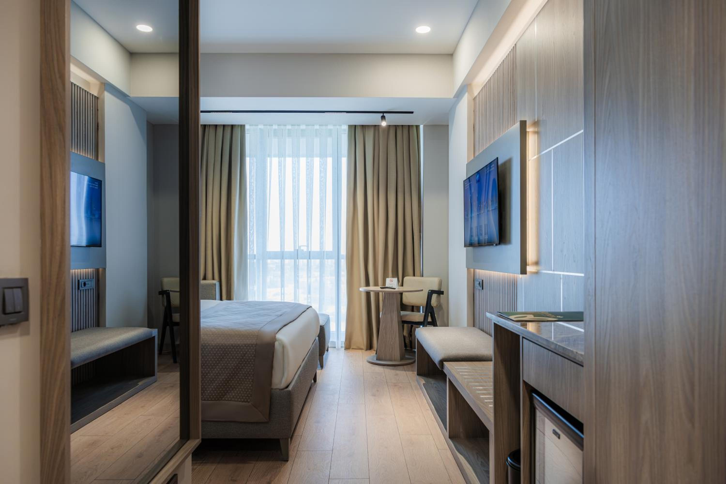 Each room is equipped with modern amenities including air conditioning, flat-screen TV, minibar, and free WiFi. Enjoy complimentary toiletries, a safety deposit box, and the option for pool views in select rooms.