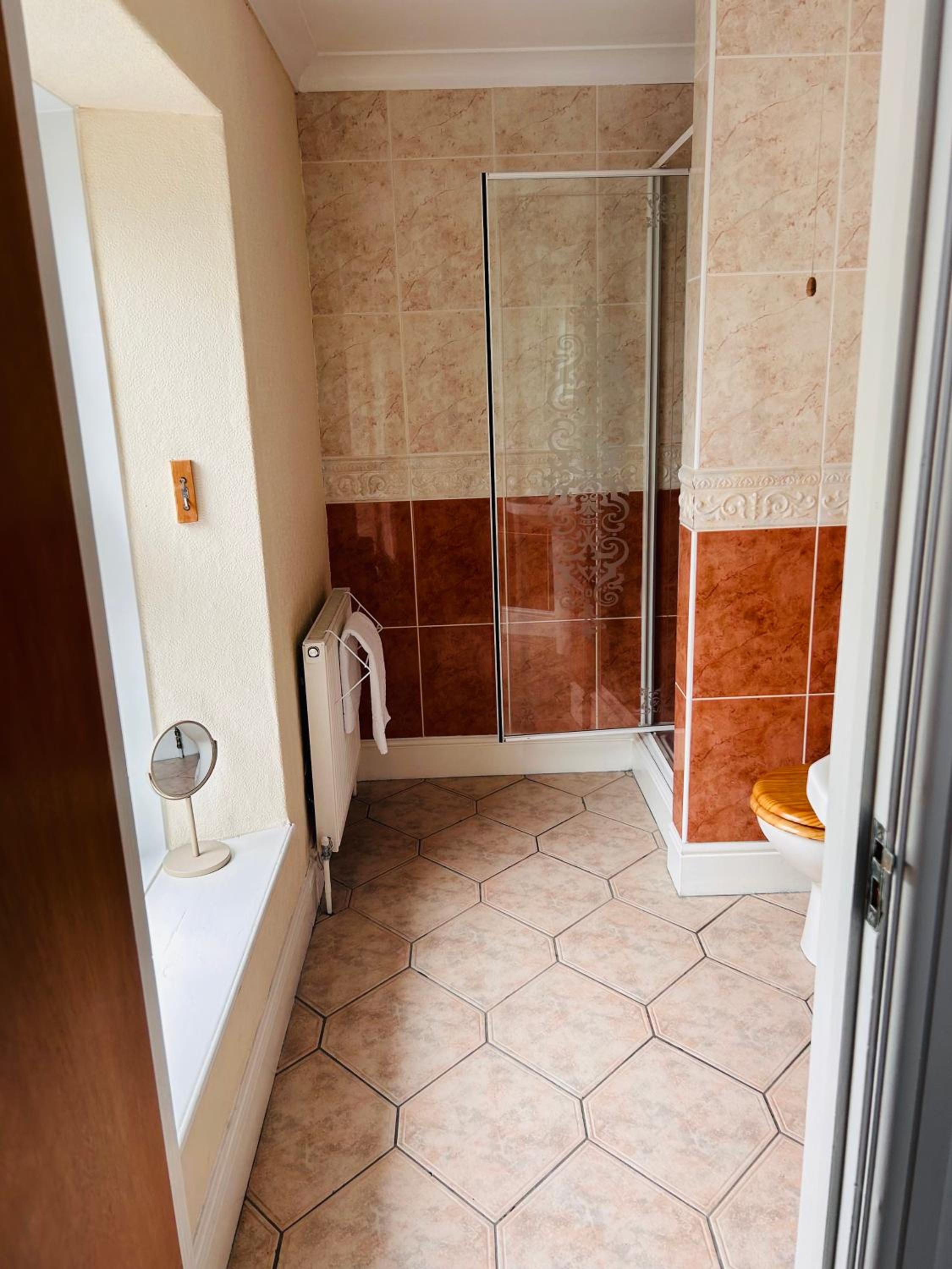 Clean room with all required amenities provided alongside and an good ensuite bathroom.