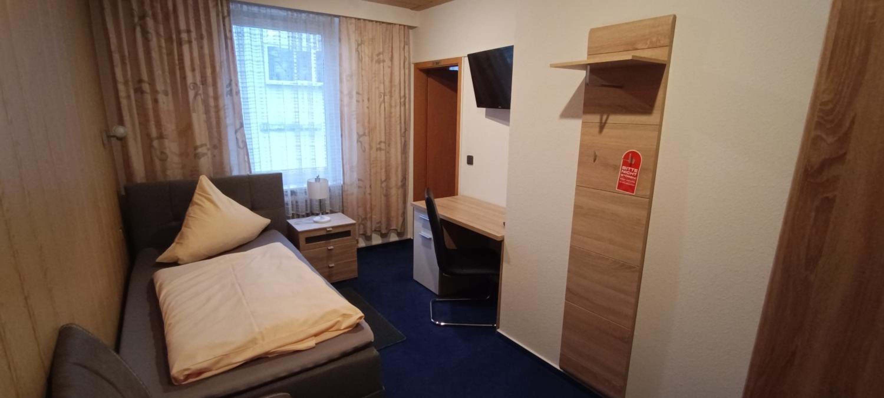Kein Zimmerservice, 7 Tage das gleiche Handtuch, kein Leeren des Mülleimers, TV am letzten Tag nicht funktioniert, kein Leeren der Mülleimer im Gemeinschaftsbad und - WC, dreckiges Treppenhaus, Zimmer im 3. Stock ohne Lift,