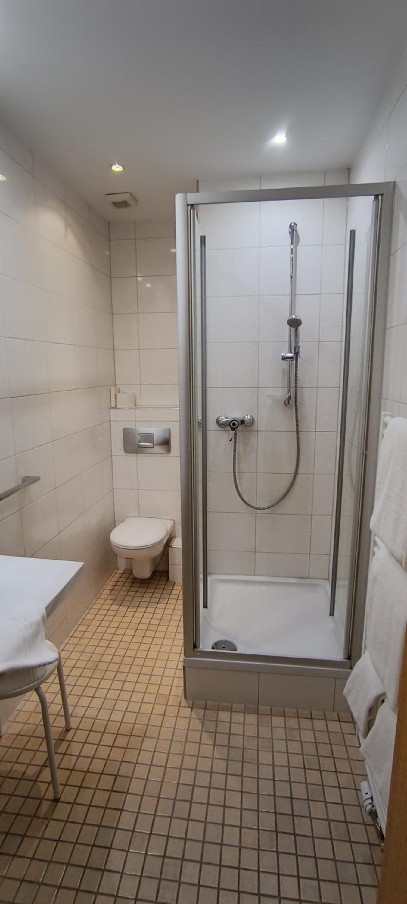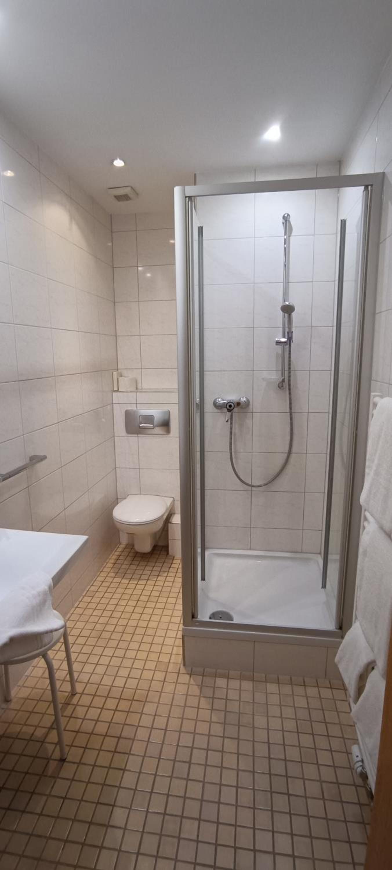 Dusche war am Morgen kalt.