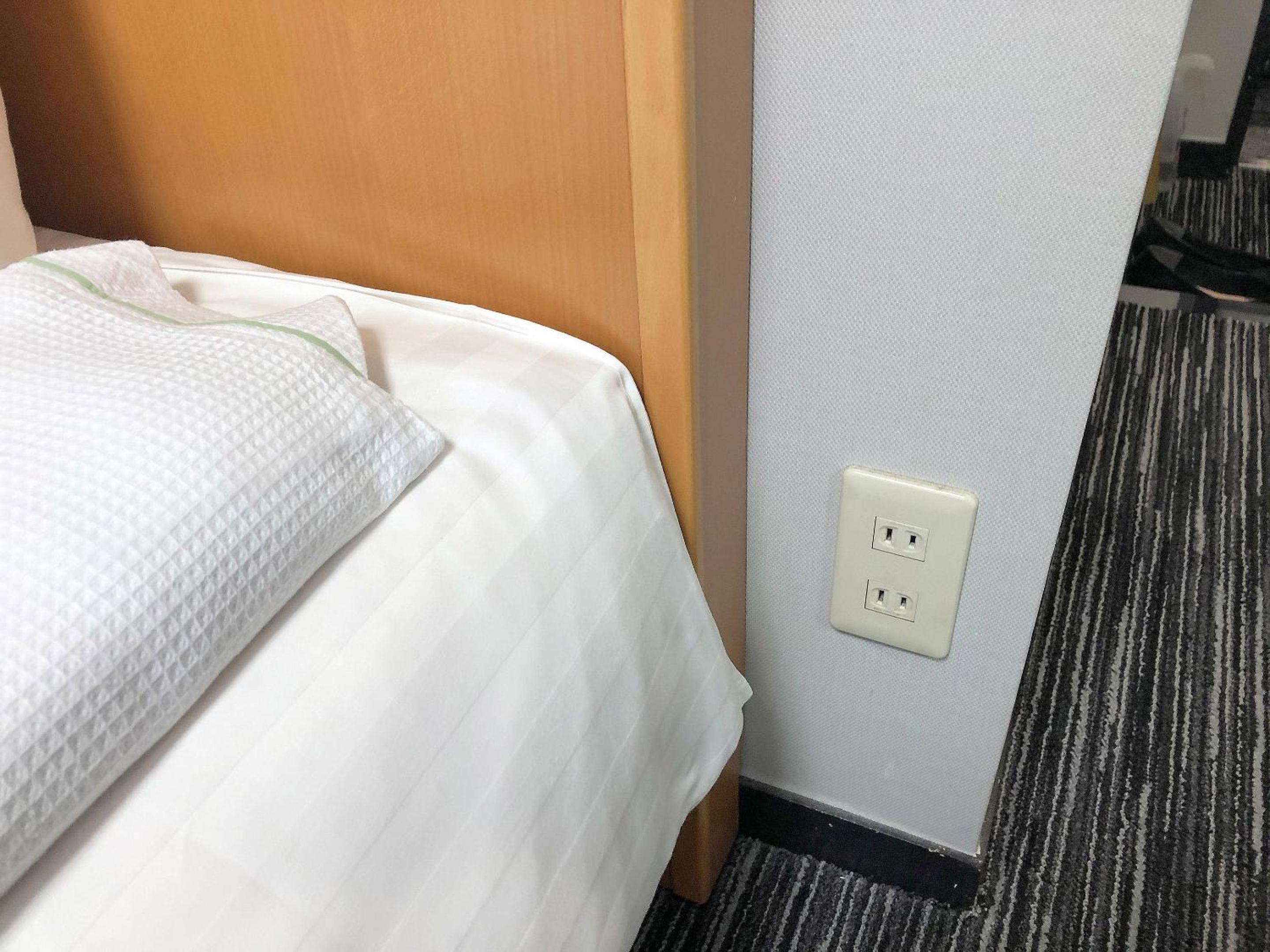 コンセントがベッドの横にある