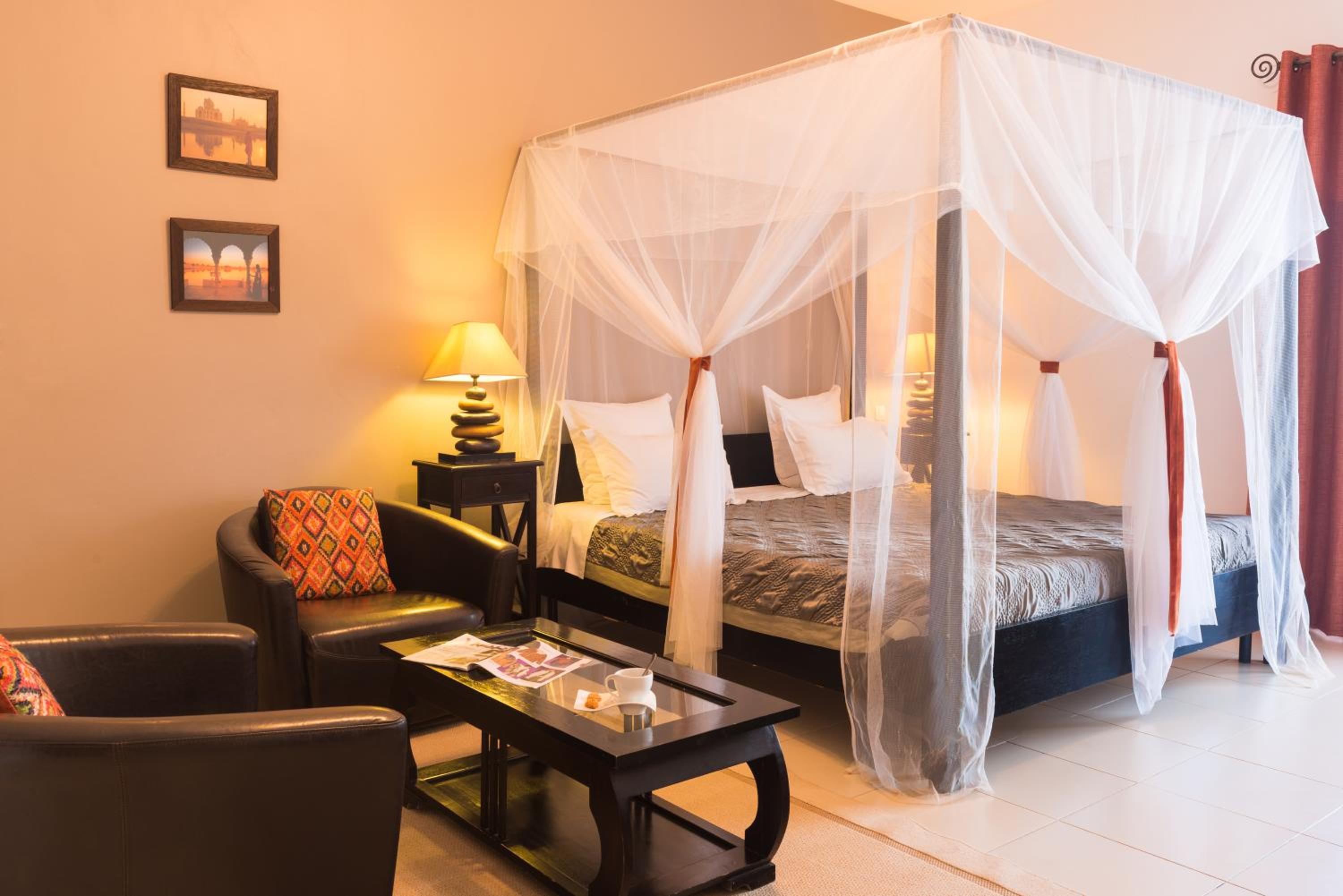 La habitación muy amplia y comfortable. La cama muy cómoda. Volveré si vuelvo a Dakar! ♥️