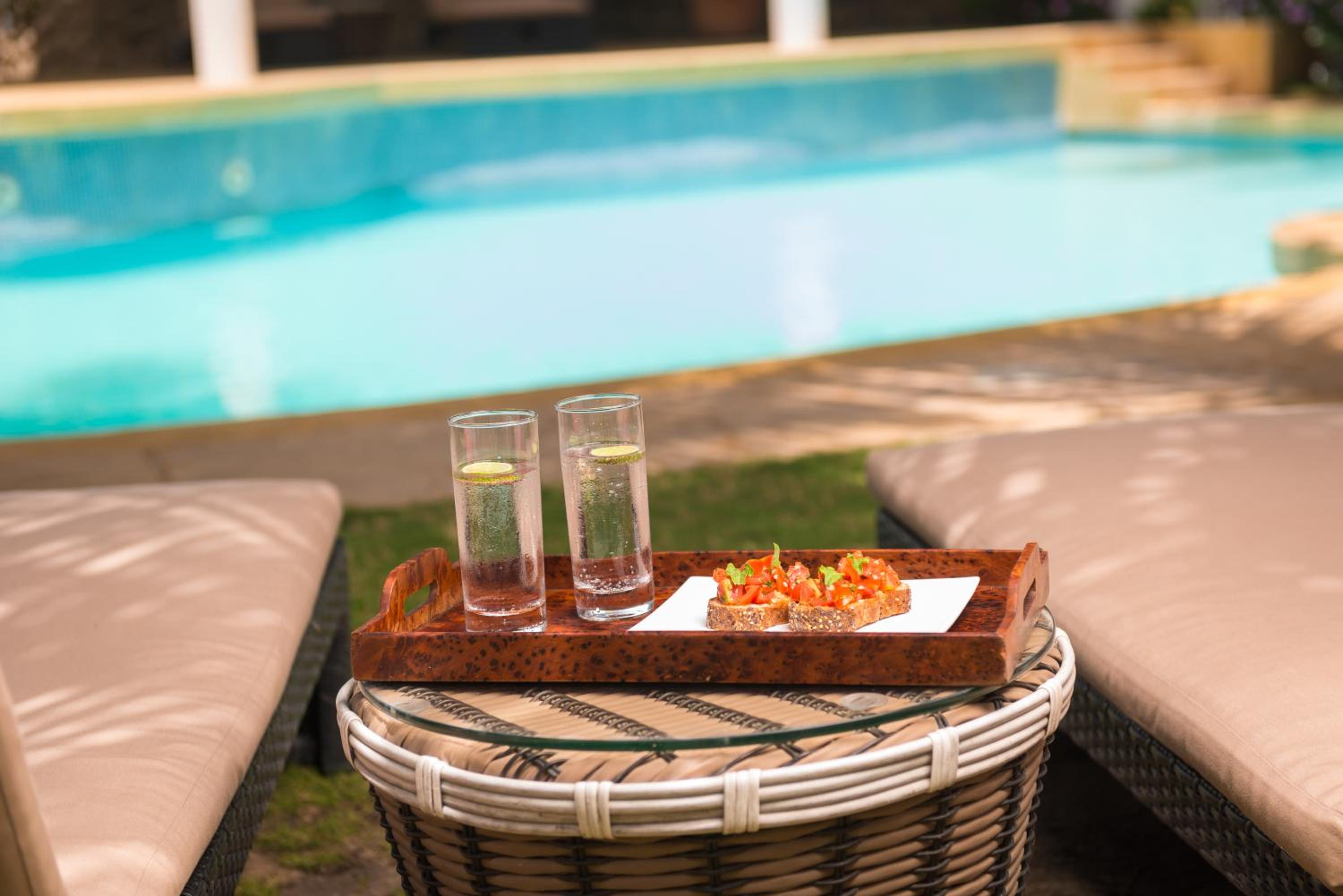 Relax and rejuvenate by the inviting outdoor swimming pool, surrounded by comfortable sun loungers. Take a dip in the pool or soak up the sun while enjoying the serene ambiance of the hotel.