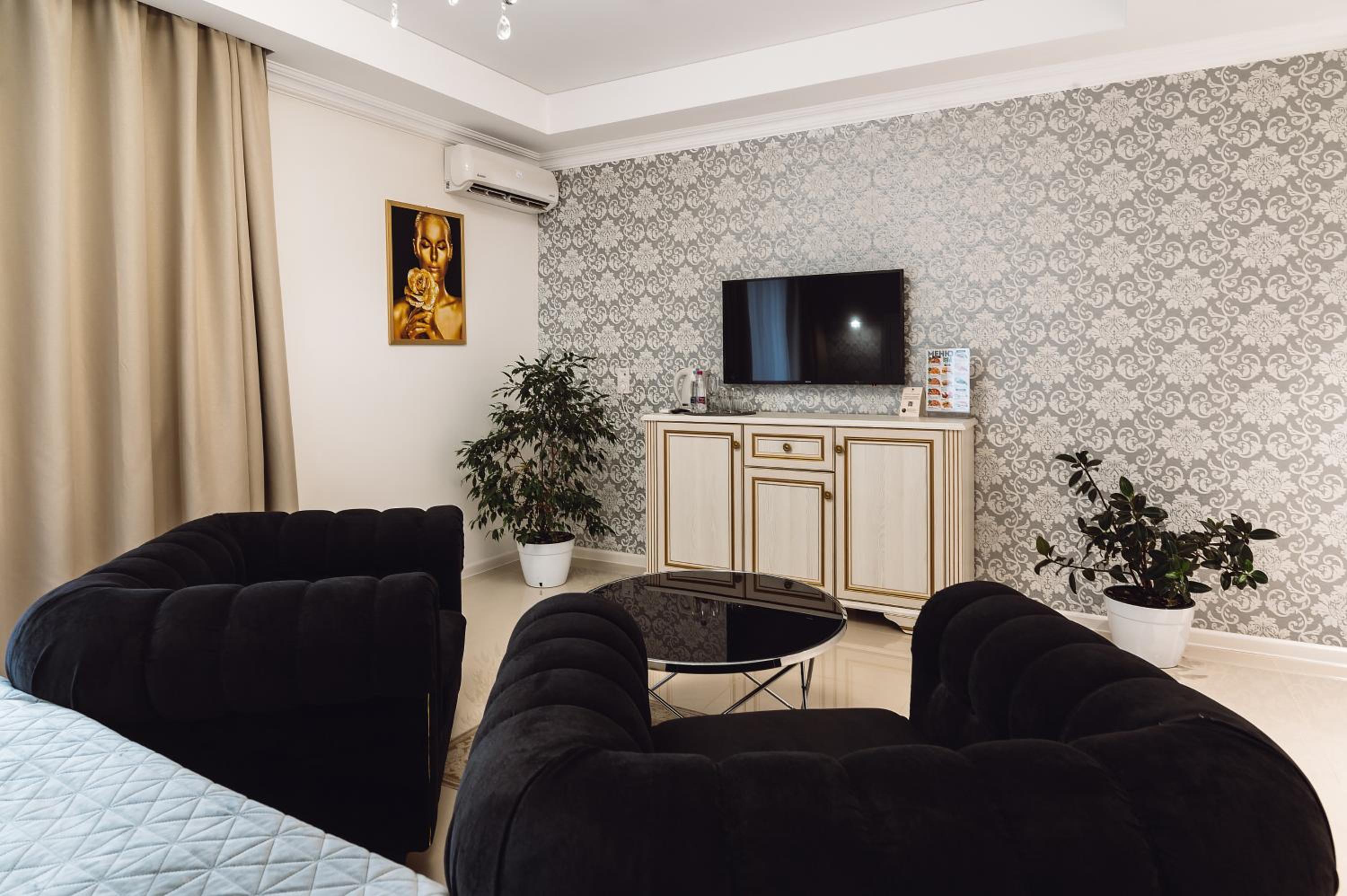 В номере красиво, комфортно. Наконец то посмотрела фильм на большом экране (дома некогда). Номер как на фото. Пришла вечером, некогда было и была уставшая, не сориентировалась как повысить температуру в комнате. Легла спать в свитере и была удивлена одеялу). Оно лёгкое пушистое, но очень теплое, похрустыавет как снег. Среди ночи стало жарко).