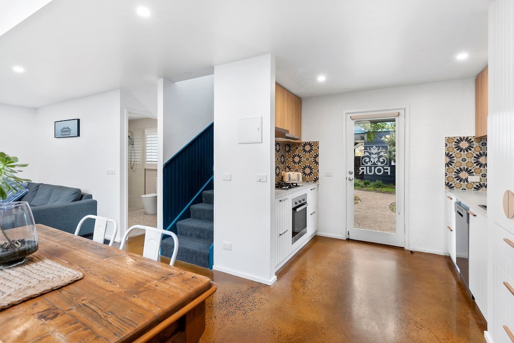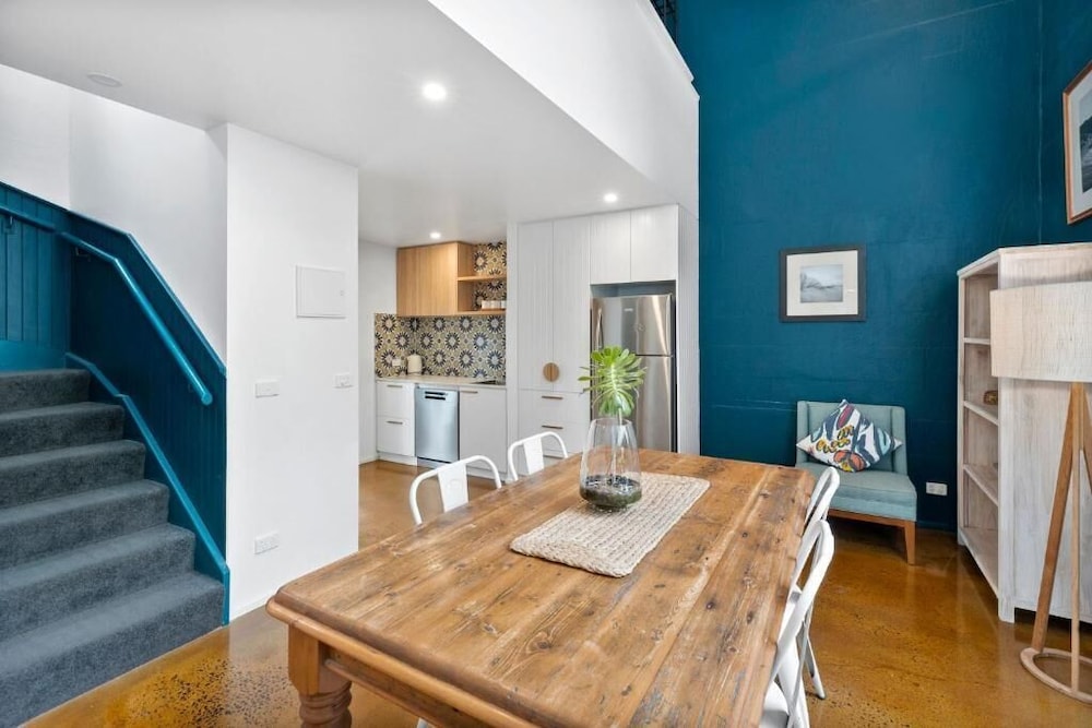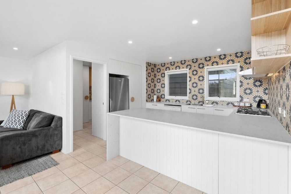 I loved the location, easy walk to the beach and Main Street. It was very clean. Apartment’s decor was excellent, looked exactly like the photos which is rare. Beautiful finishes including concrete floor and rain head shower. Loved the bathroom and layout. Added plus having a bbq and aircon and two ceiling fans plus a log fire place for winter.