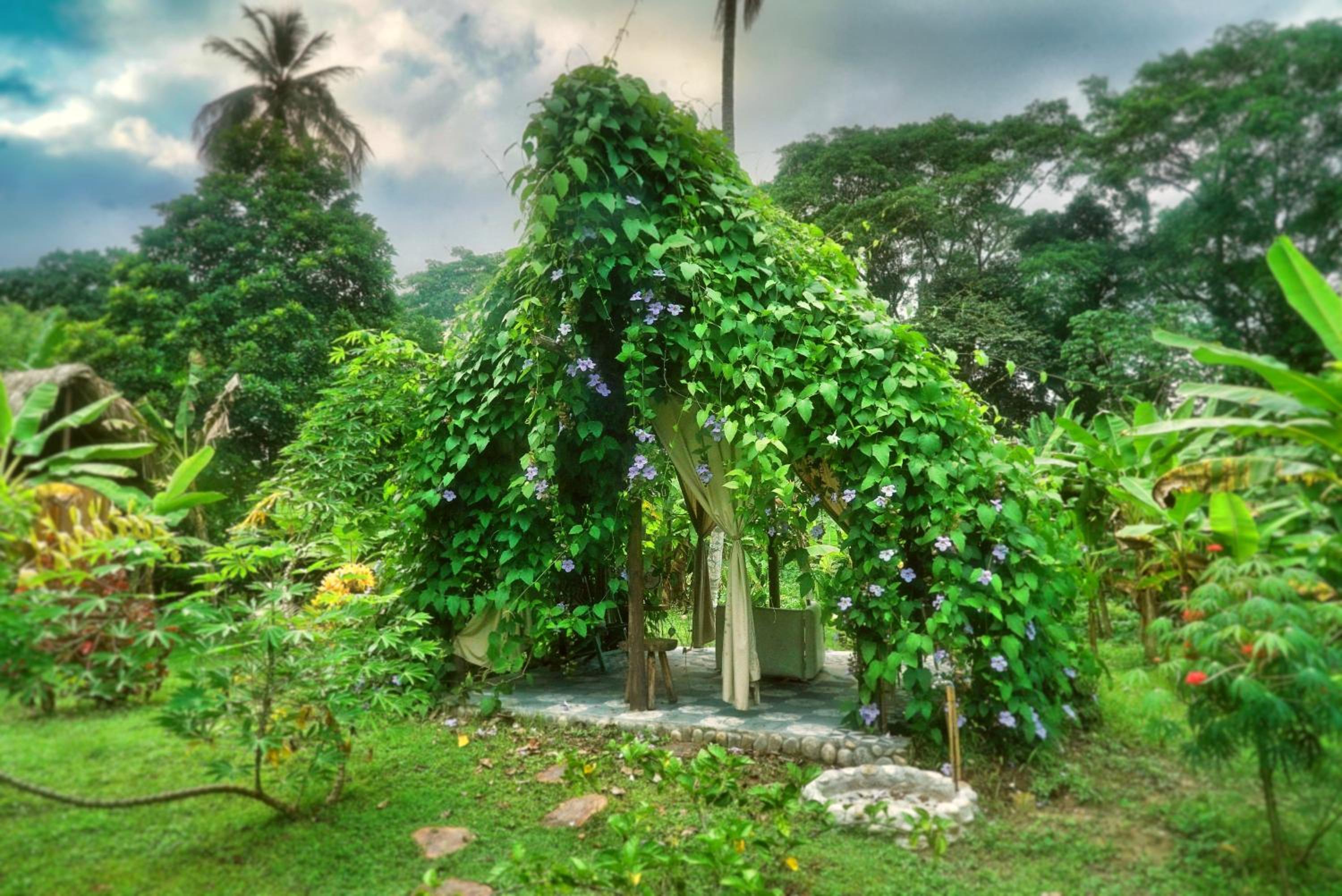 Es un jardín botánico con el río al lado. Muy cuidado, muy cariñosos. Excelente