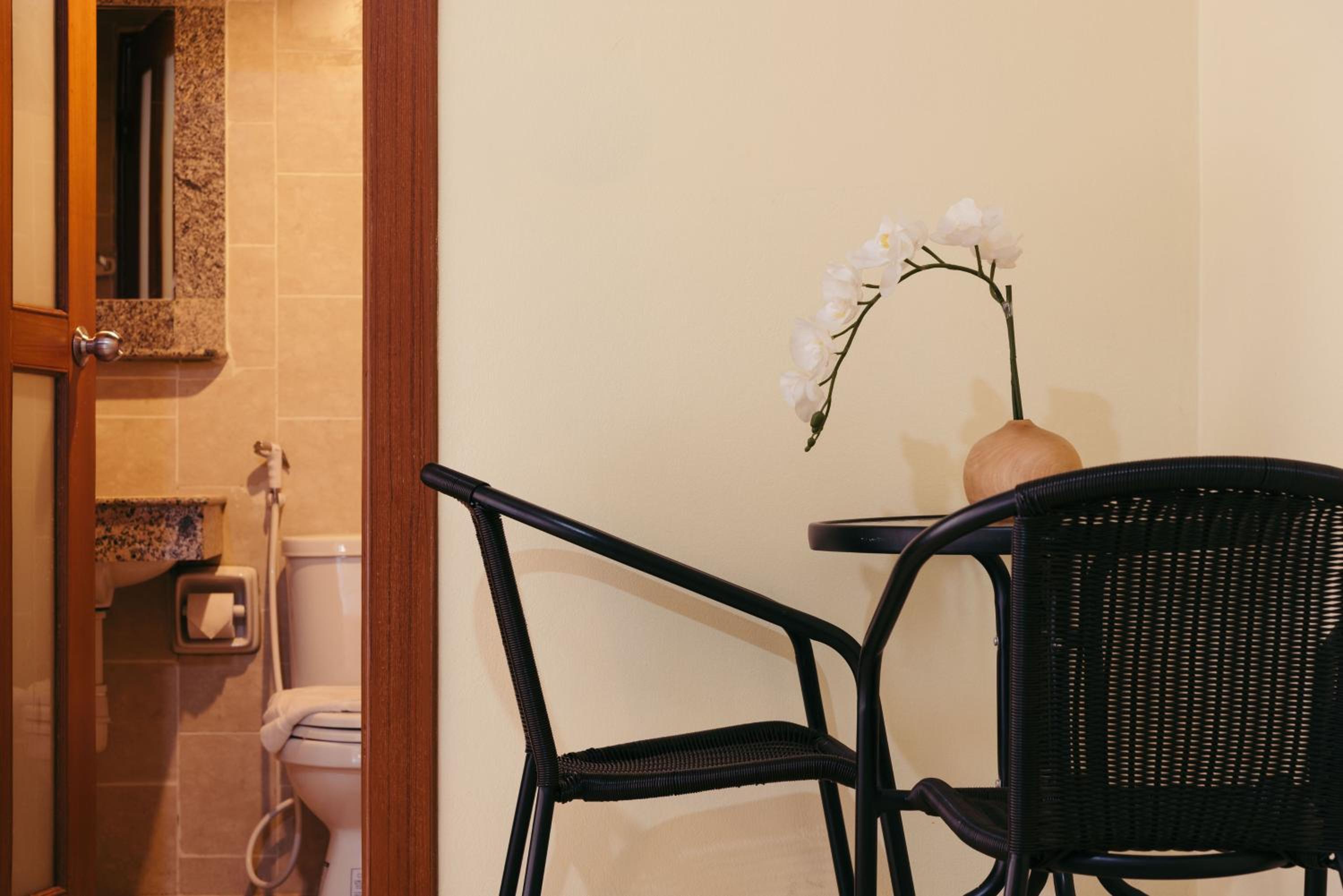 We loved our room. It's very pretty, modern and clean. The AC is good and bathroom is simple but nice. Small fridge and daily water and room service. We very much loved our stay here.