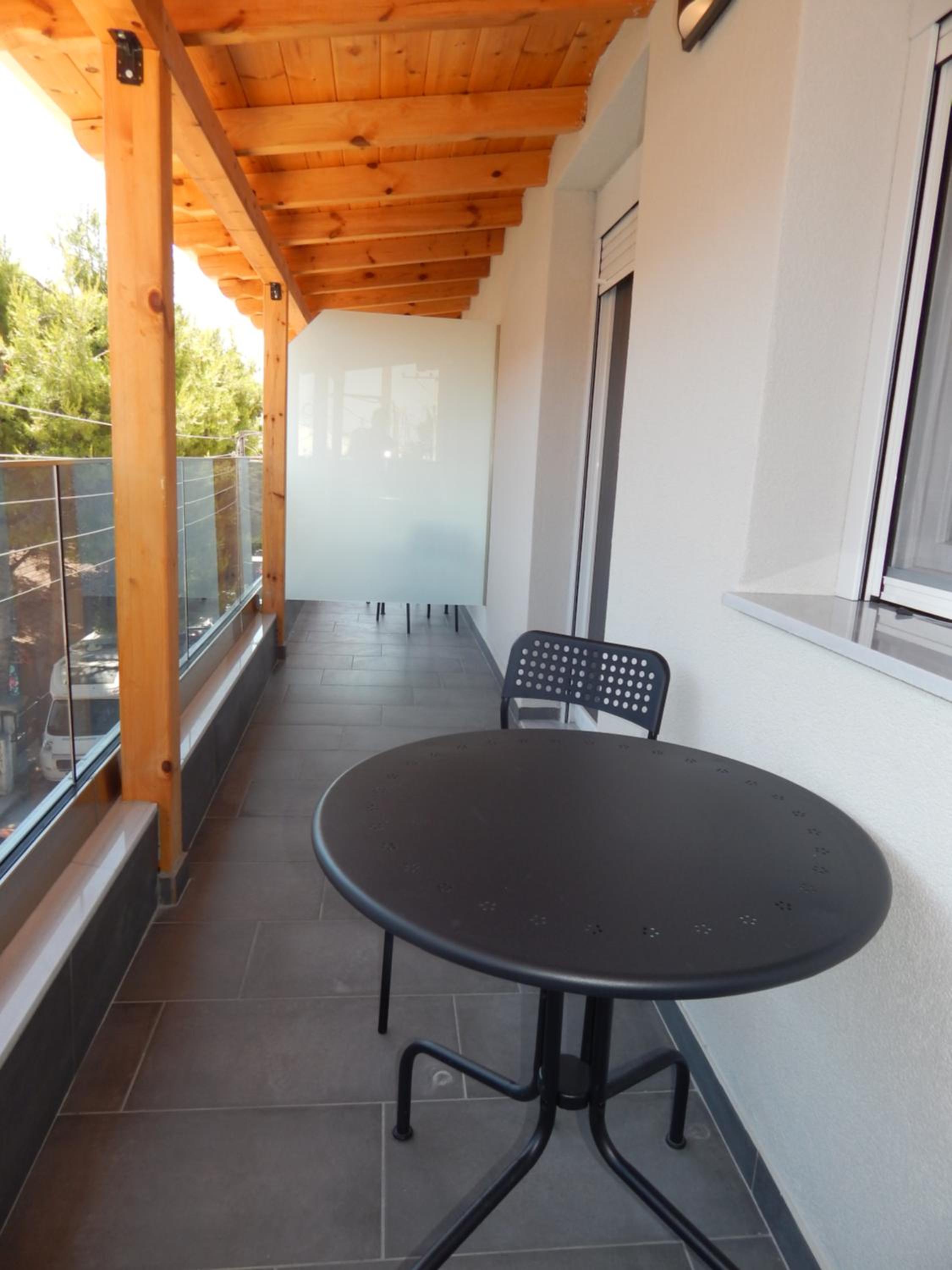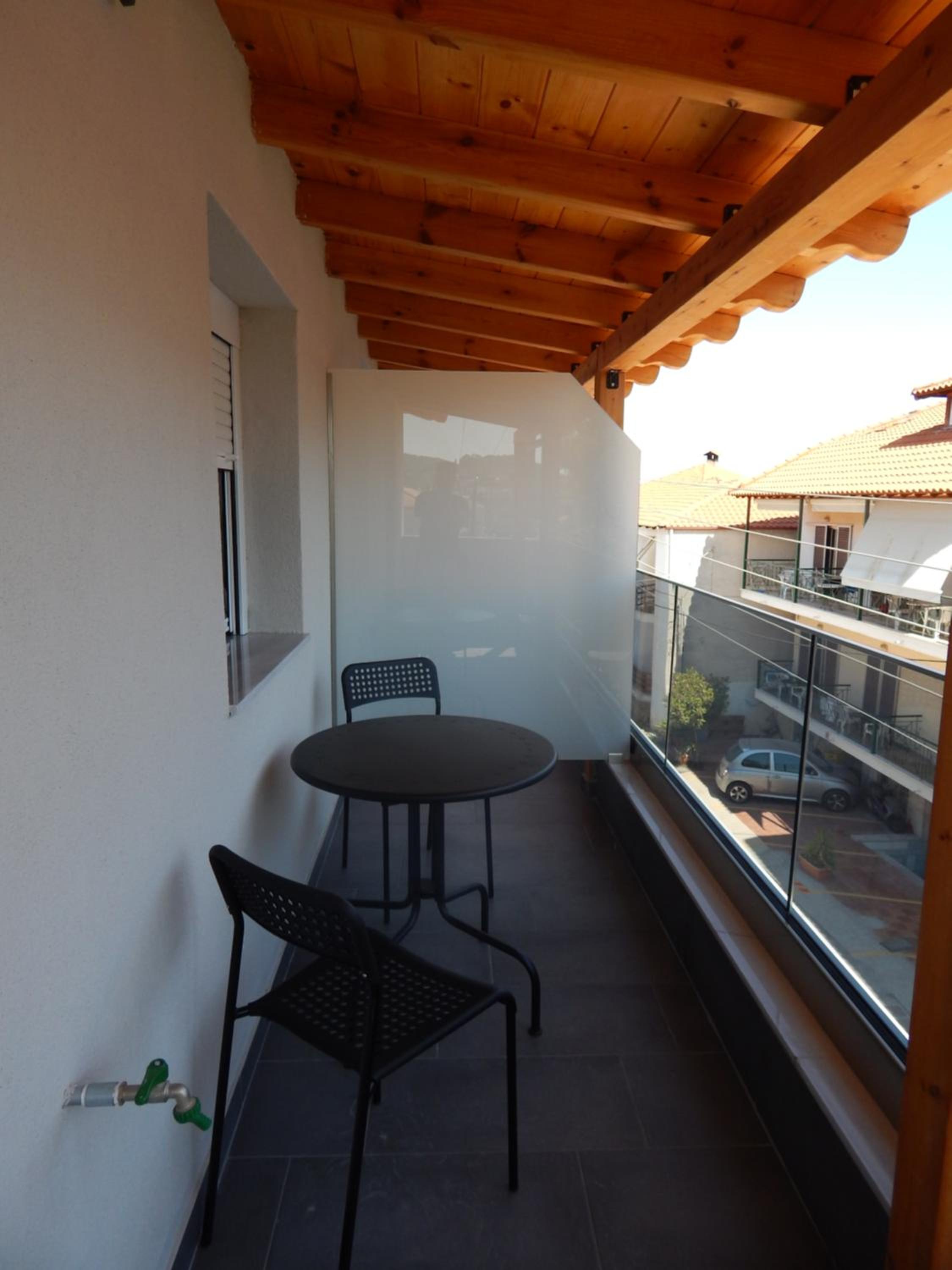 - mały balkon przy samej ulicy ze szkołą po drugiej stronie