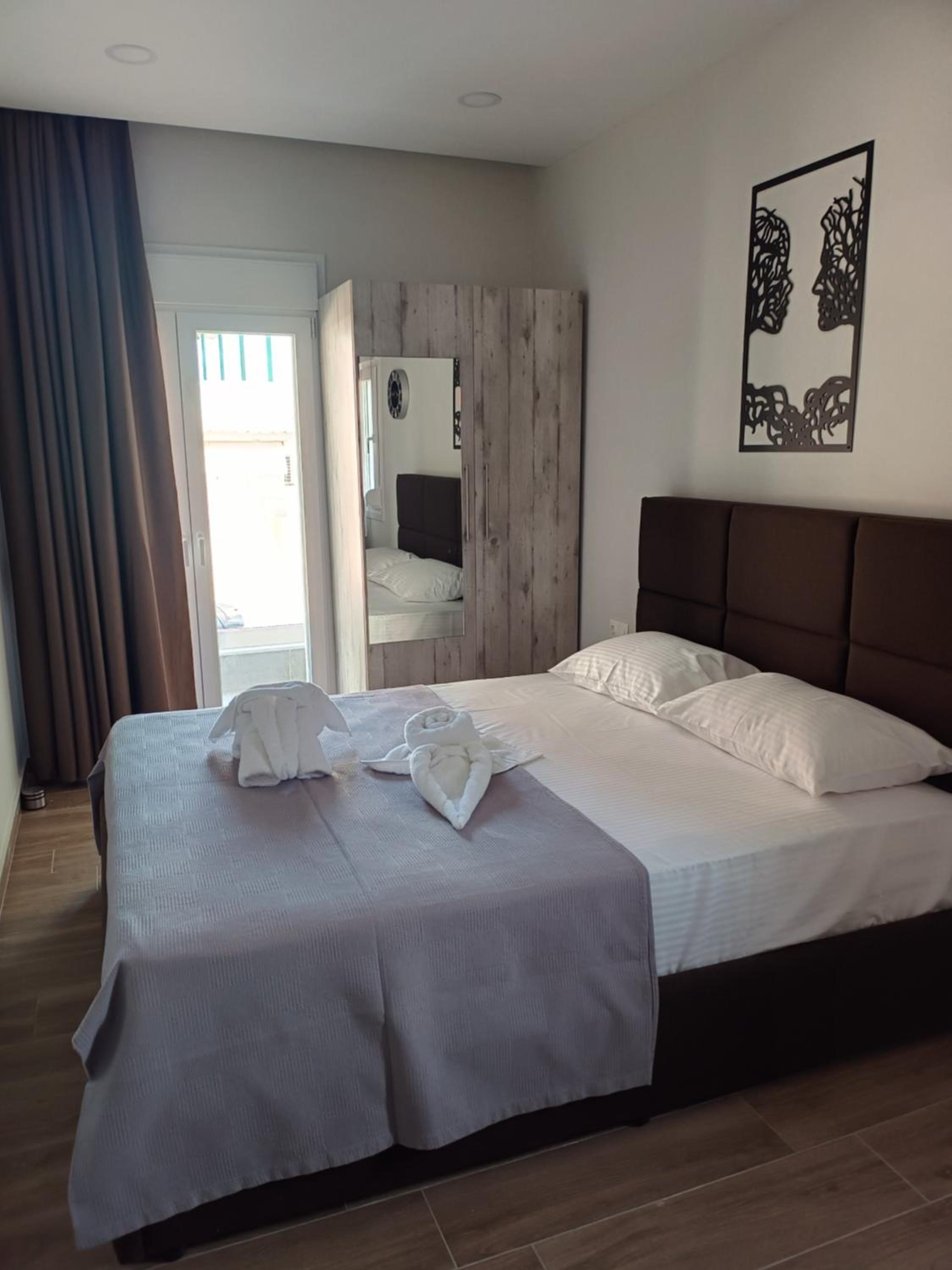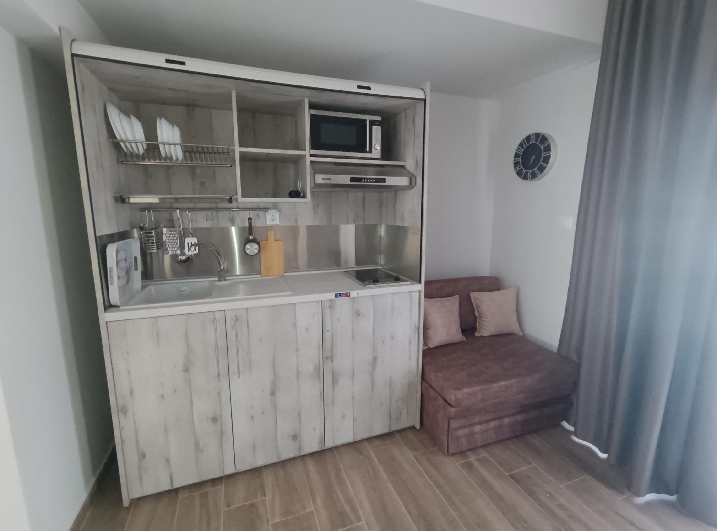 500m de plaja,restaurante și market aproape.Curatenie,camere complet utilate.Un sejur excelent.