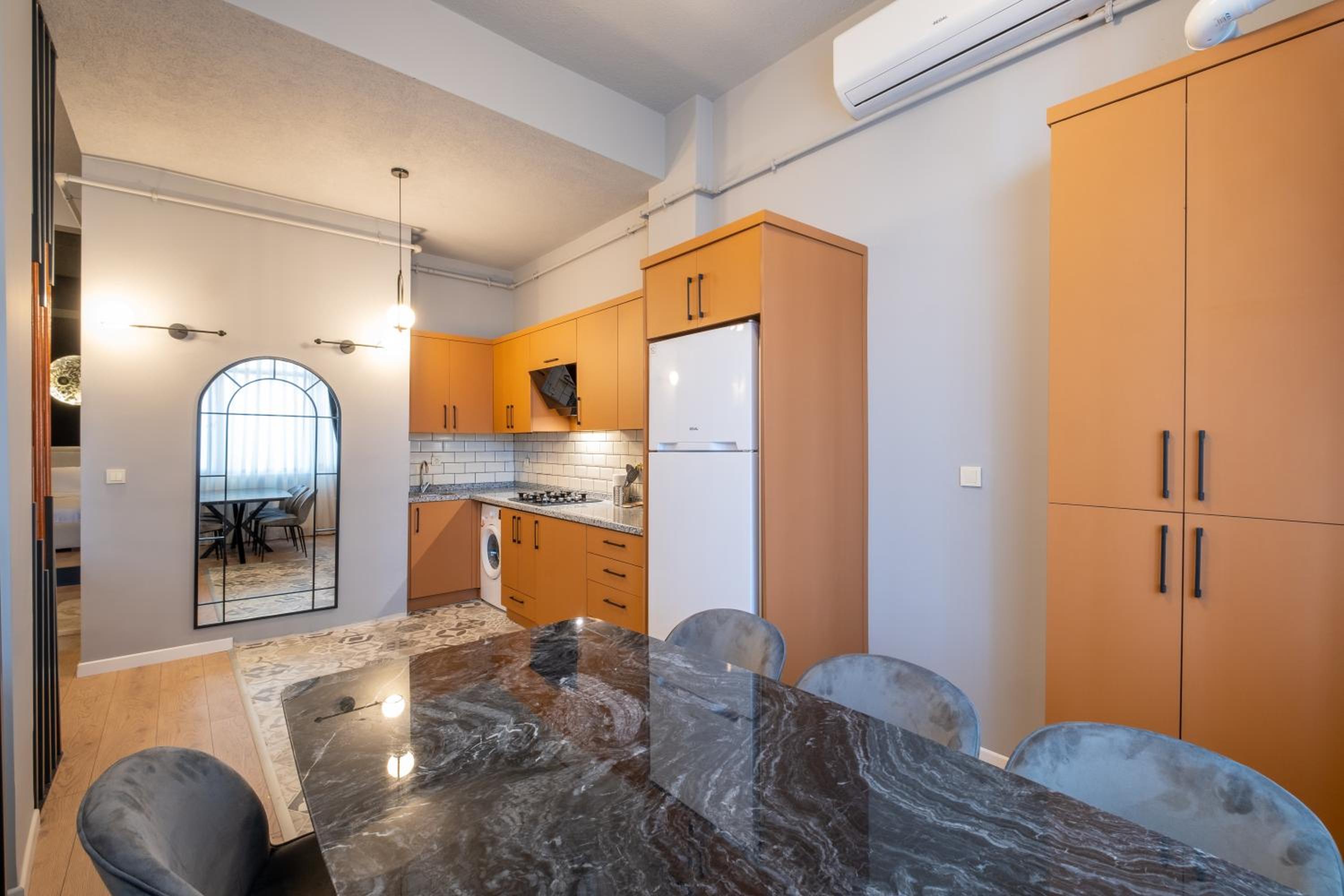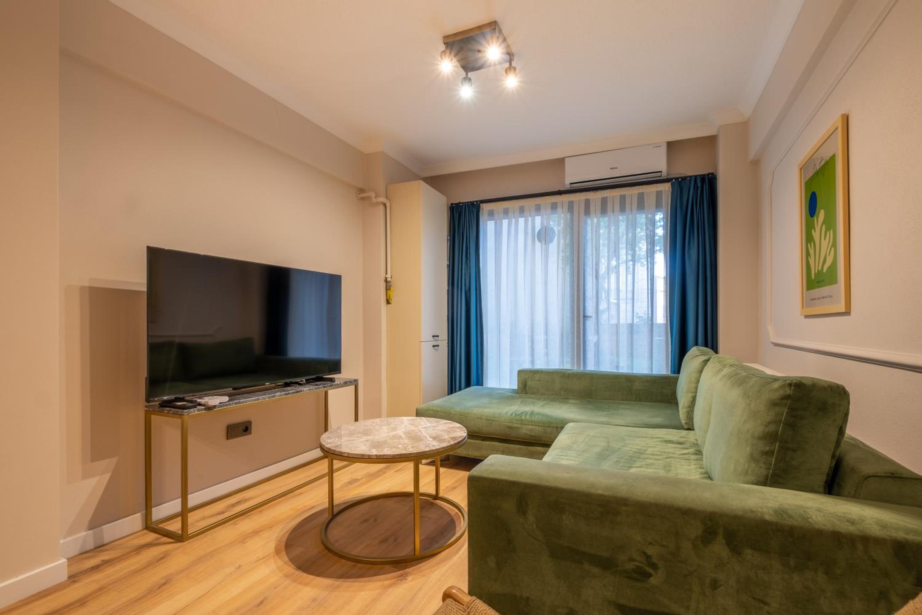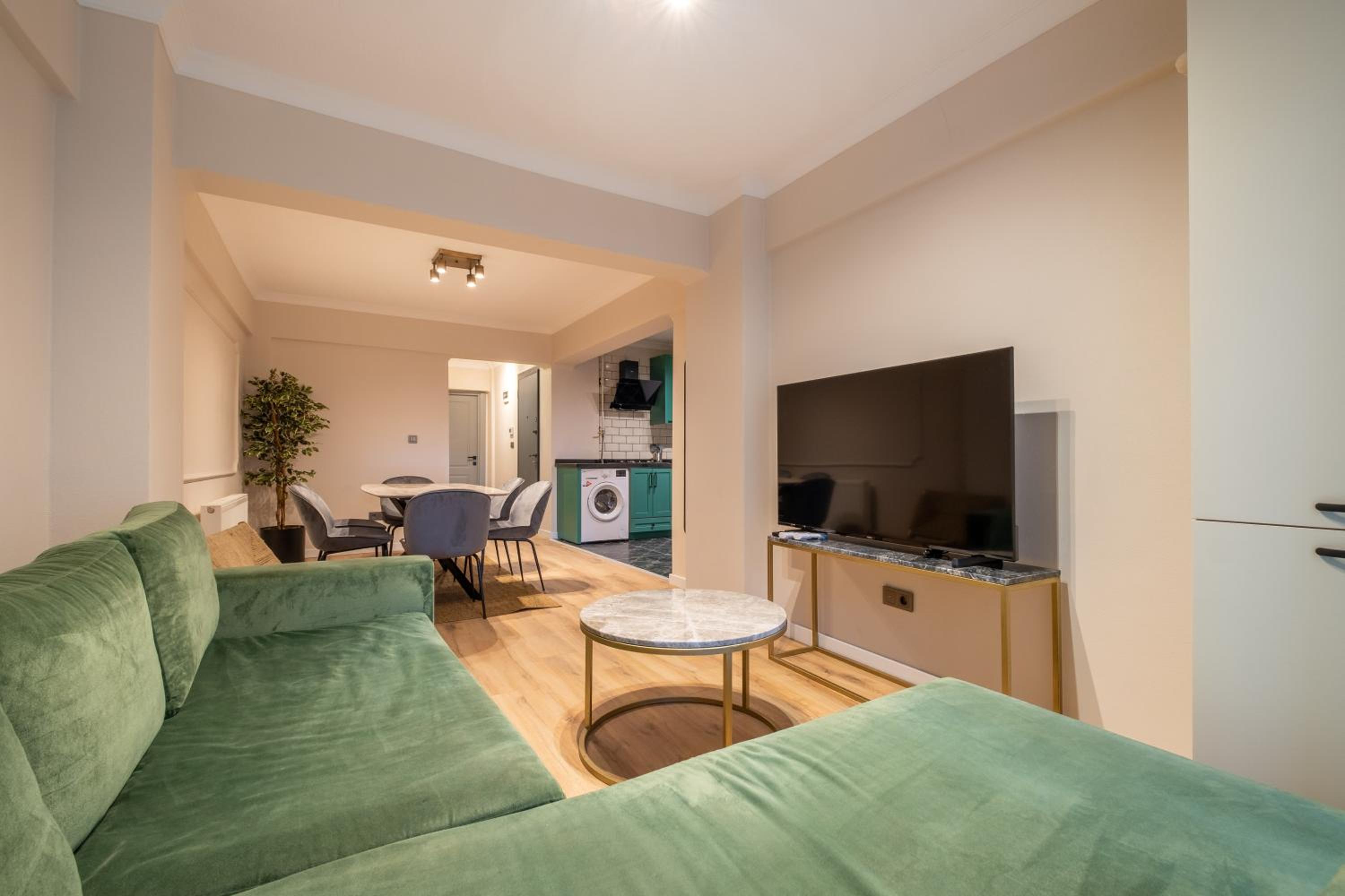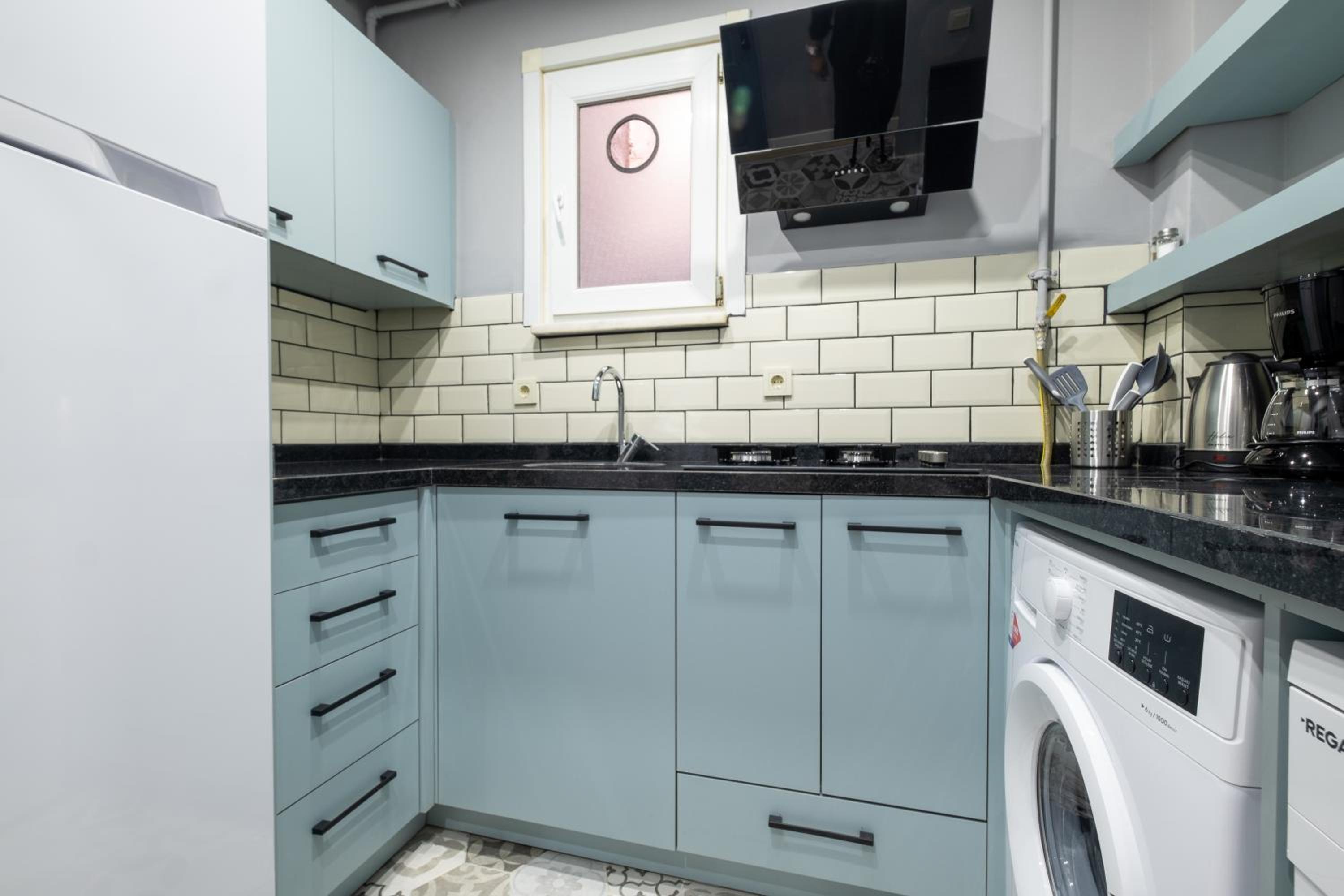 The air-conditioned units at Mayer Beyoglu Apartments feature modern amenities such as a flat-screen TV, fully equipped kitchen, and a private bathroom with luxurious touches like slippers and a hairdryer.