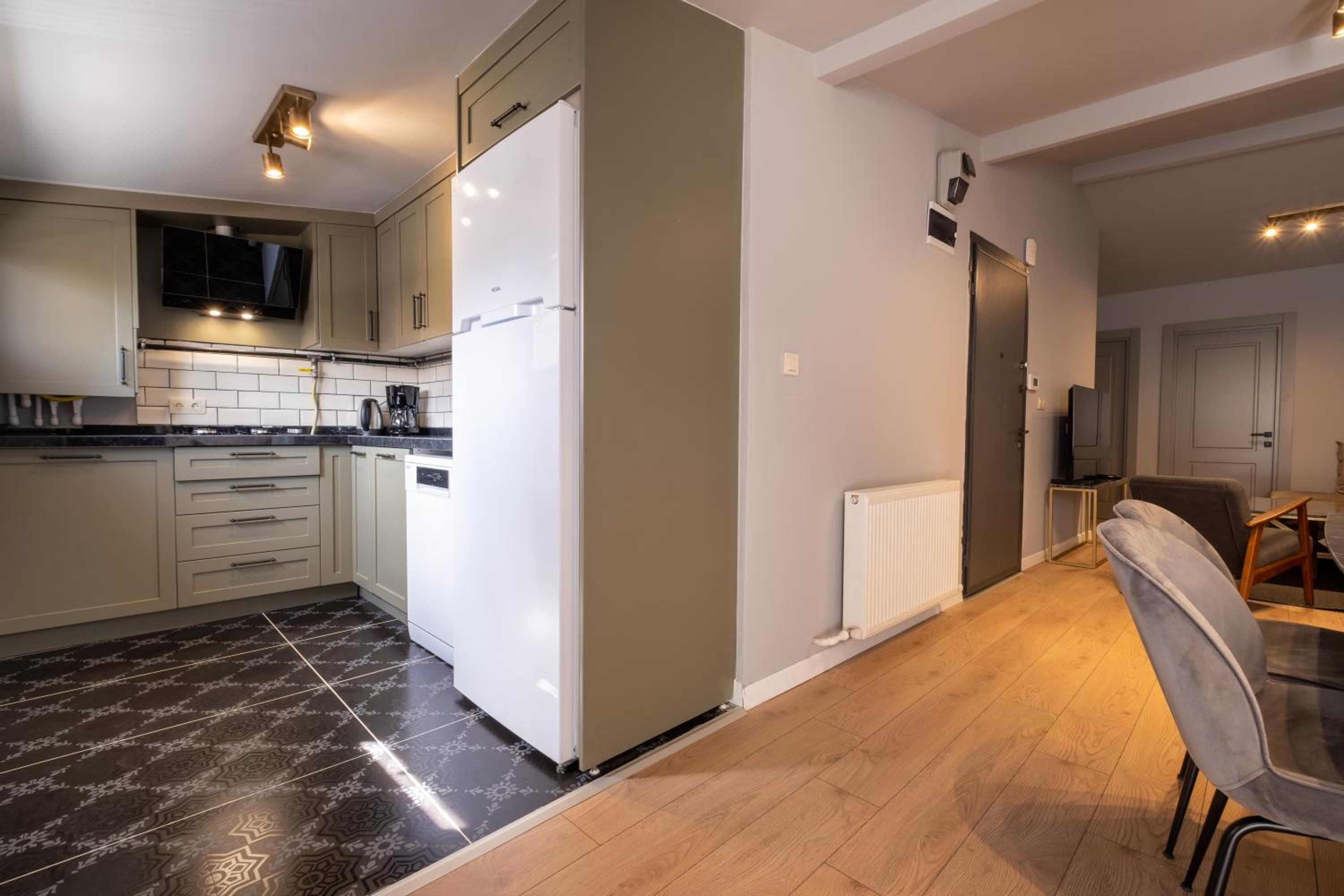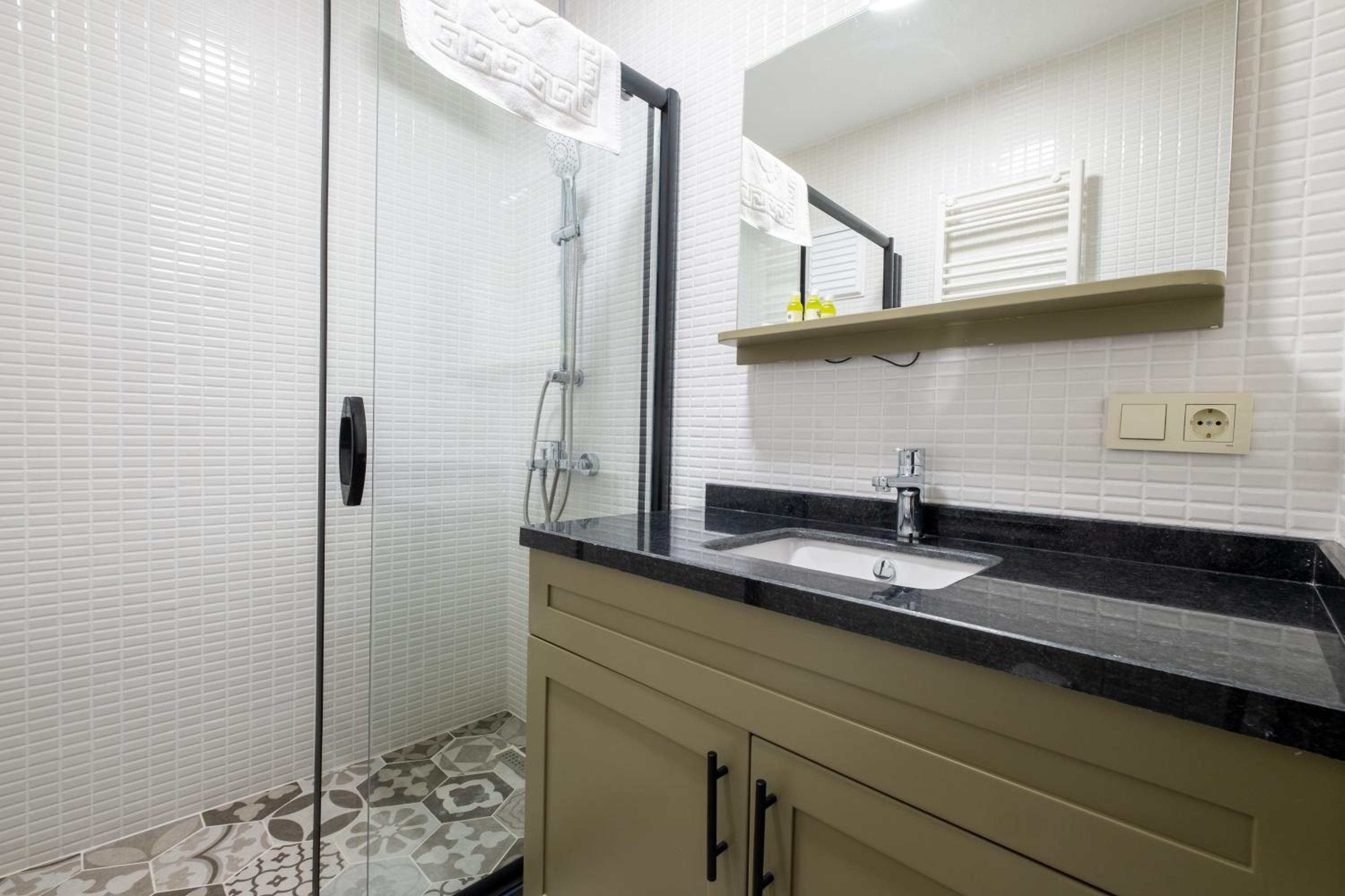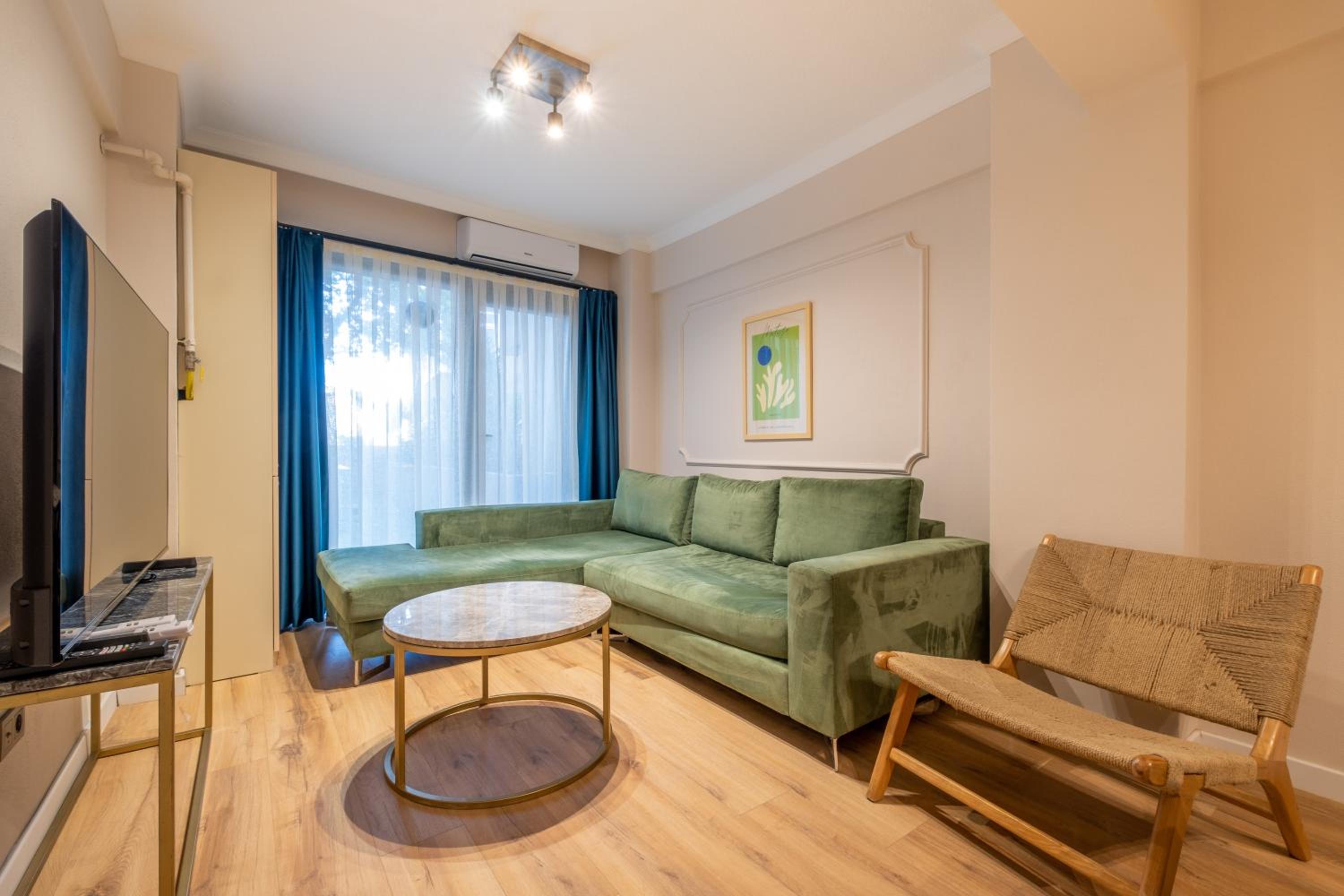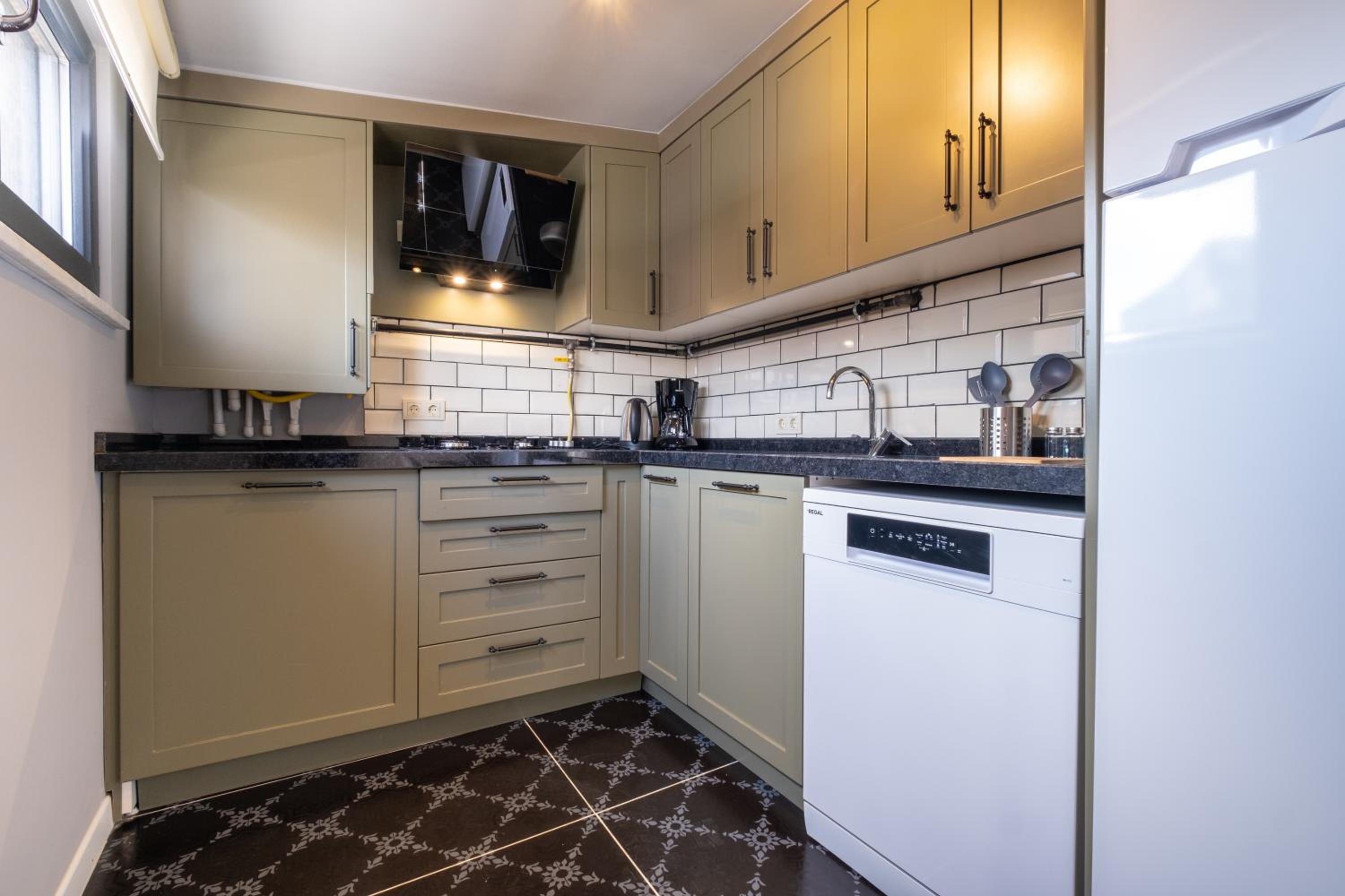 The air-conditioned units at Mayer Beyoglu Apartments feature modern amenities such as a flat-screen TV, fully equipped kitchen, and a private bathroom with luxurious touches like slippers and a hairdryer.