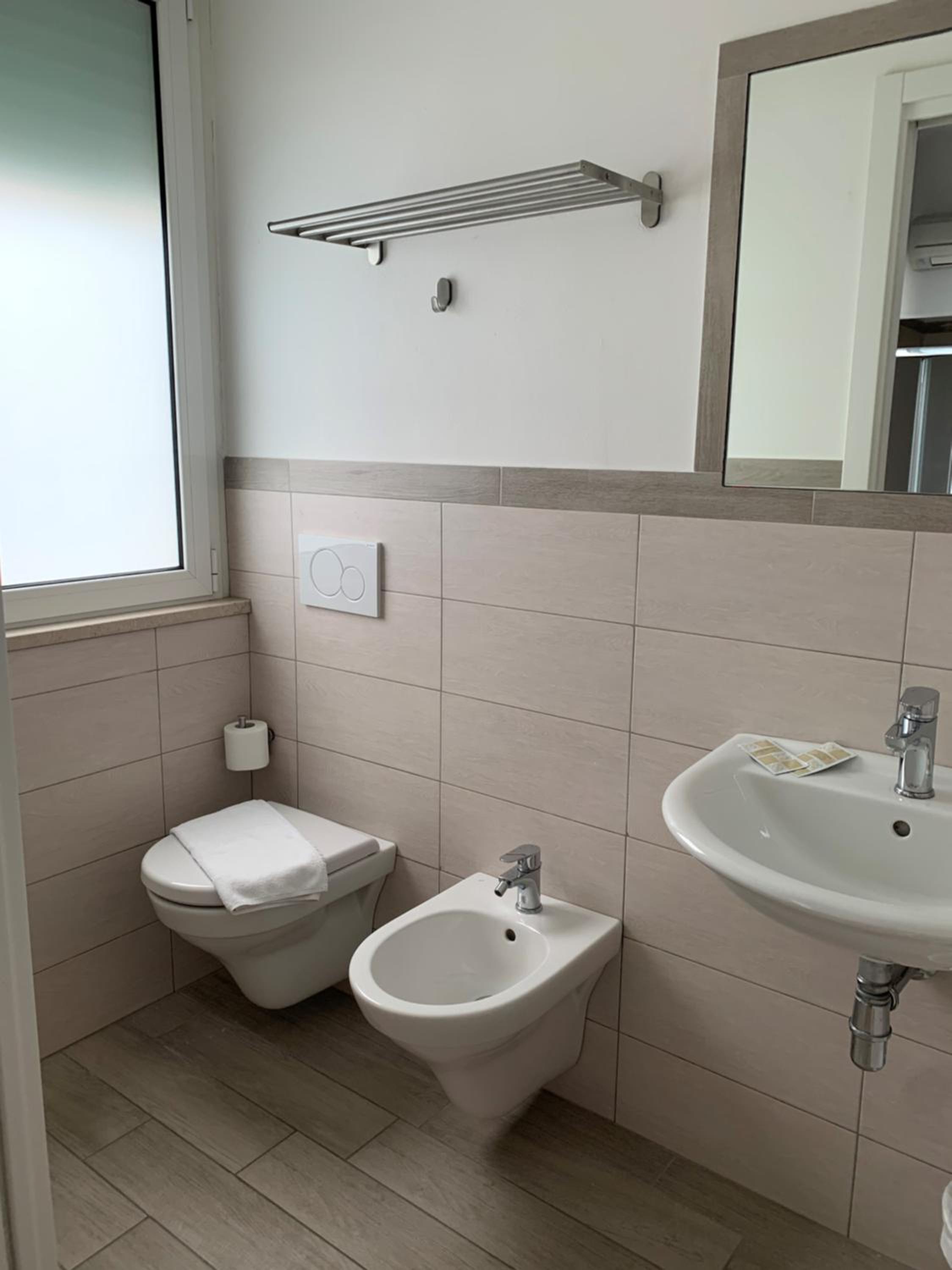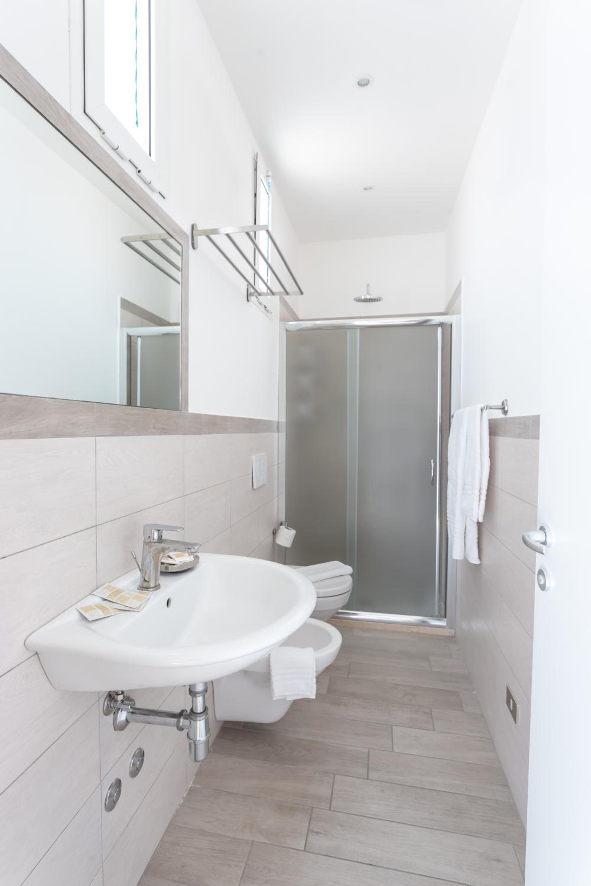 Siamo stati nella camera confort con doccia separata dal bagno e tutto l’essenziale per il soggiorno.