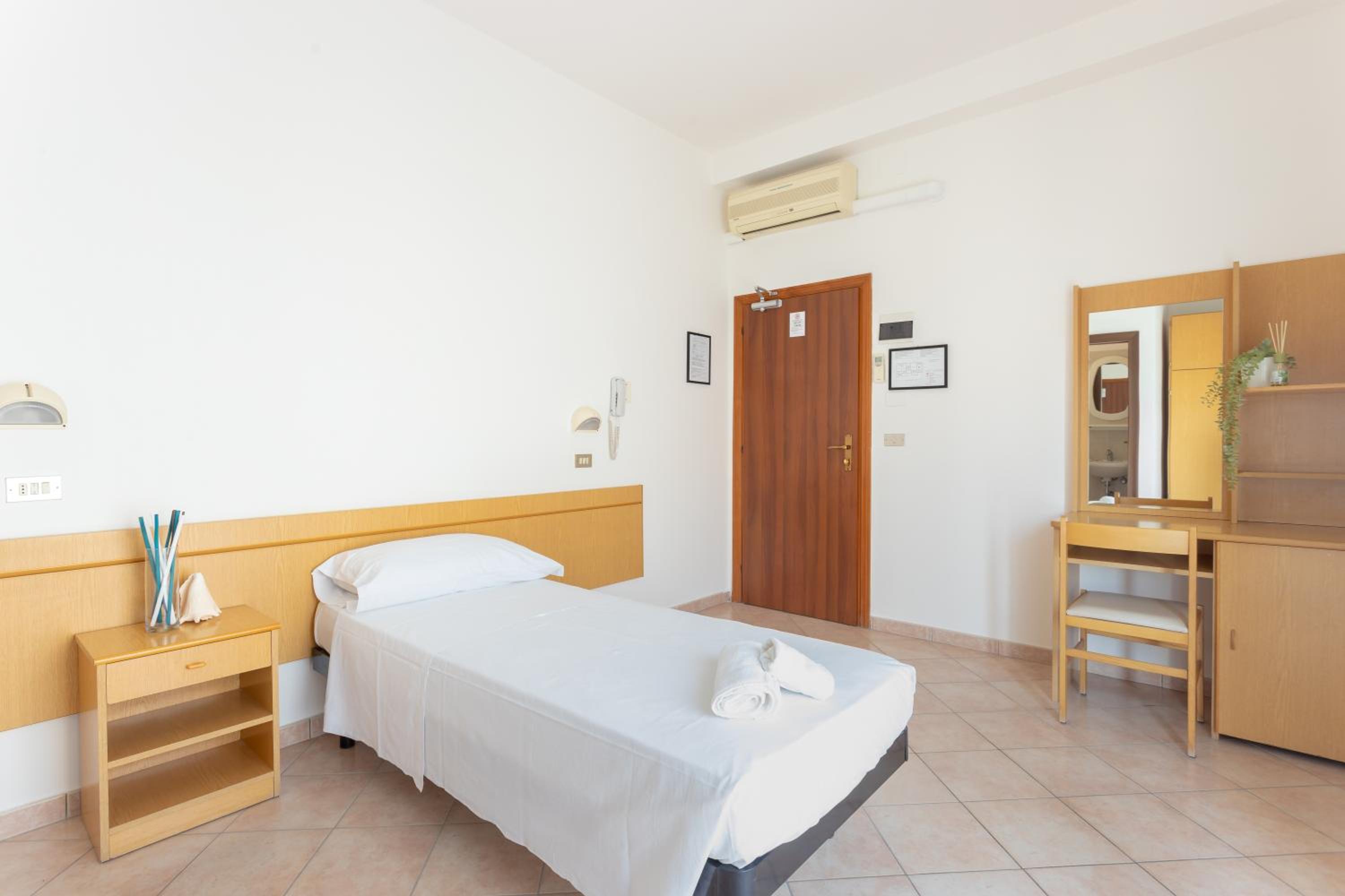 Potrebbe essere comodo un mini frigo in stanza ma la struttura offre la possibilità di tenere le cose in fresco nel frigo dell’albergo