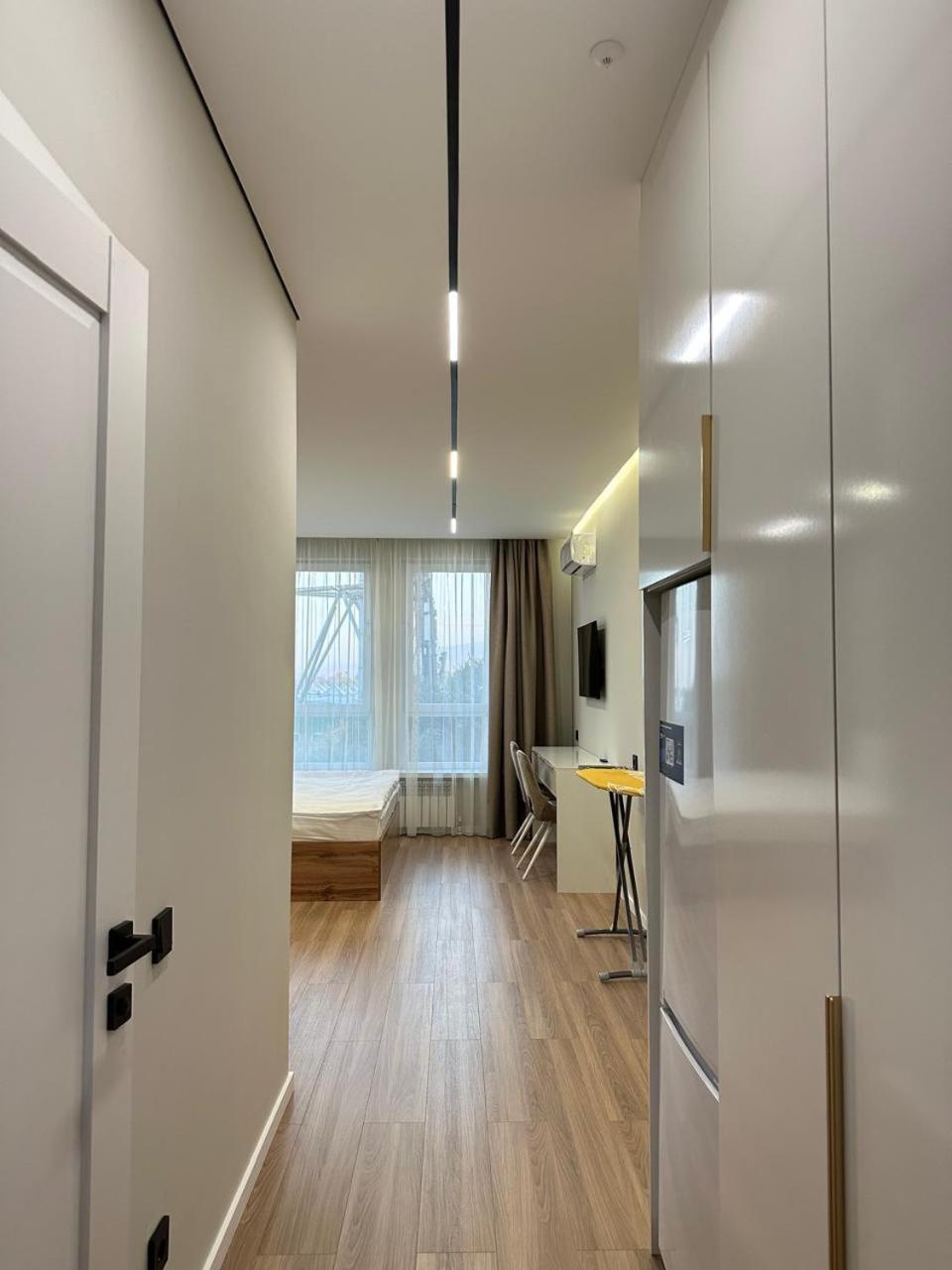 Хороший ремонт, смарт тв, удобное расположение (станция метро и остановка автобуса в одной минуте от дома), рядом много магазинов, электронные замки, не нужно с кем-то встречаться передавать ключи, просто заехал и всё)))