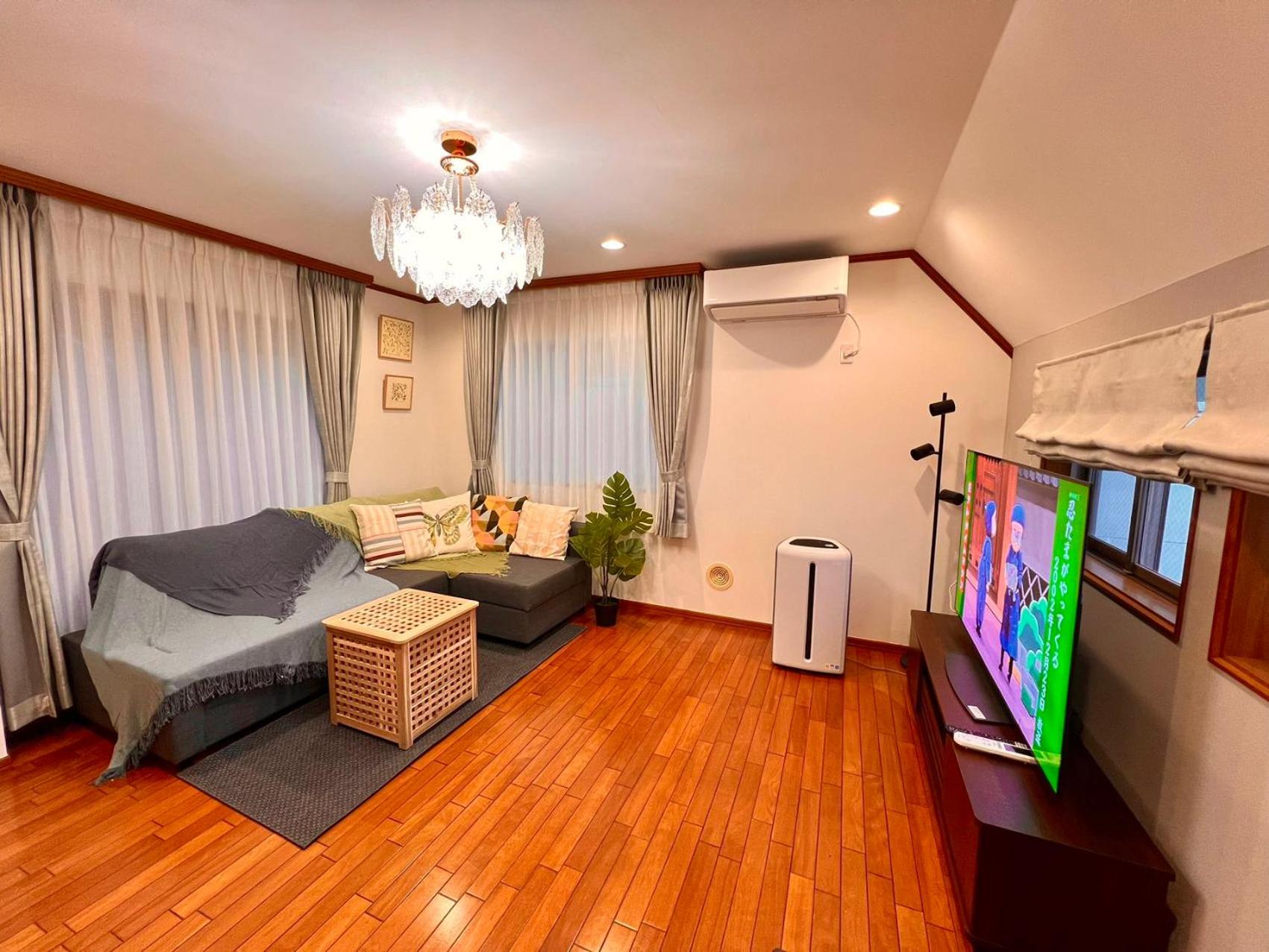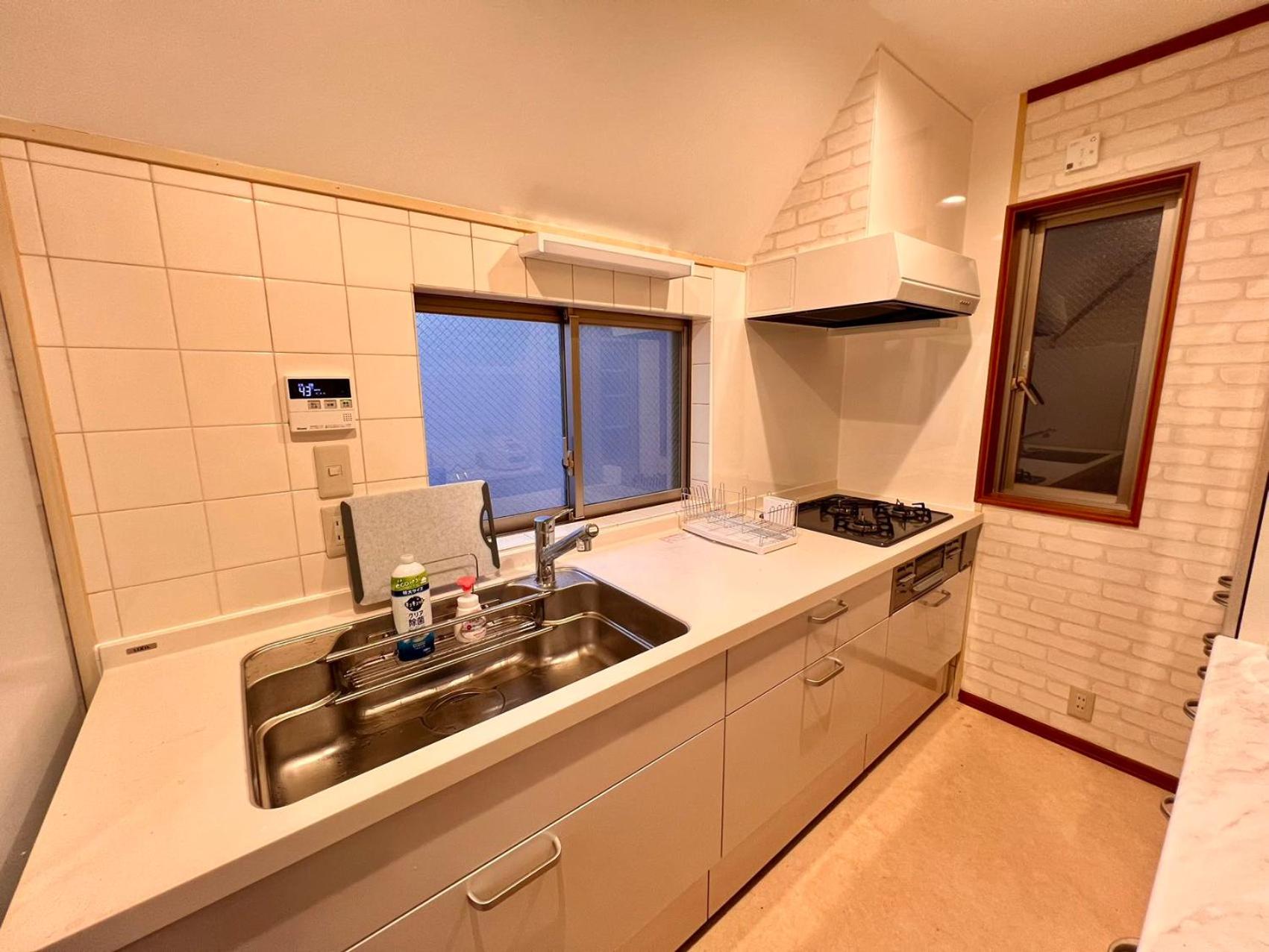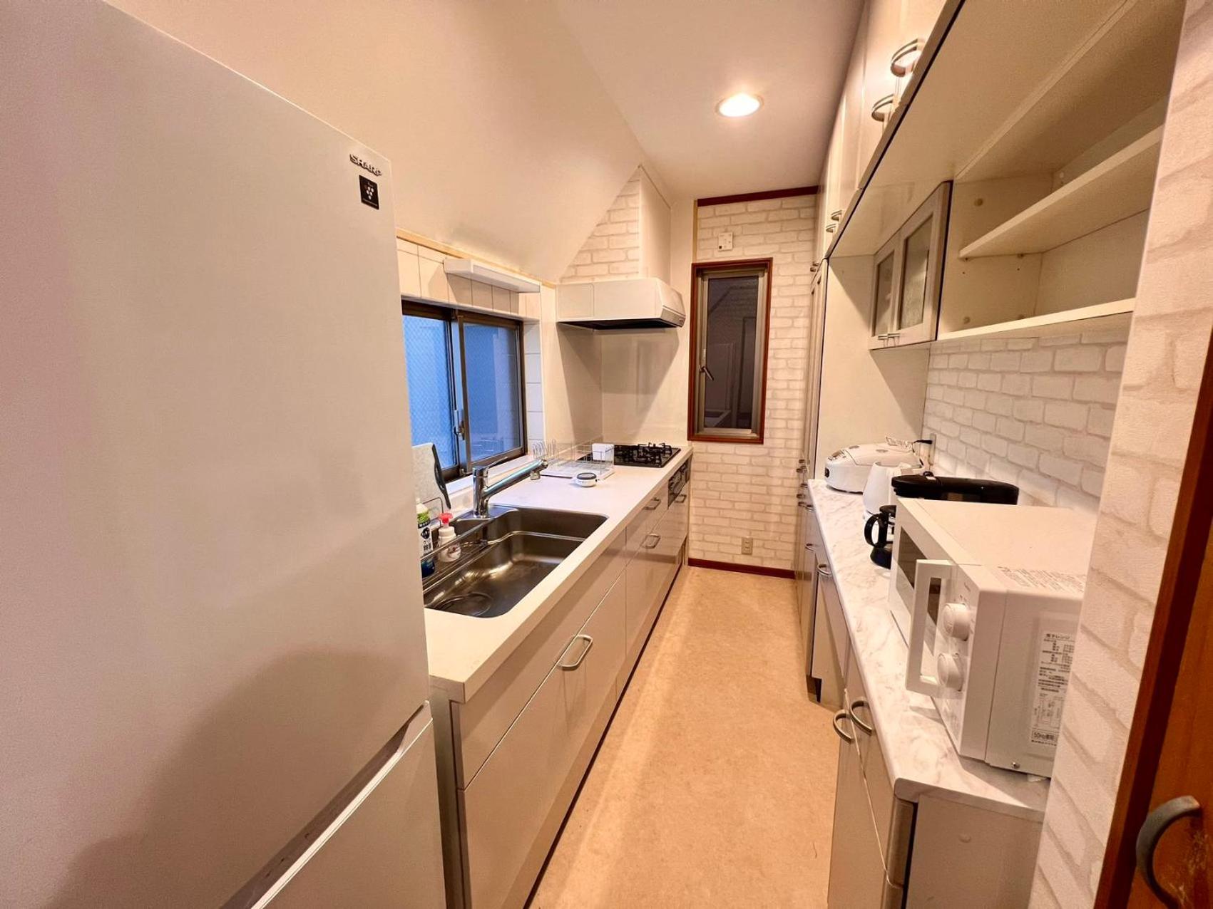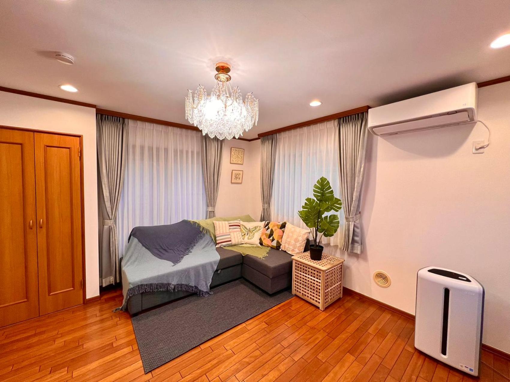 所有的東西都有,洗衣精,毛巾,洗髮乳,沐浴乳都有,冰箱還有礦泉水,曬衣架都有,冷氣很強,房間大,客廳也大,價格實惠,交通方便,離地鐵站走路5分鐘,有超市,大創,生活機能很好。